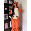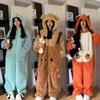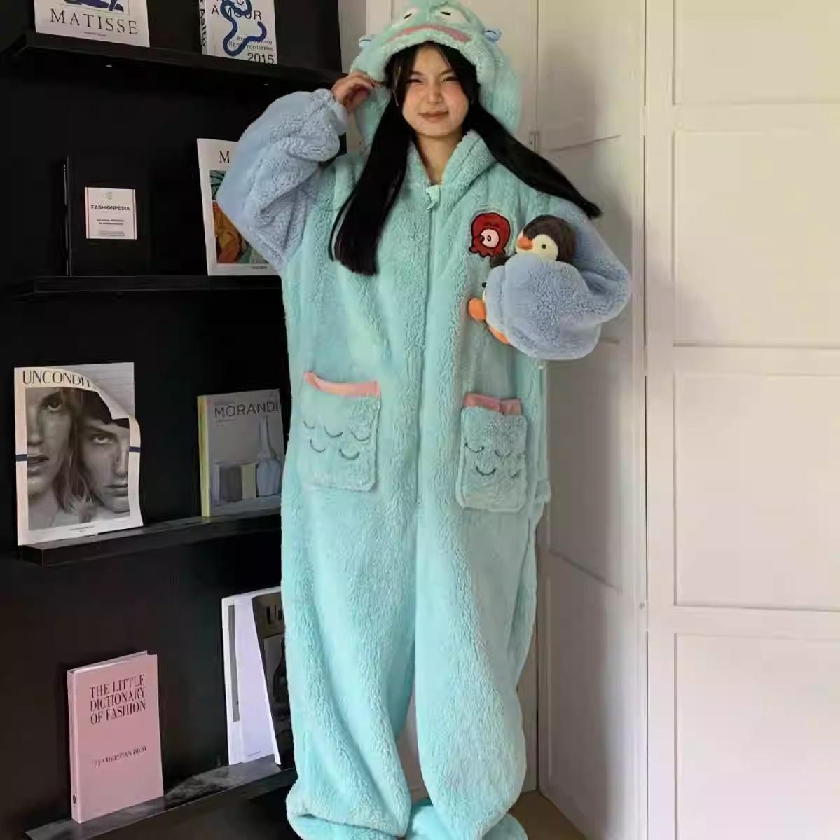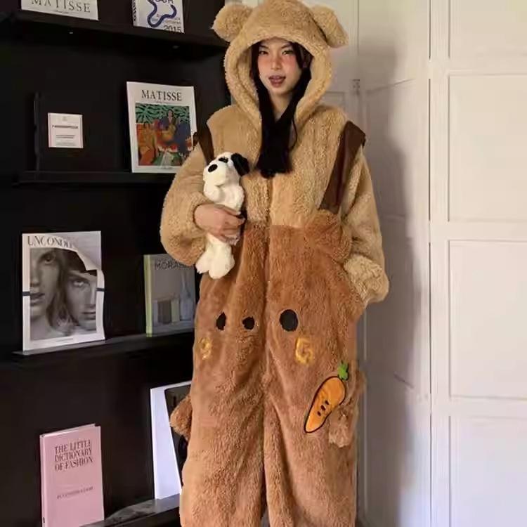 Venta al por mayor física Pijama Onesie de vellón coral de dibujos animados lindo para mujer Estilo otoño e invierno En stock Recién llegado Bata de baño gruesa de felpa para el hogar
