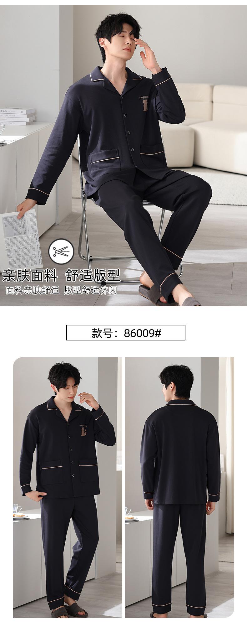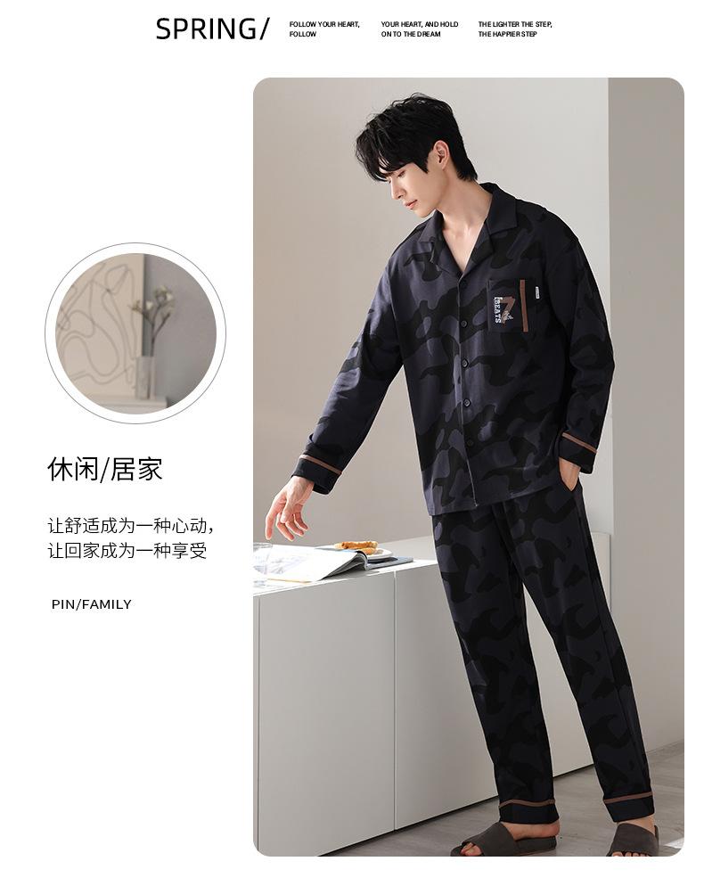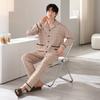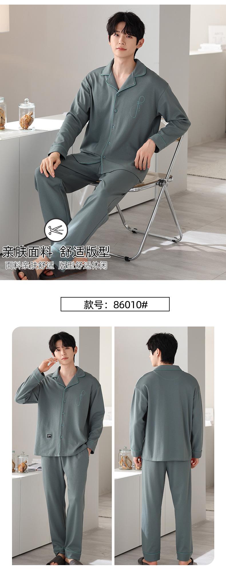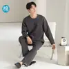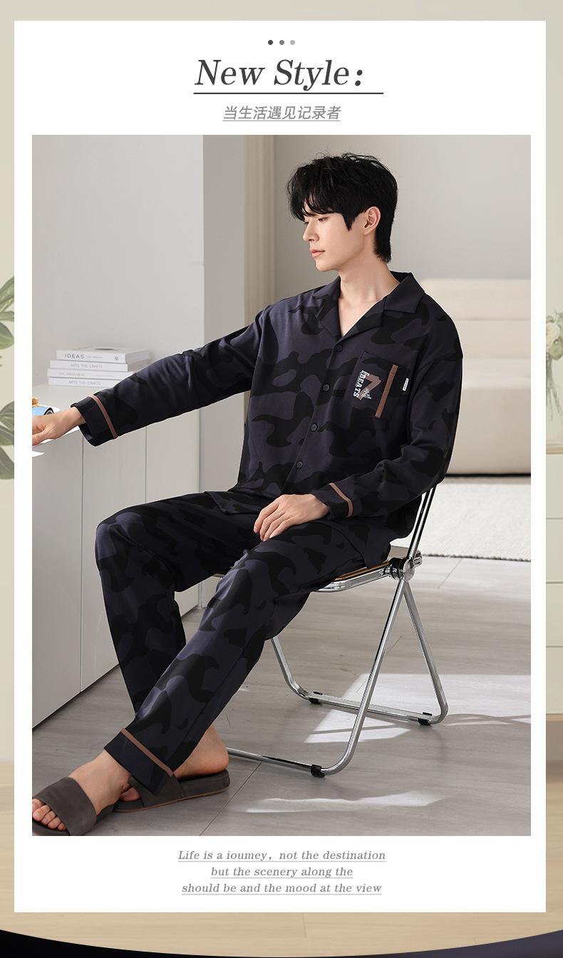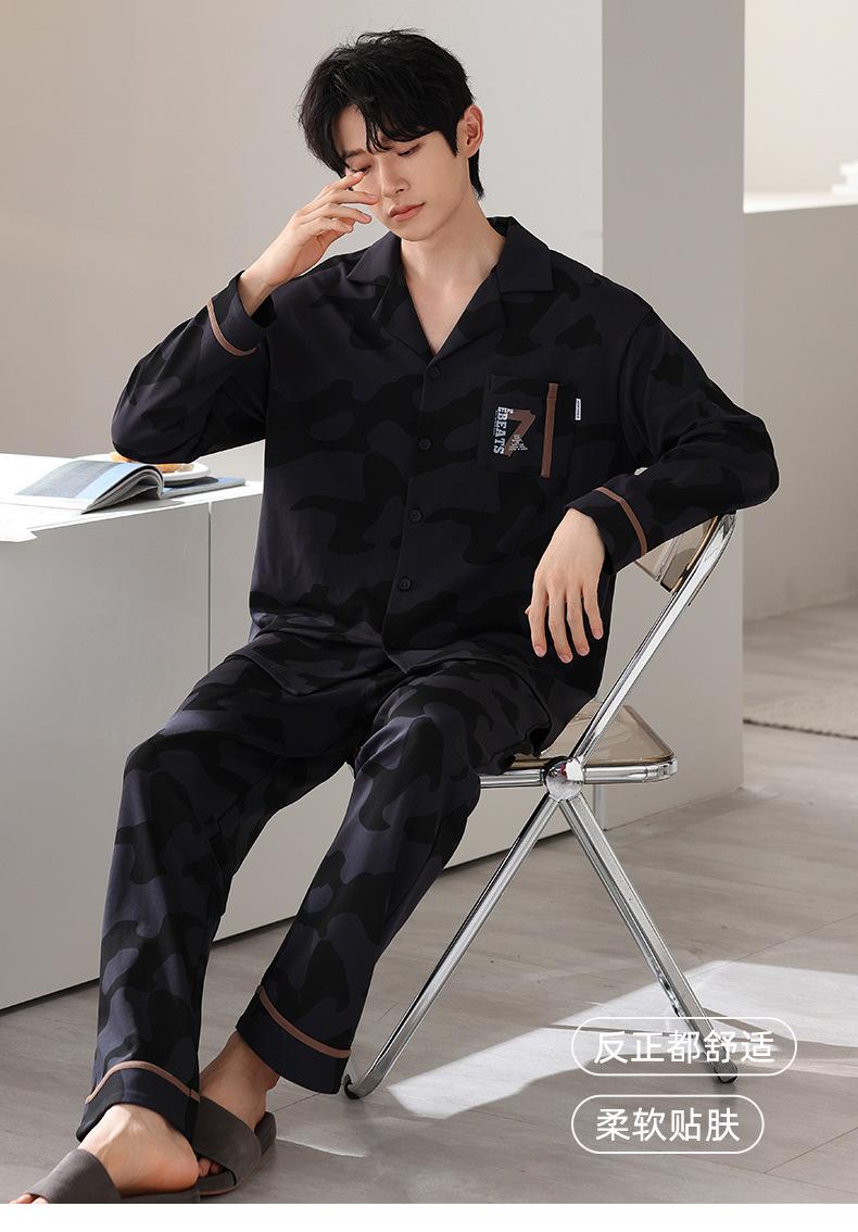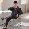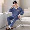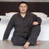 Otoño Nuevo Manga Larga Hombre 100% Algodón Puro Pijama Talla Extra Suelto Cárdigan Puede Usar Fuera Conjunto Cómodo Ropa de Casa