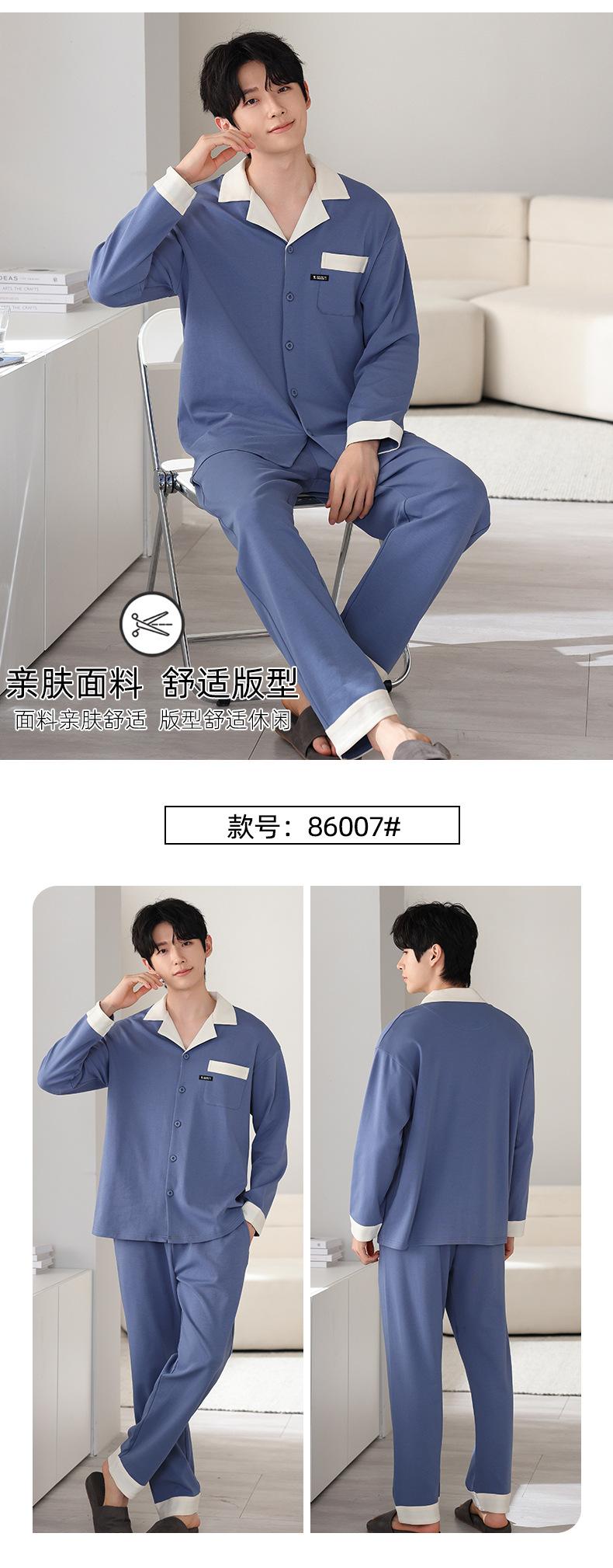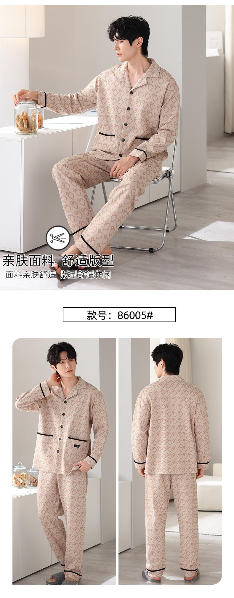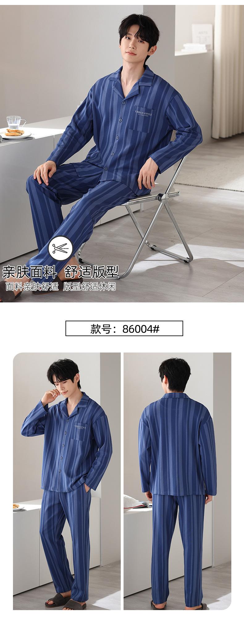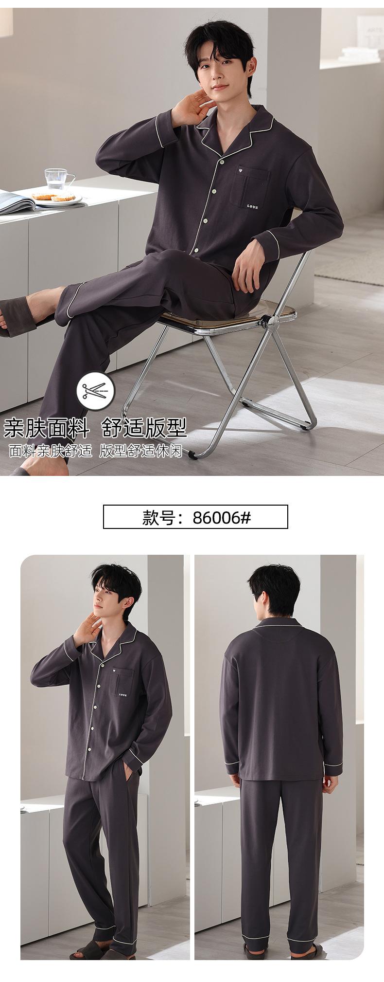 Otoño Nuevo Manga Larga Hombre 100% Algodón Puro Pijama Talla Extra Suelto Cárdigan Puede Usar Fuera Conjunto Cómodo Ropa de Casa