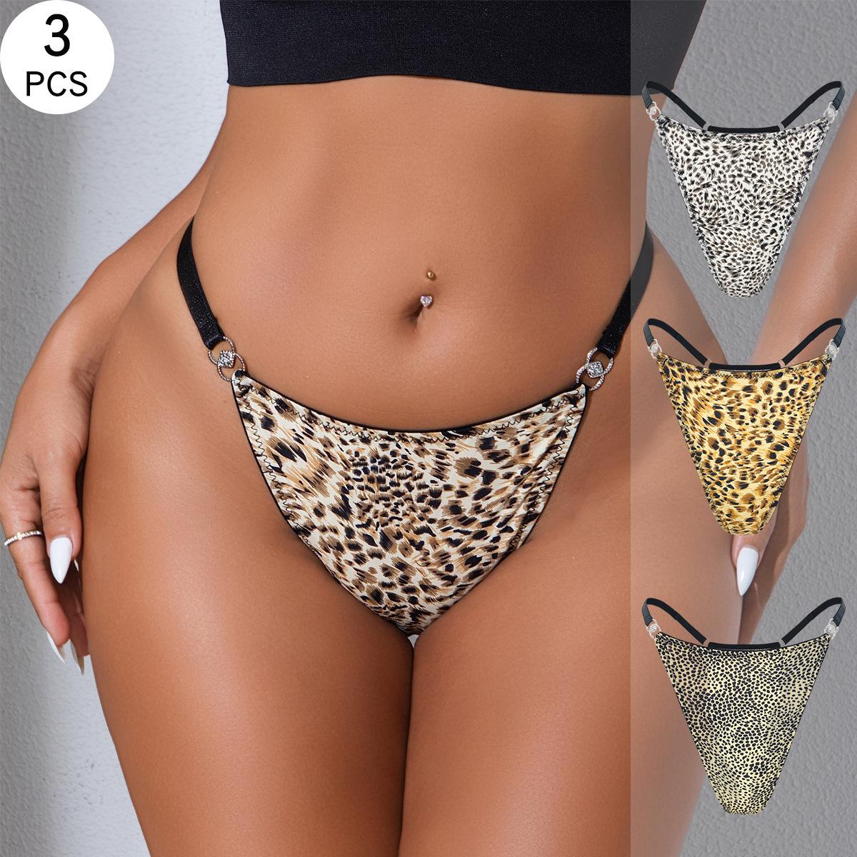 Tanga Estampado Leopardo Comercio Exterior para Niñas Sexy y Caliente Coqueteo Mujer Tirantes Finos Ajustable Cintura Baja Ropa Interior Nueva de Algodón Puro