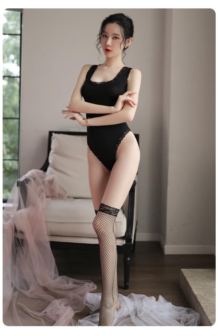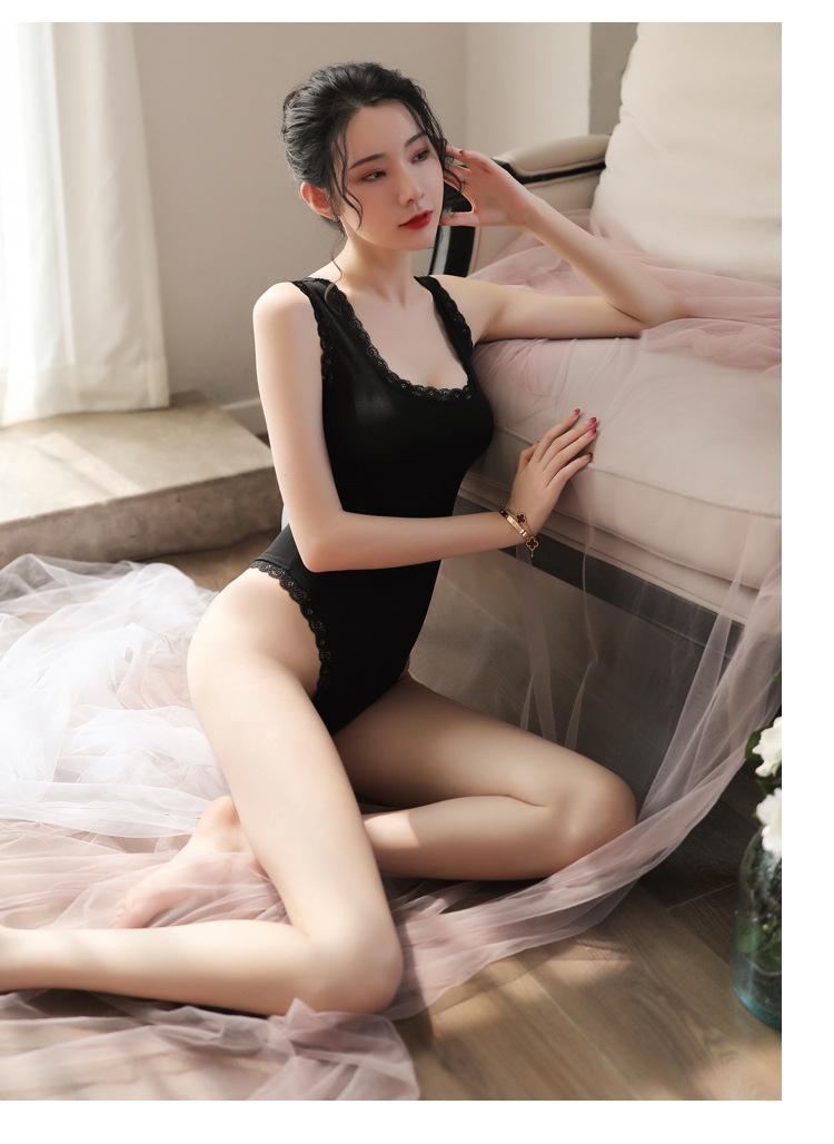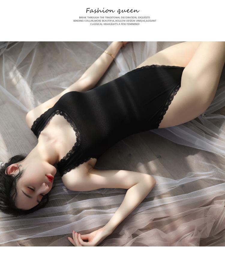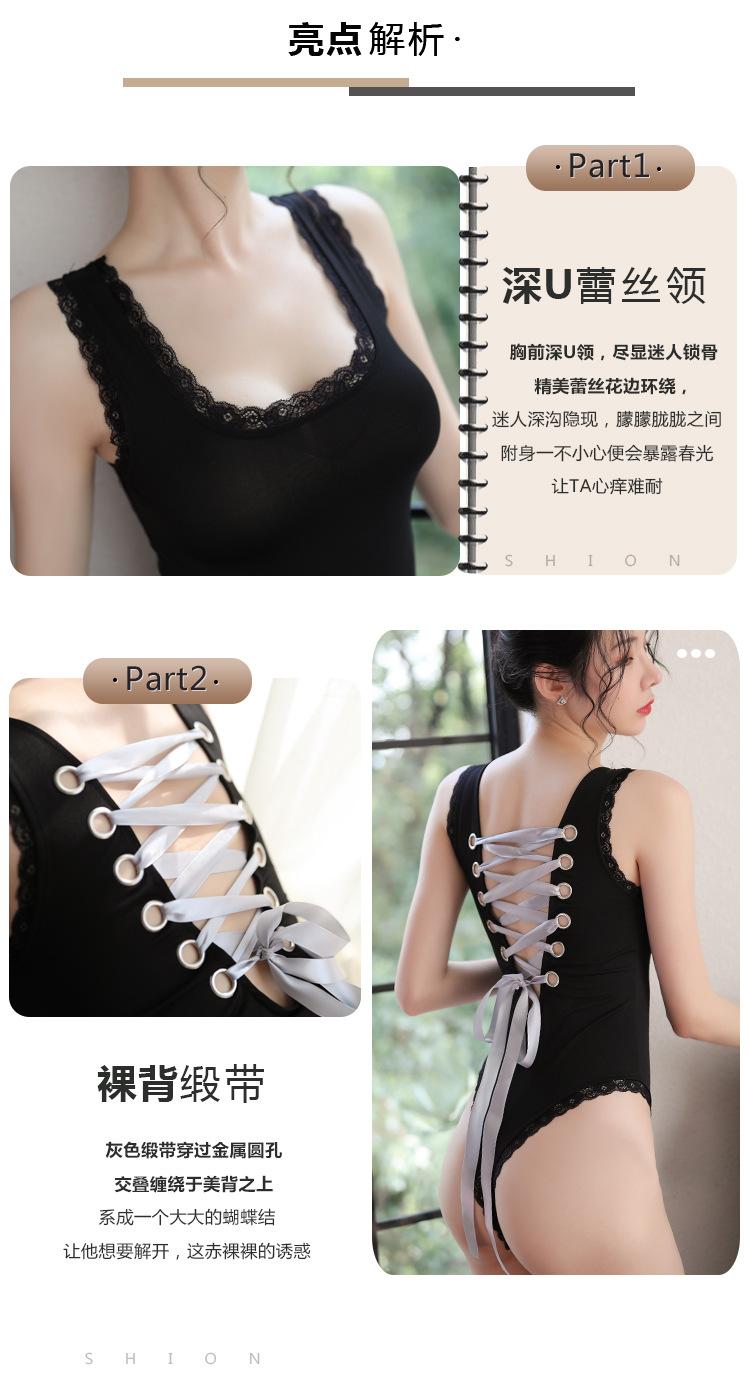 Lencería Sexy Camisola Body Push-up Encaje Negro con Cordones Espalda Hermosa Tentación Sexy Body de Club Nocturno para Mujer 1714