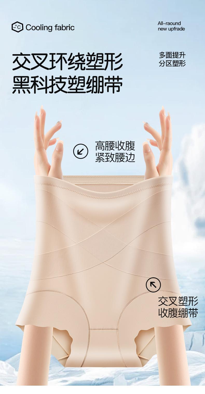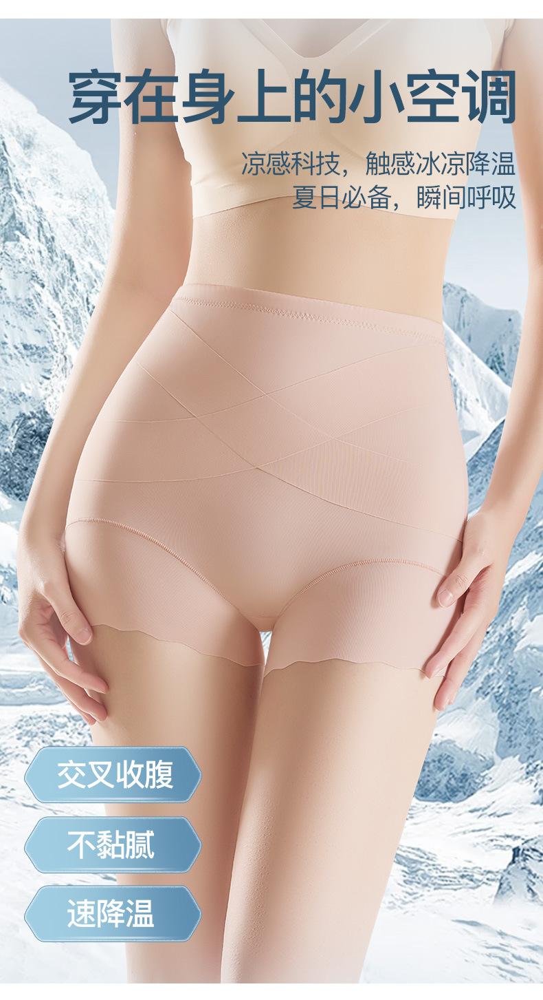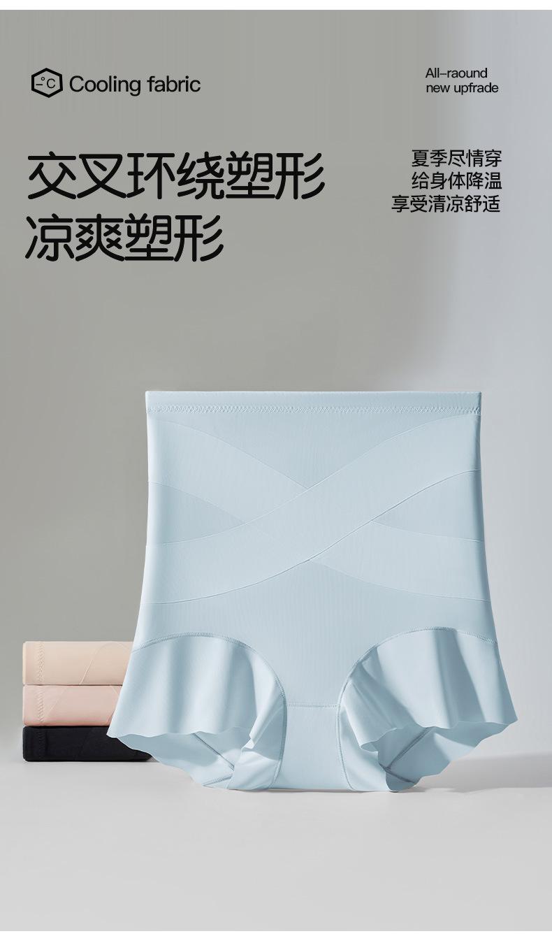 Pantalones Delgados Cruzados Control de Abdomen Seda de Hielo Cintura Alta Bragas Control de Abdomen Mujer Levantamiento de Cadera Sin Costuras Secado Rápido Transpirables Braguitas Triángulo Mujer