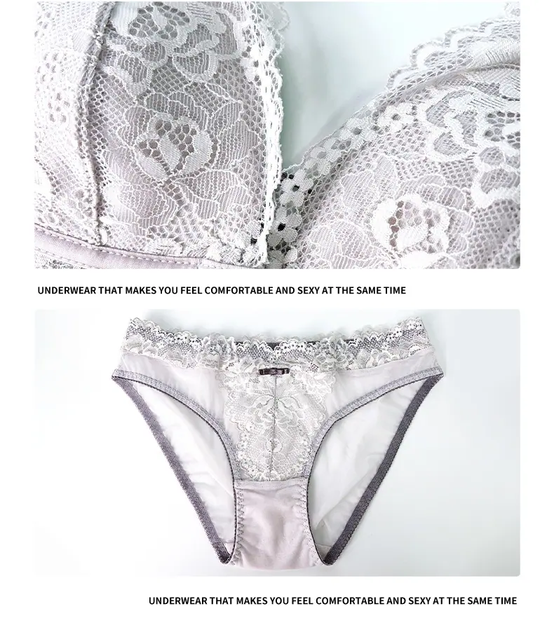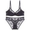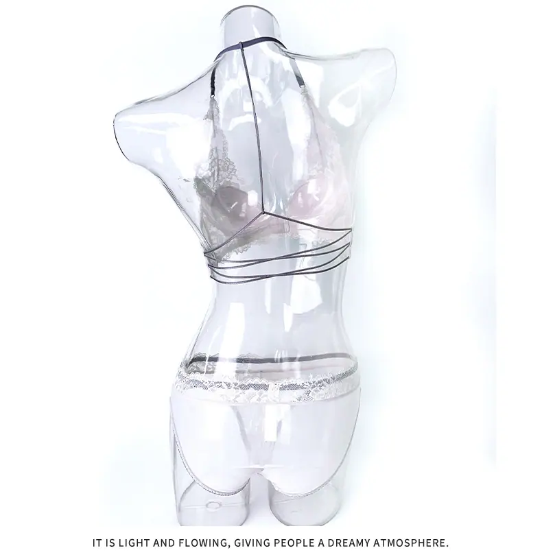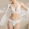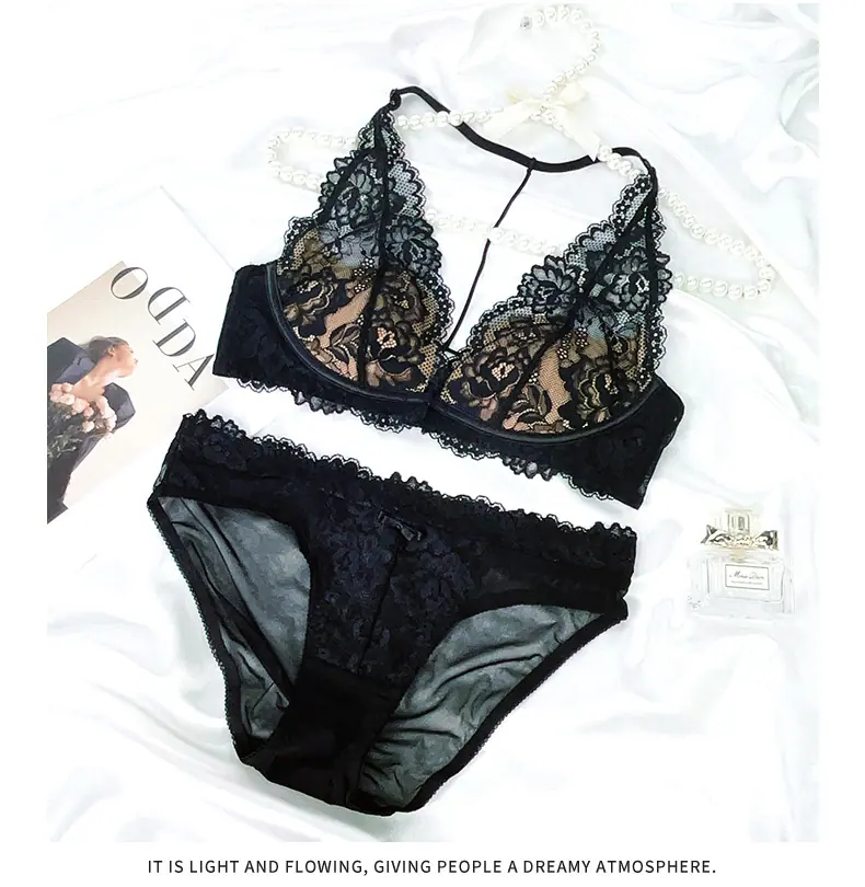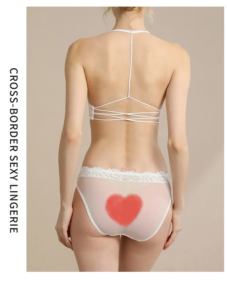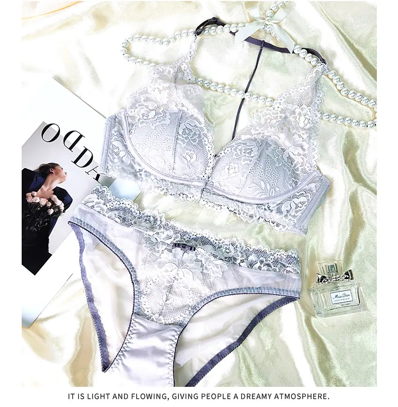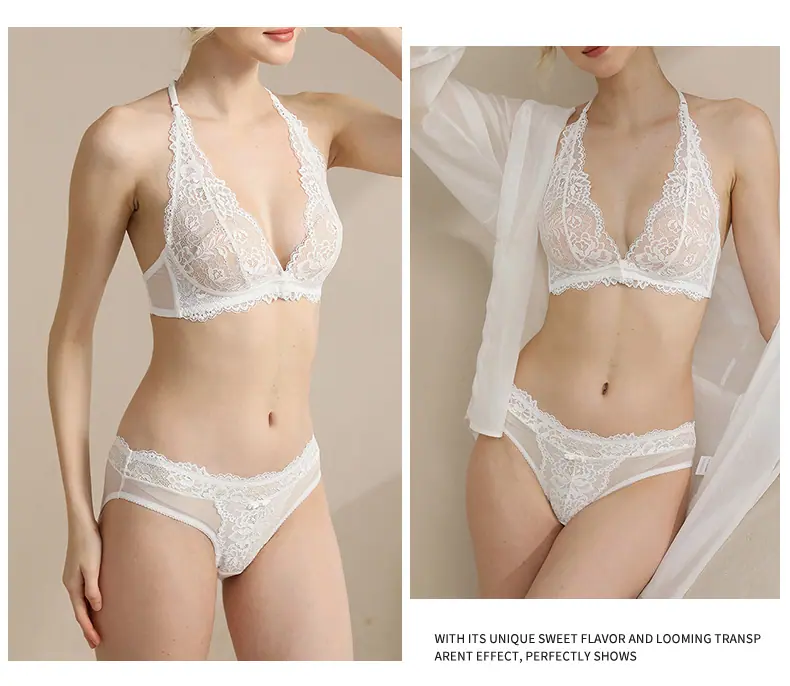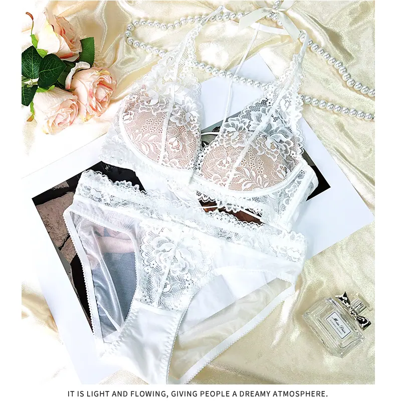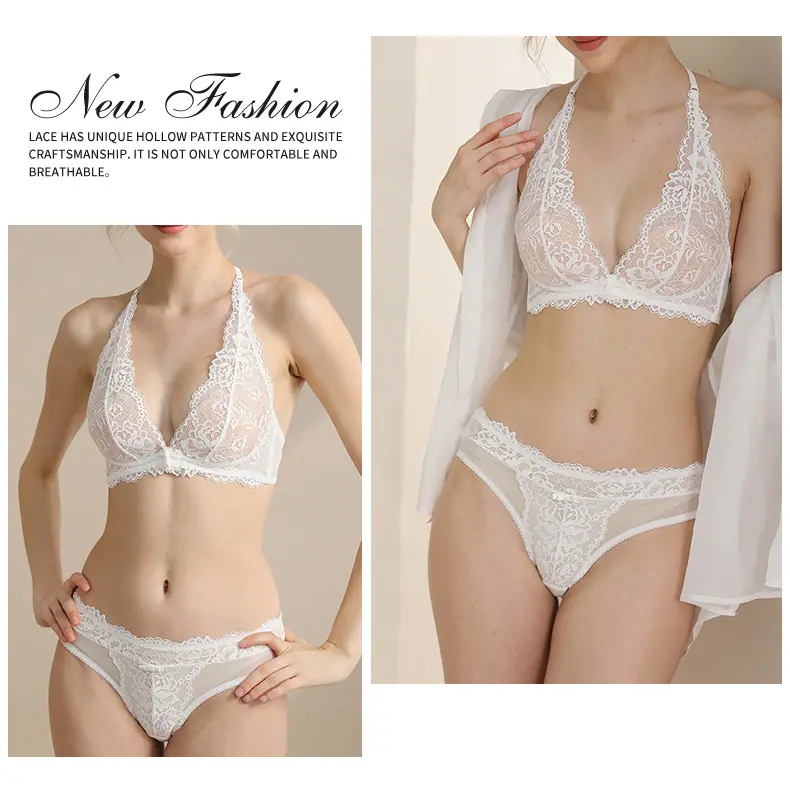 Lencería Francesa de Verano para Mujer Delgada Sin Aros Sexy Deseo Puro Encaje Sujetador Hebilla Delantera Halter Cuello Hermoso Conjunto de Lencería de Espalda