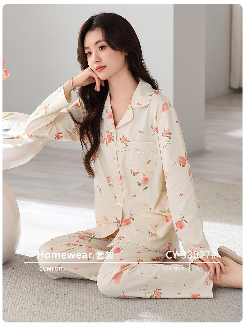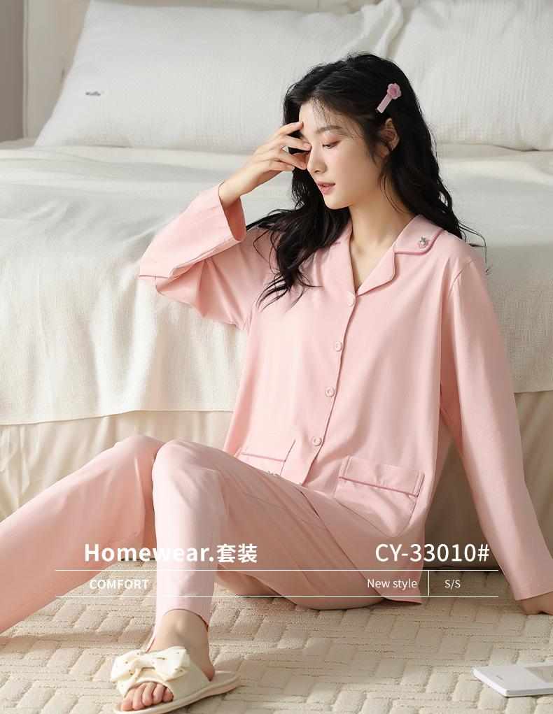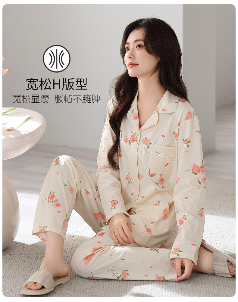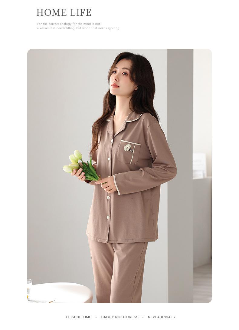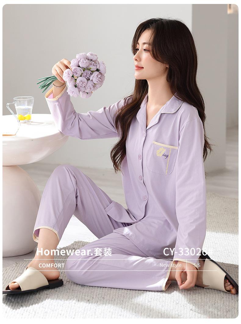 Fabricante Otoño Nuevo Producto Punto Venta Directa Pijama de Mujer Simple Holgado Cómodo Casual Se Puede Usar Afuera Conjunto de Ropa para el Hogar