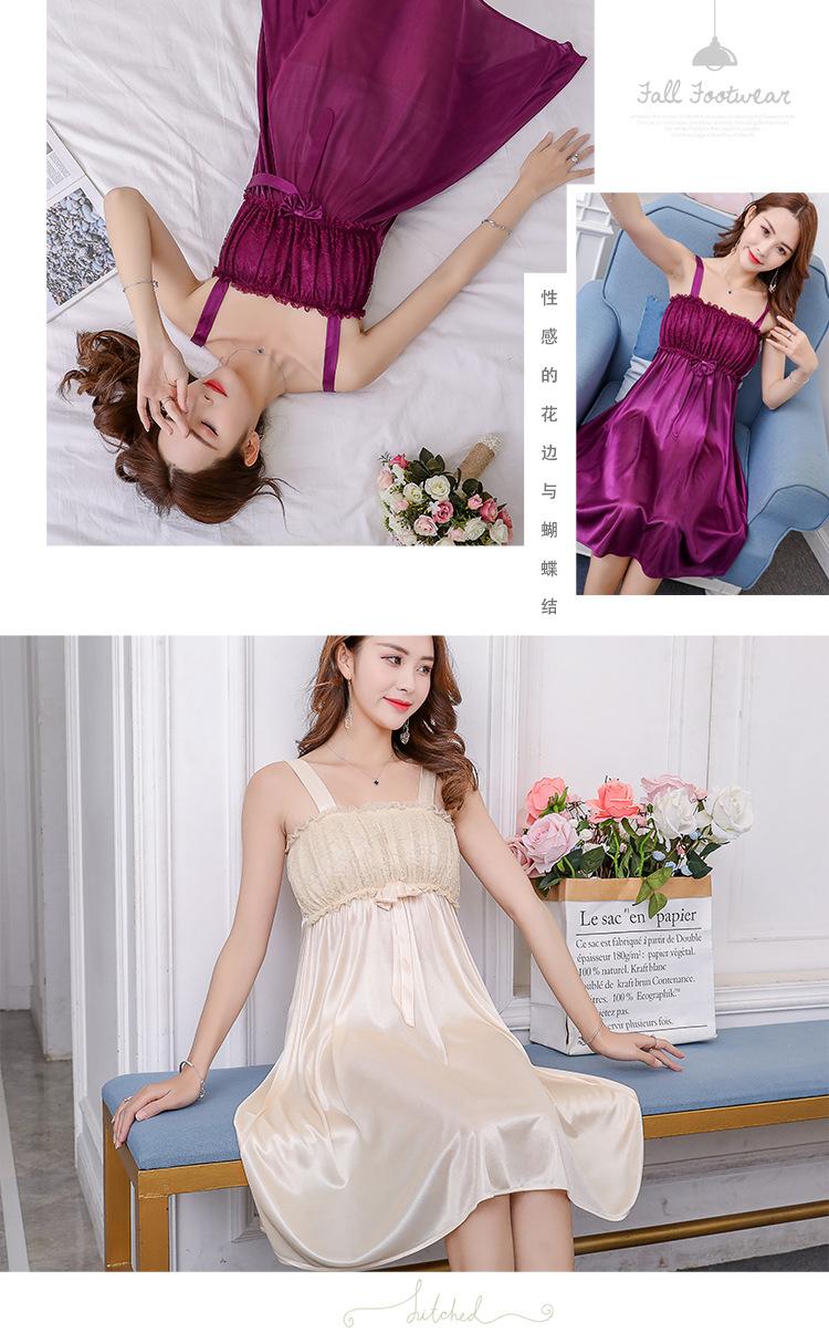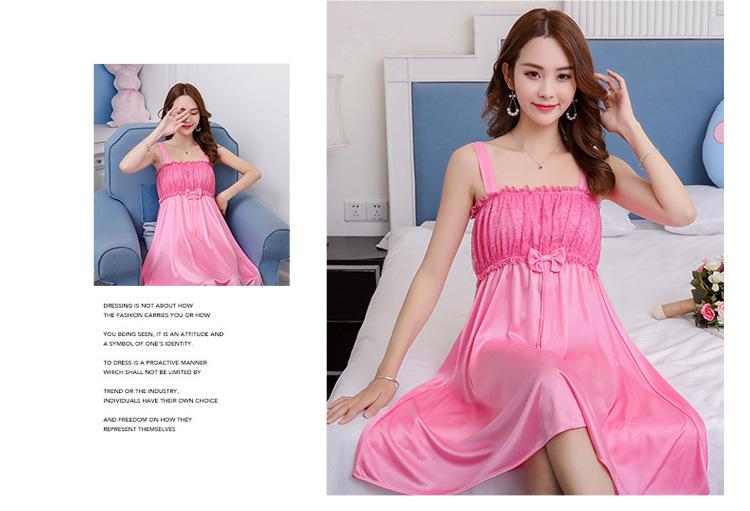 Nuevo Camisón Sexy de Verano para Mujer Camisola Erótica de Seda Tentación Pijama de Seda de Hielo Lindo Vestido Ropa de Casa
