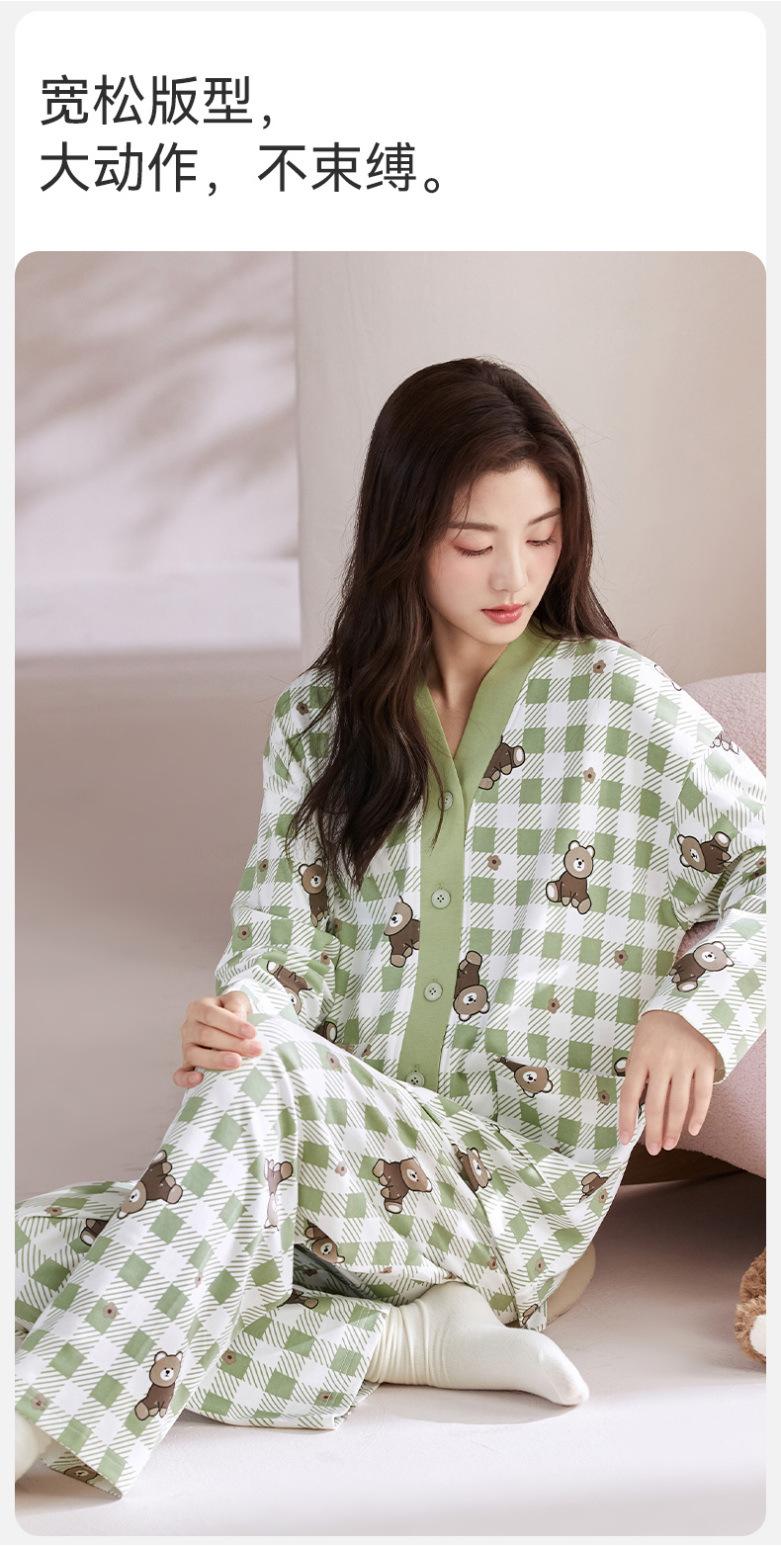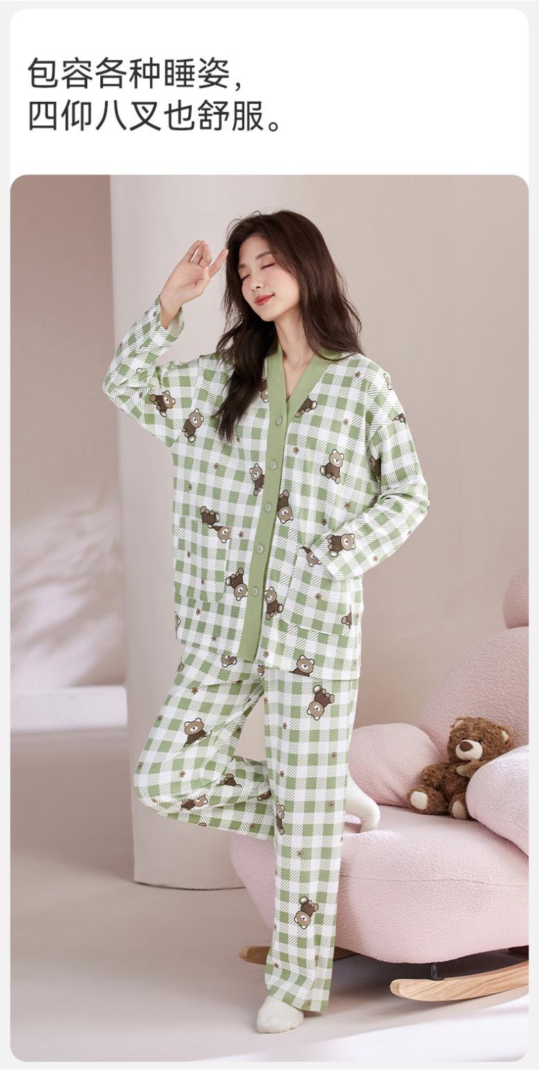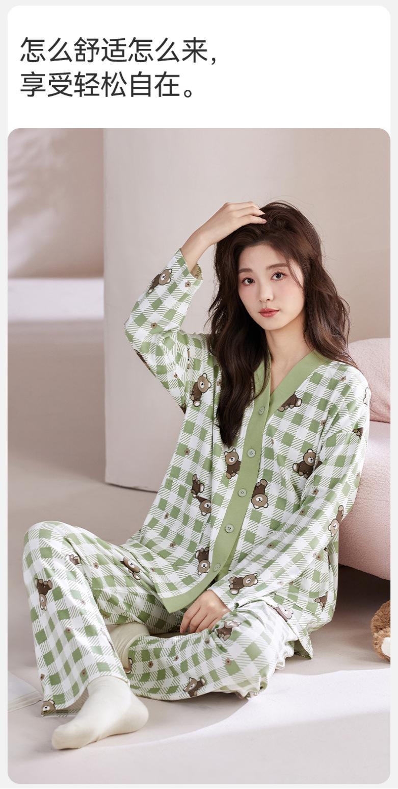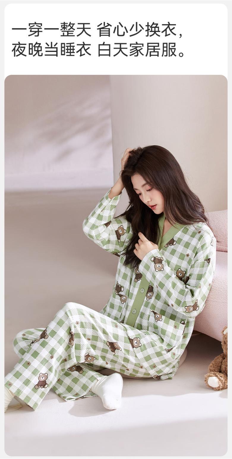 Pijama de Algodón Puro para Mujer Otoño Manga Larga Pantalón Largo Nueva Temporada de Otoño Estilo Caliente Cárdigan Suelto Talla Grande Conjunto para Estar en Casa