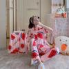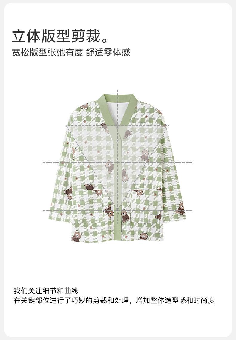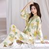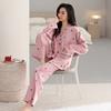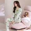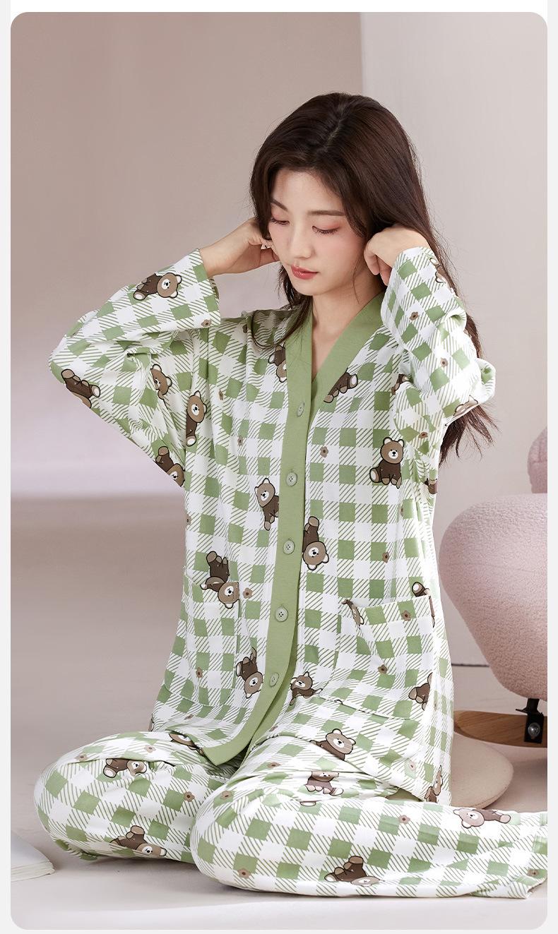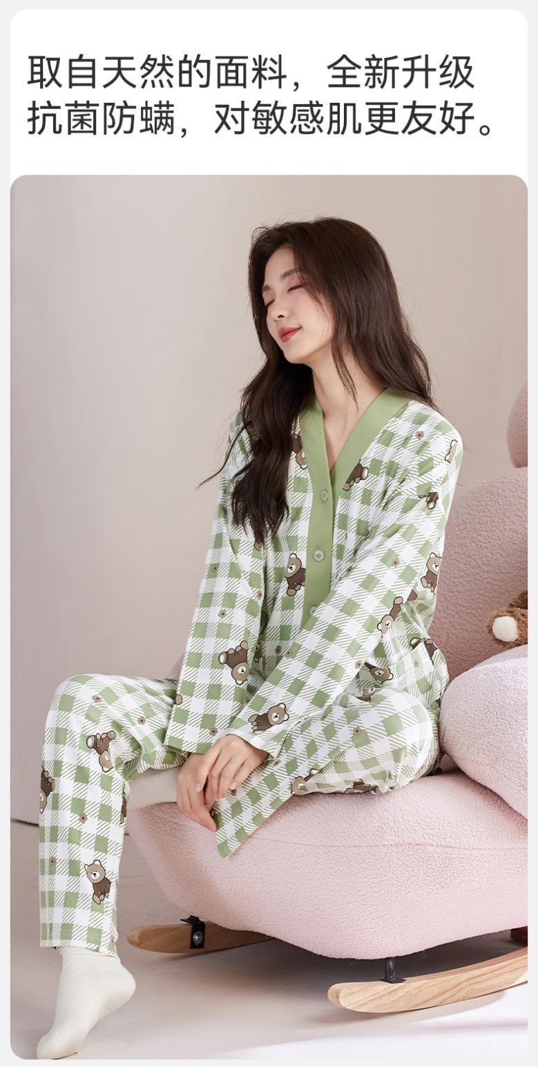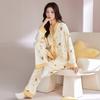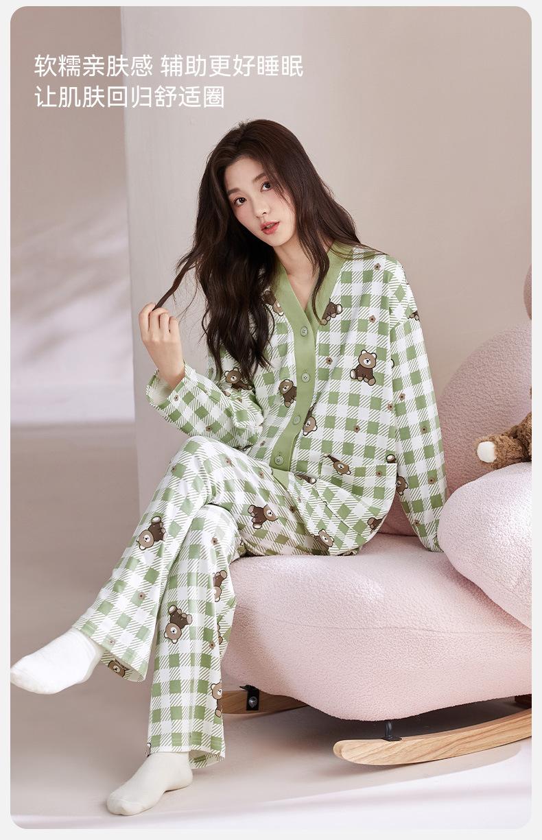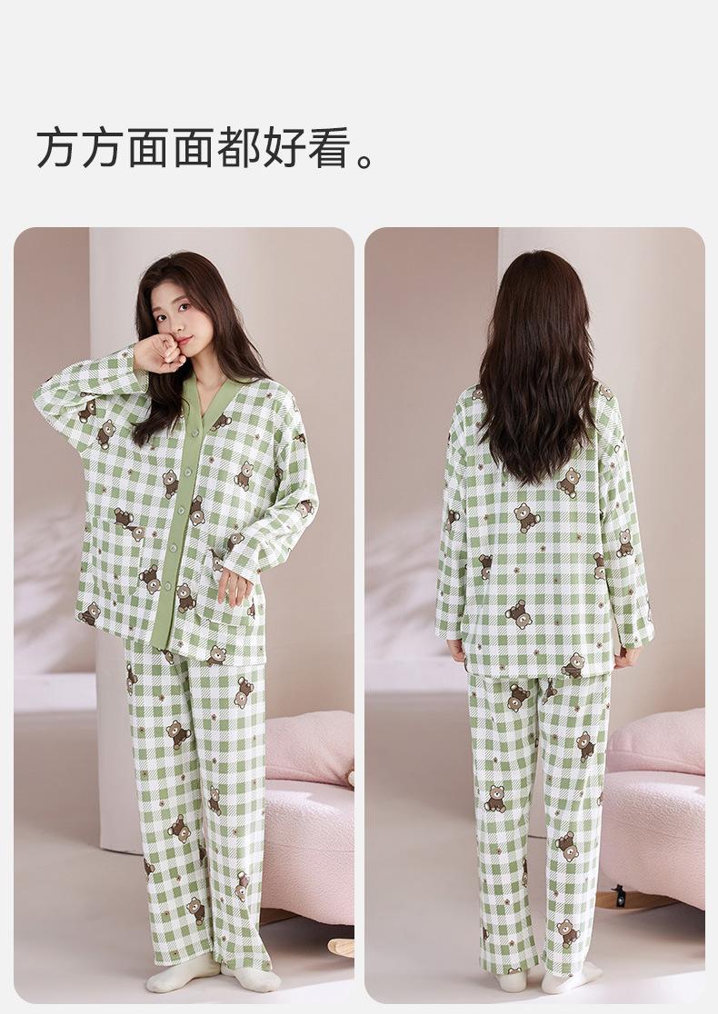 Pijama de Algodón Puro para Mujer Otoño Manga Larga Pantalón Largo Nueva Temporada de Otoño Estilo Caliente Cárdigan Suelto Talla Grande Conjunto para Estar en Casa