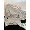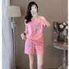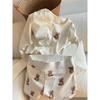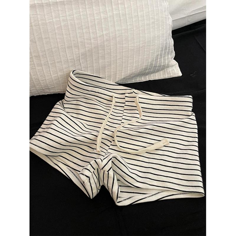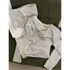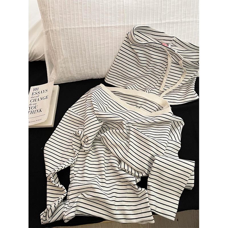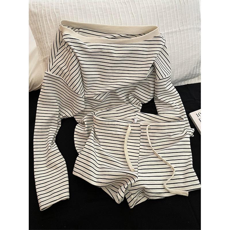 [Estilo Similar a Taobao] Pijama de Rayas con Hombro Descubierto para Mujer Primavera y Otoño 2025 Talla Grande Manga Larga Shorts Ropa de Casa Bata