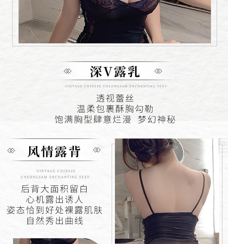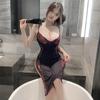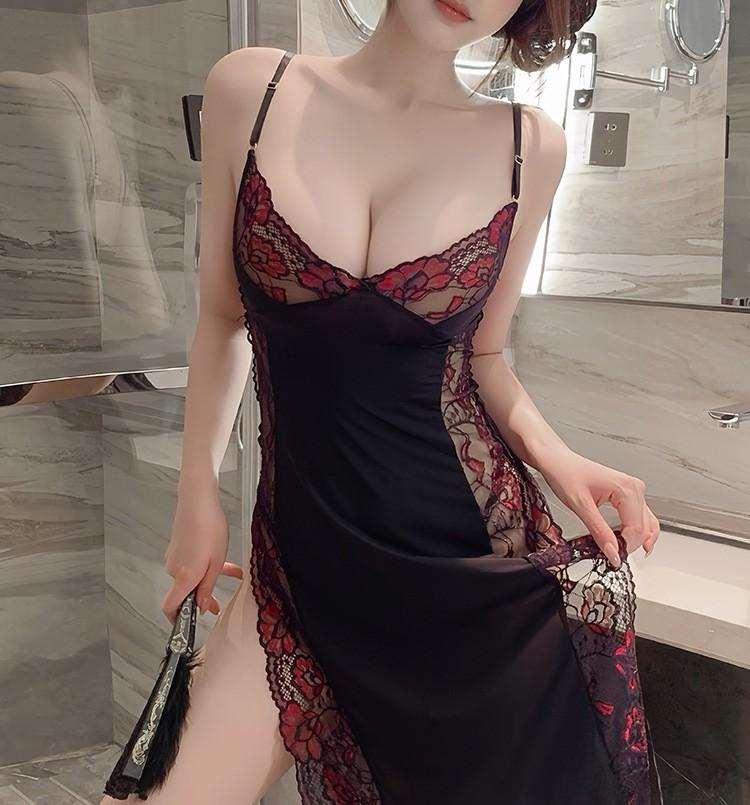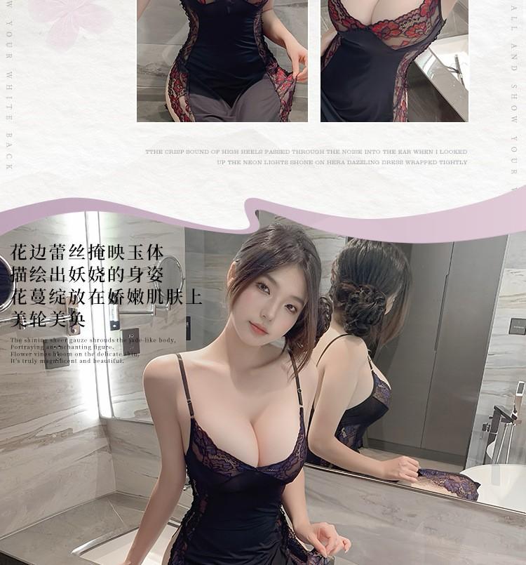 Sexy Escote en V Profundo Encaje Temperamento Abertura Lencería Erótica Tentación Deseo Puro Transparente Camisola Conjunto de Camisón Transfronterizo
