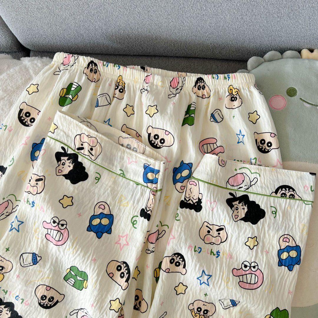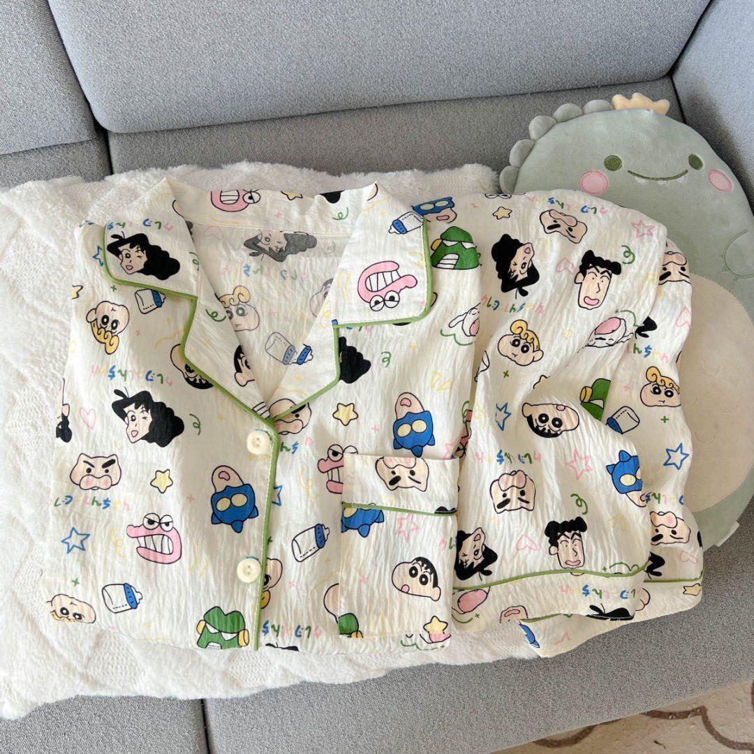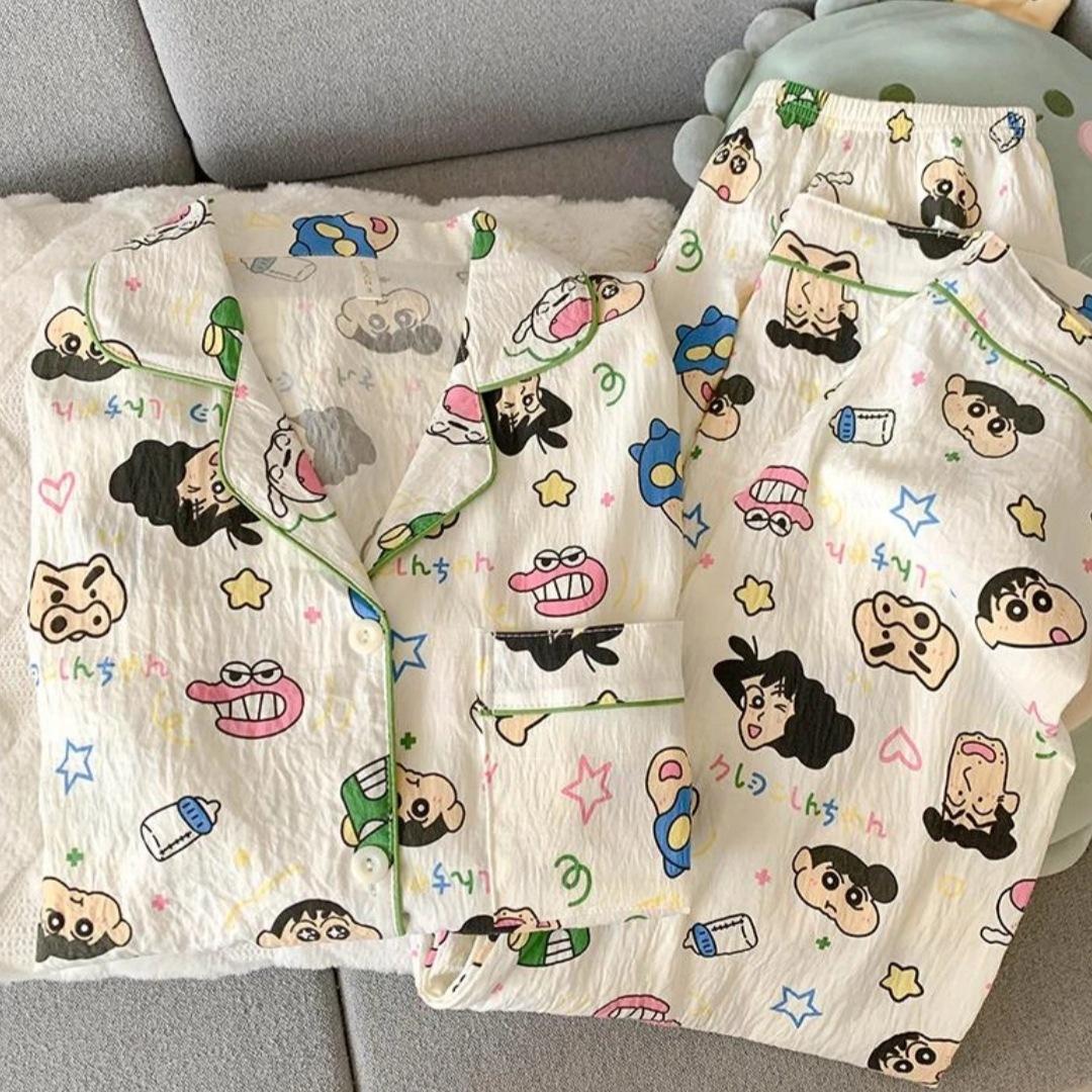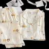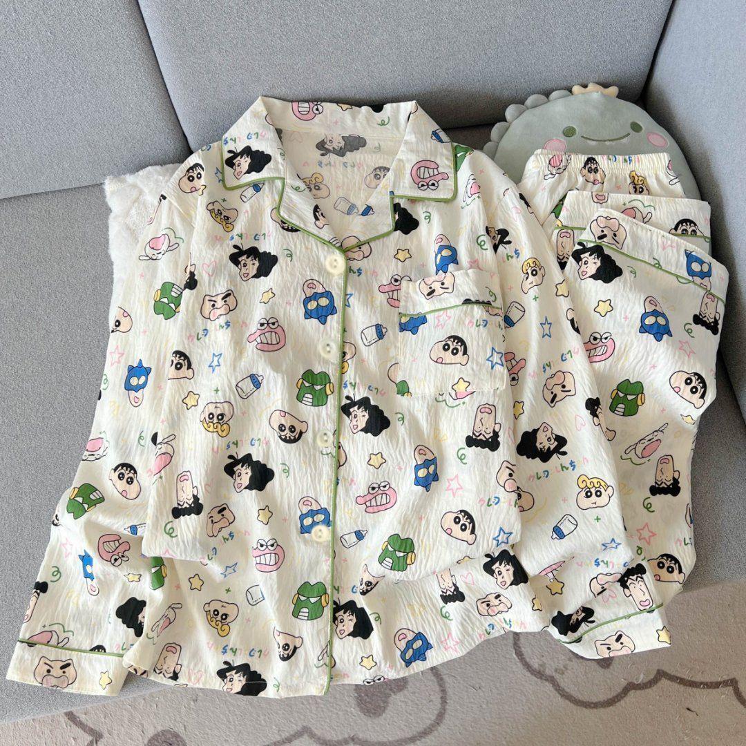 Pijama de Mujer Primavera Otoño Verano Algodón Nube Manga Larga Pantalón Largo Cárdigan Lindo Dibujo Animado Niña Puede Usar Fuera Ropa para el Hogar Set