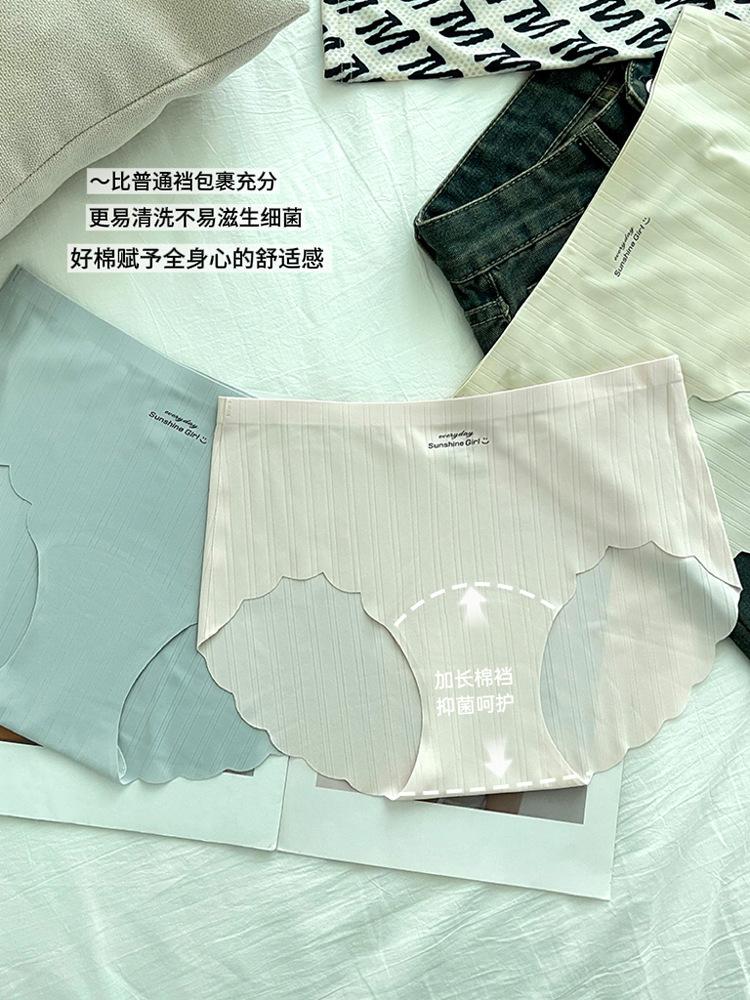 Nueva Ropa Interior Sin Costuras de Seda de Hielo para Mujer 10A Antibacteriana Entrepierna Extendida Transpirable Cintura Media Cómoda Entrepierna de Algodón Puro Ropa Interior de Onda