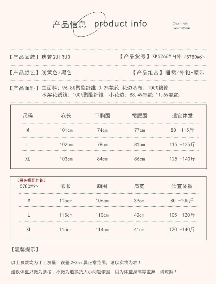 XK5266 black (suspender), 5780 black (outer robe + belt), XK5266 light yellow (suspender), XK5266 light yellow (outer robe)