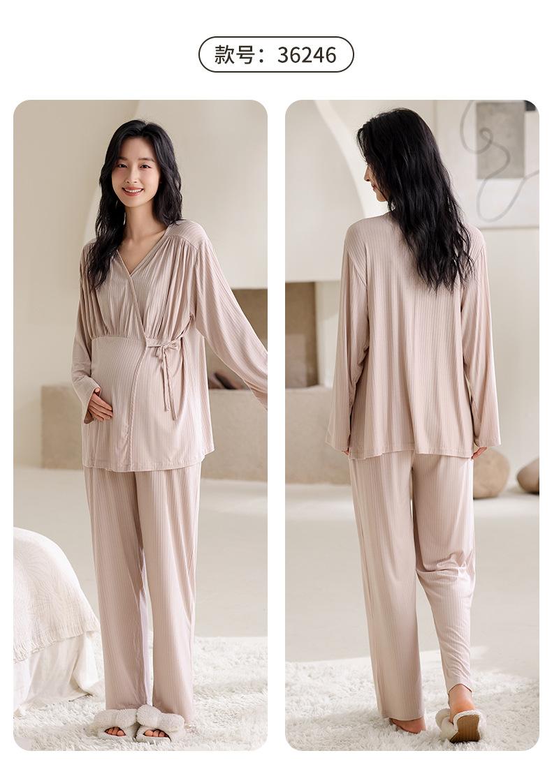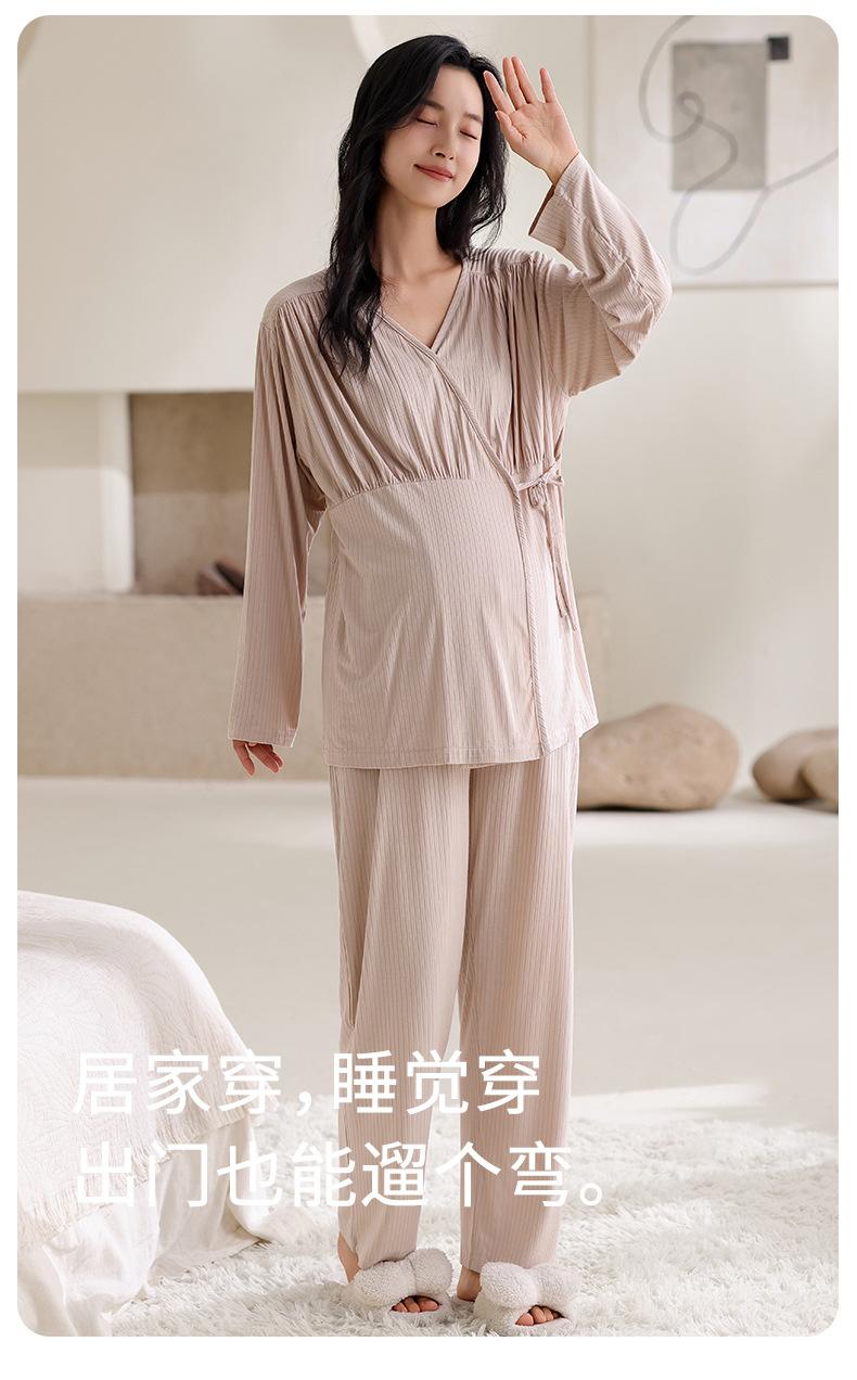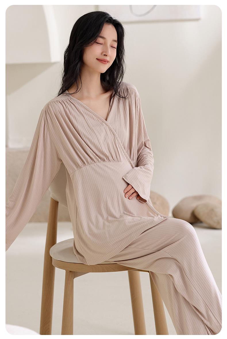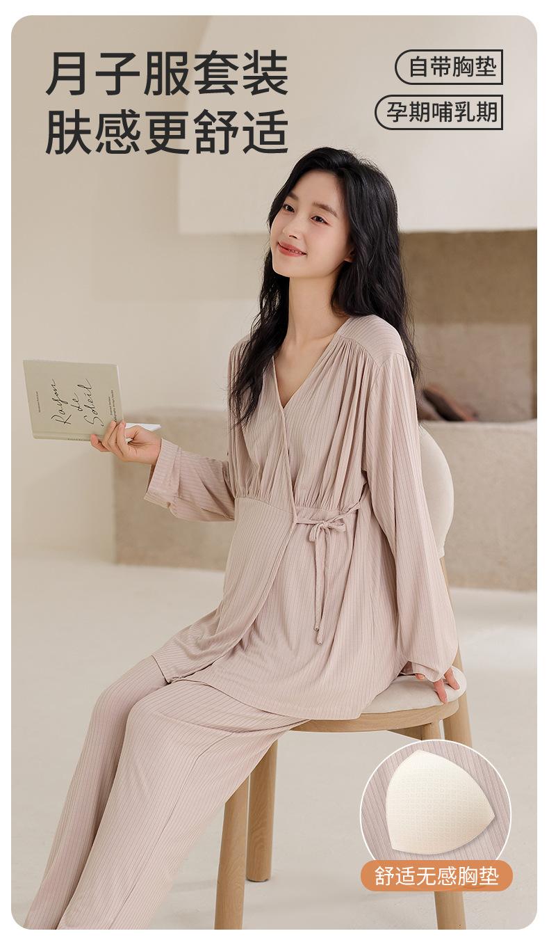 Feliz Luna 2025 Primavera y Otoño Manga Larga Rayón con Almohadillas en el Busto Ropa de Maternidad Postparto Confinamiento Hogar Pijama de Lactancia