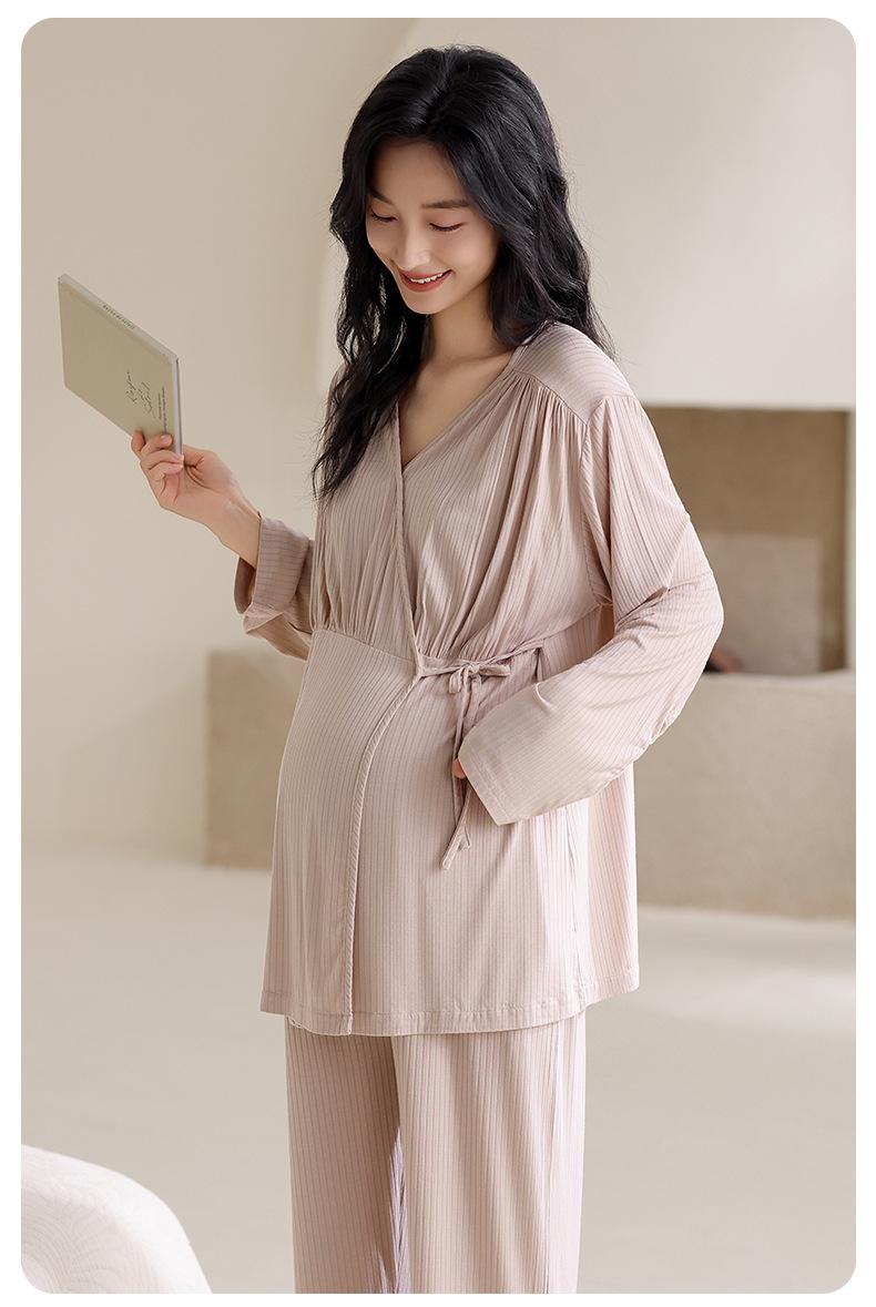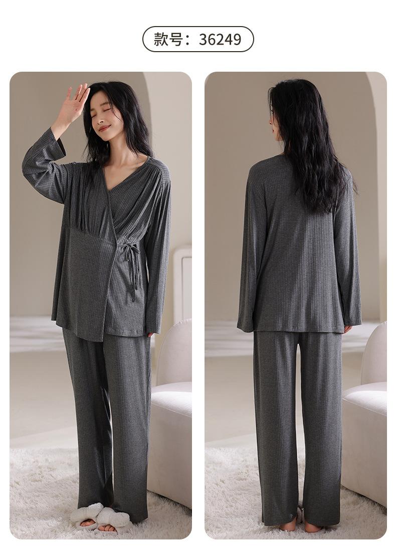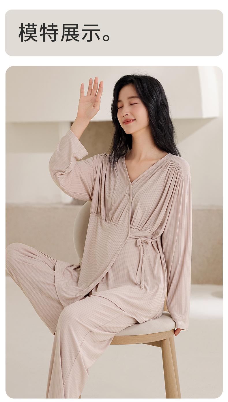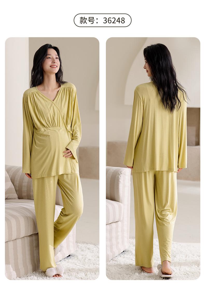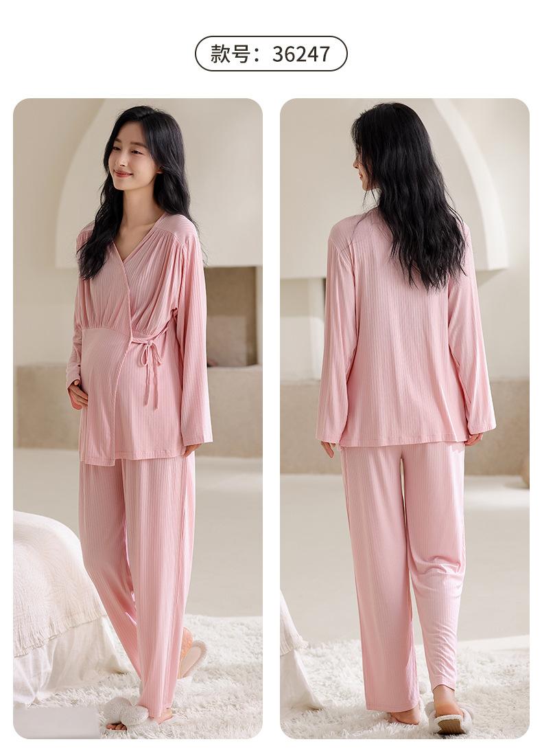 Feliz Luna 2025 Primavera y Otoño Manga Larga Rayón con Almohadillas en el Busto Ropa de Maternidad Postparto Confinamiento Hogar Pijama de Lactancia
