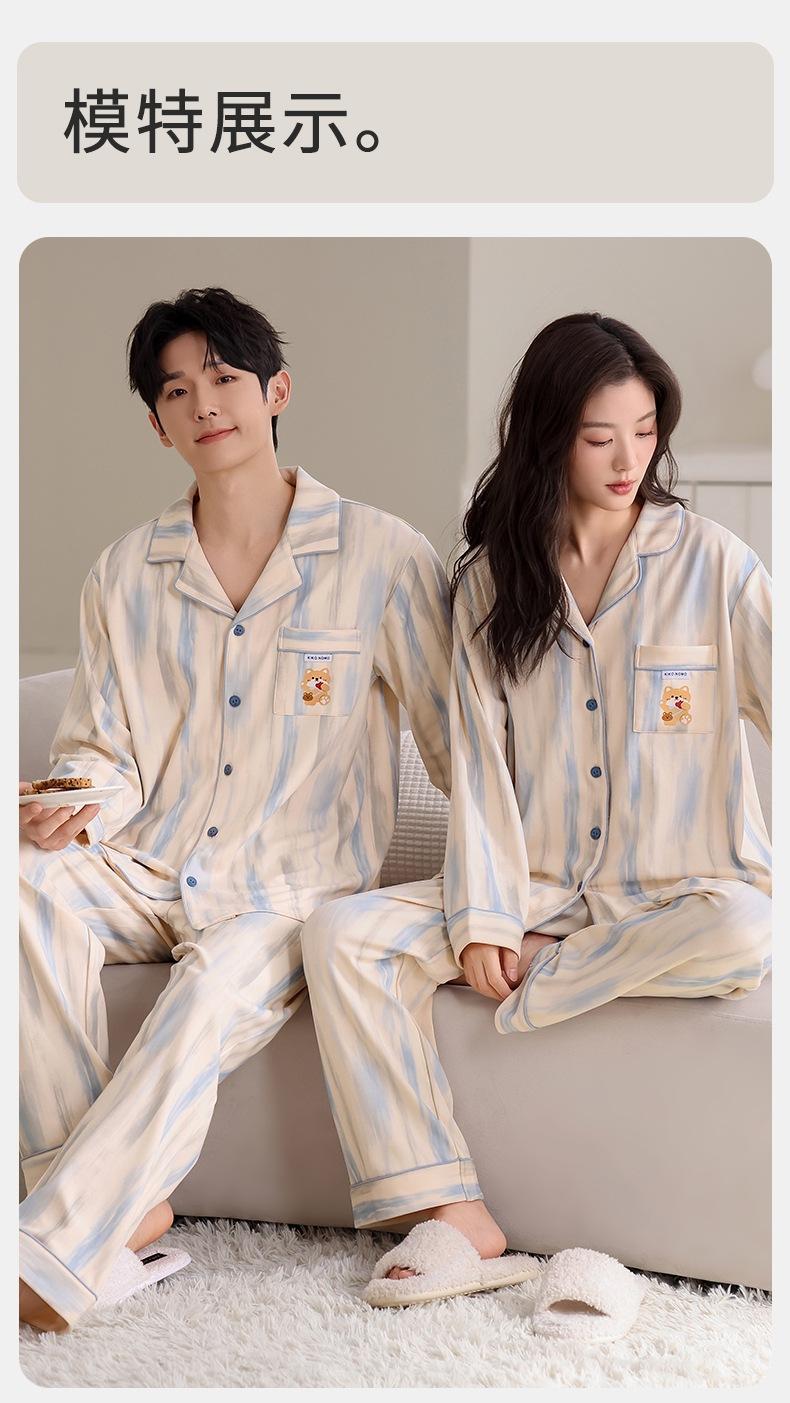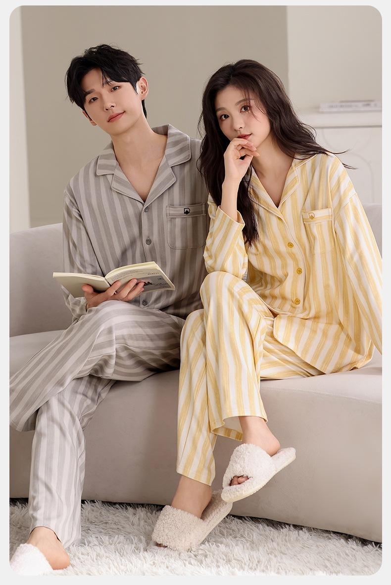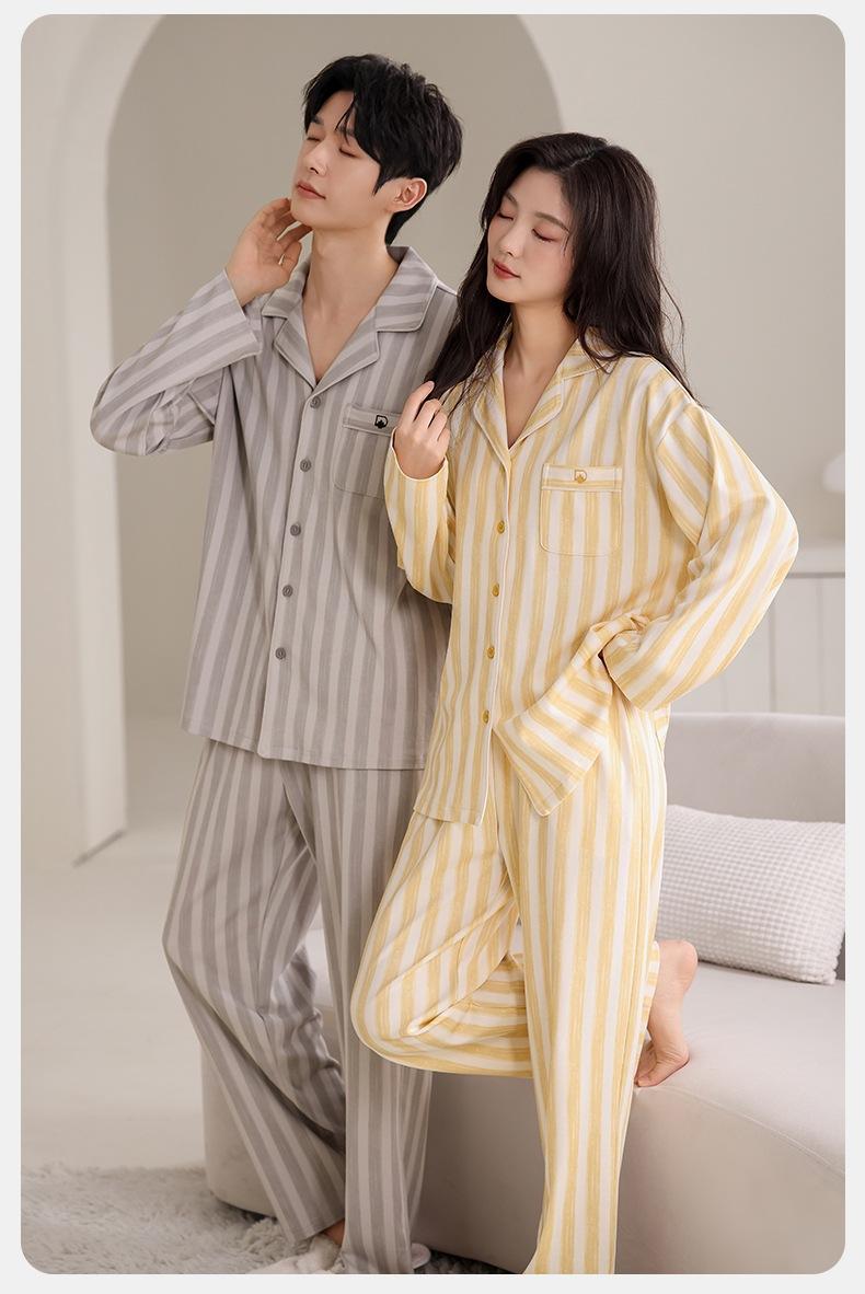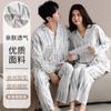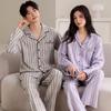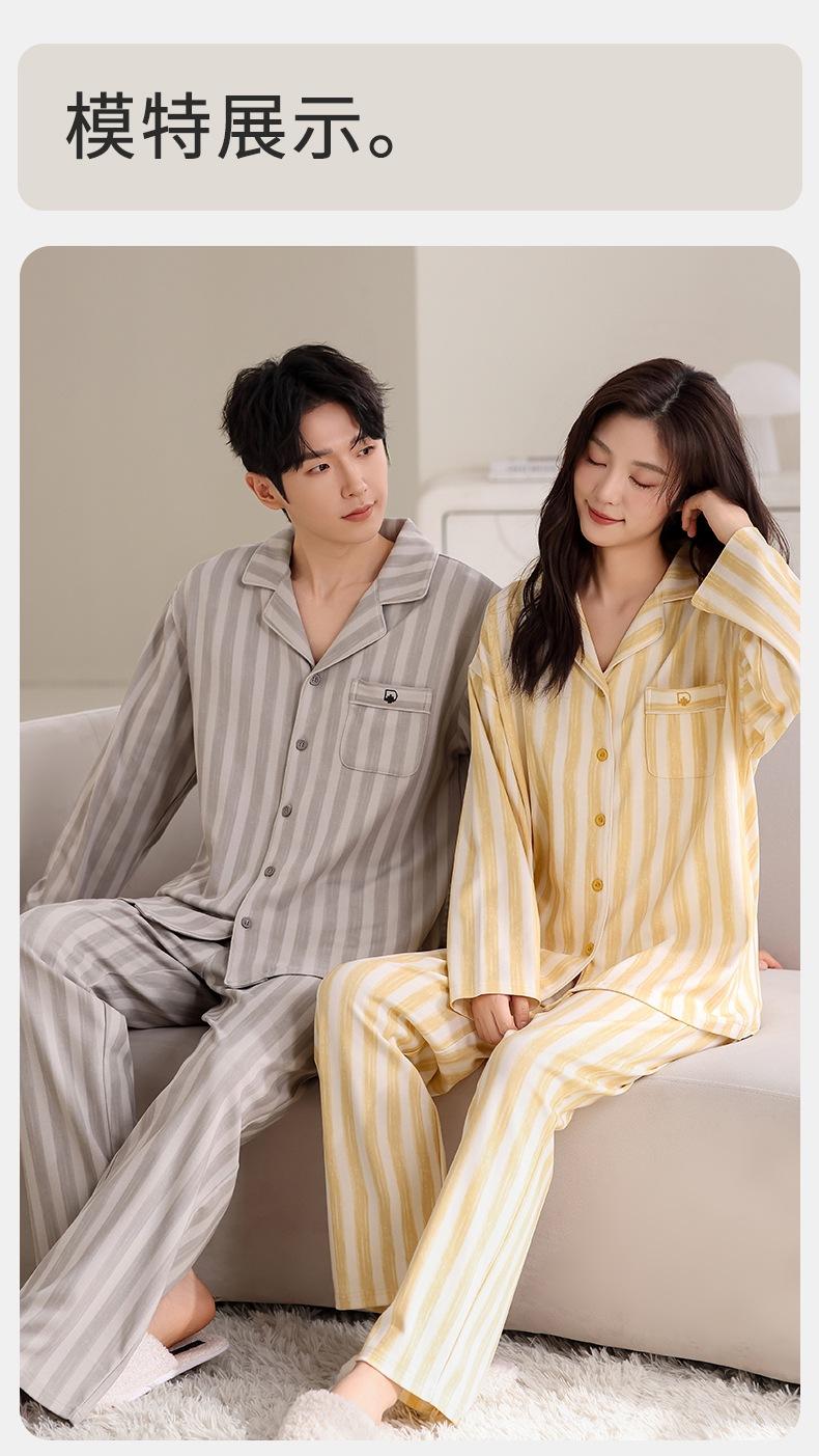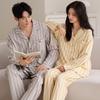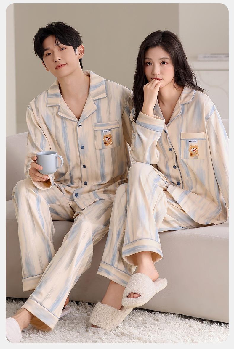 Pijama de Pareja de Estilo Nuevo de Otoño y Primavera al por Mayor Sólido para Mujer 6040 Algodón Cárdigan Solapa Manga Larga para Hombre Xiu