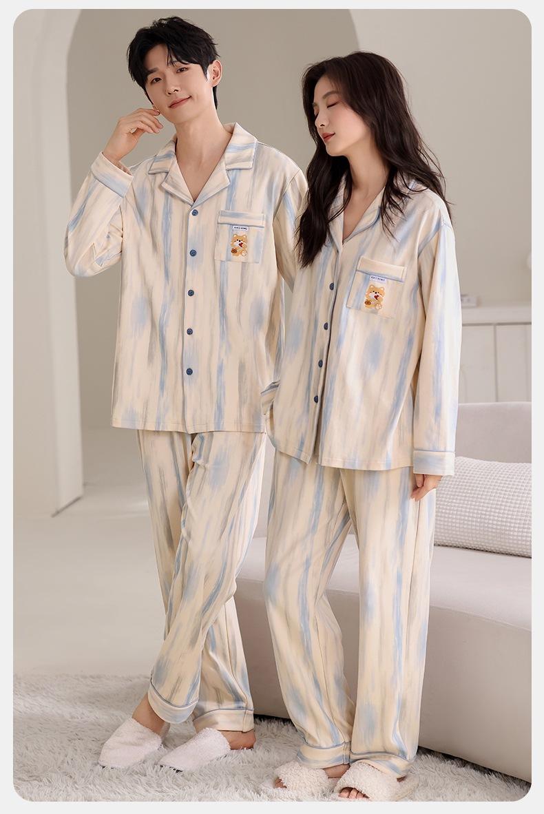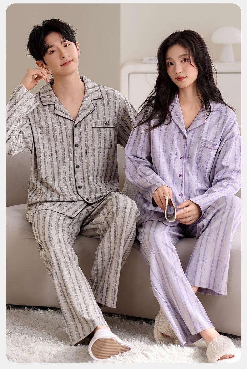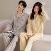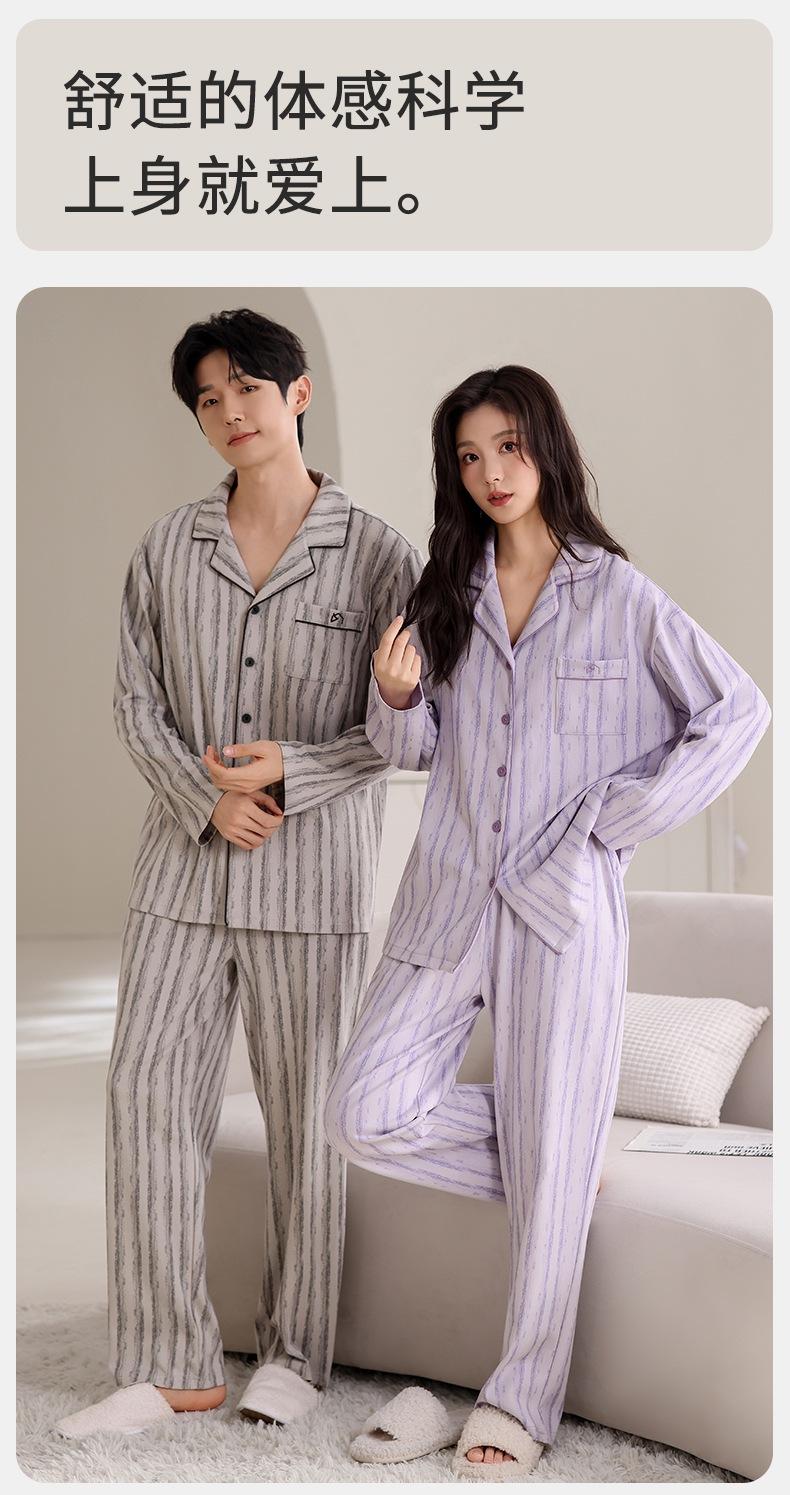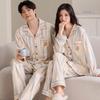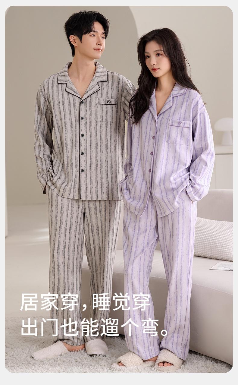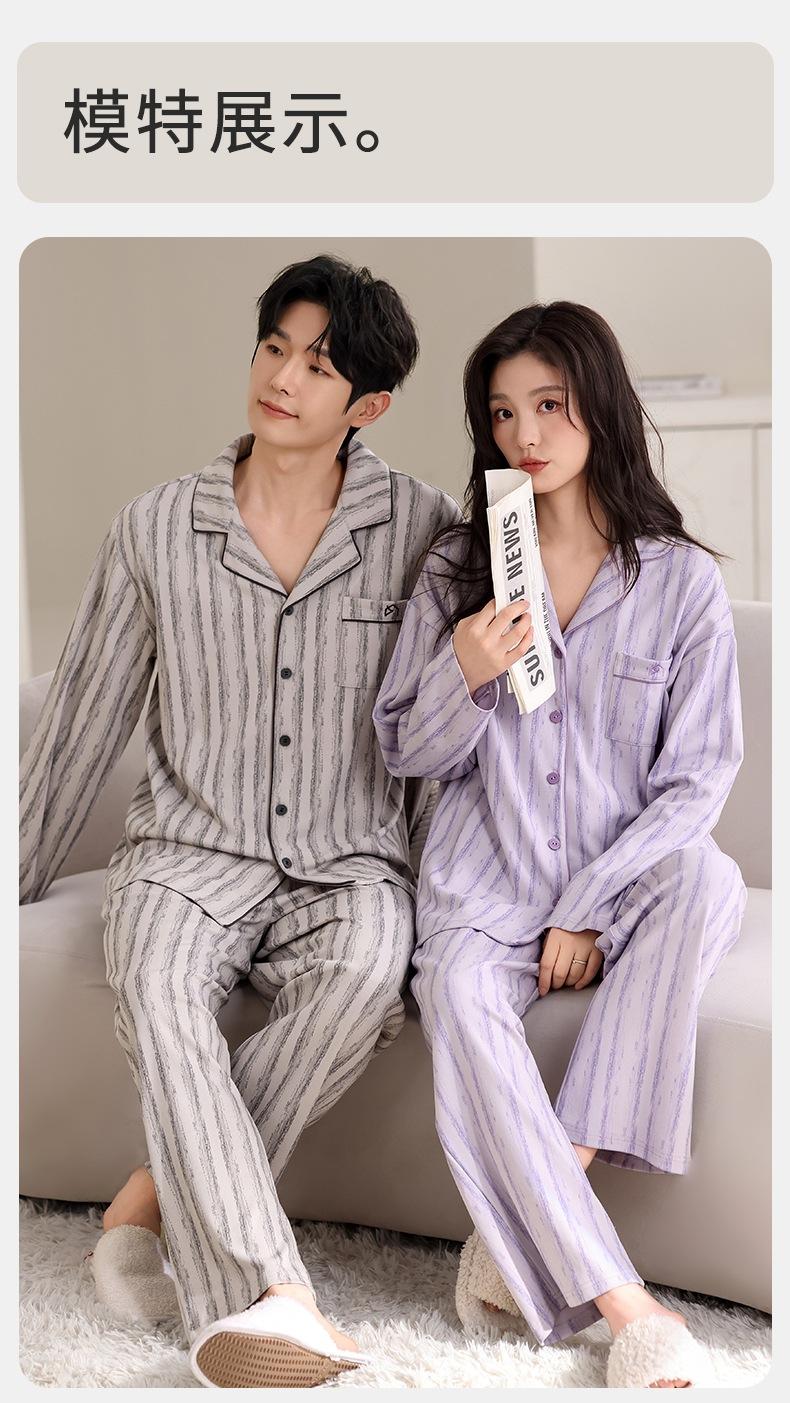 Pijama de Pareja de Estilo Nuevo de Otoño y Primavera al por Mayor Sólido para Mujer 6040 Algodón Cárdigan Solapa Manga Larga para Hombre Xiu