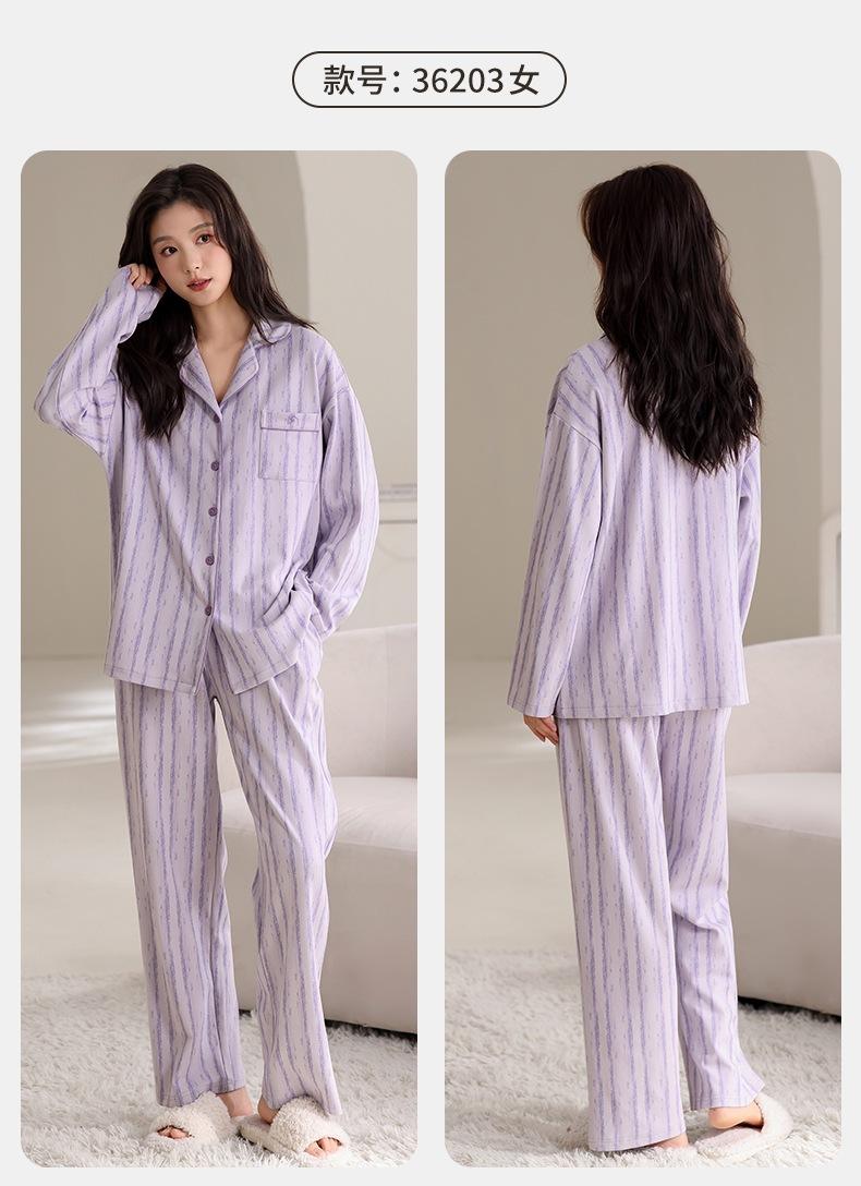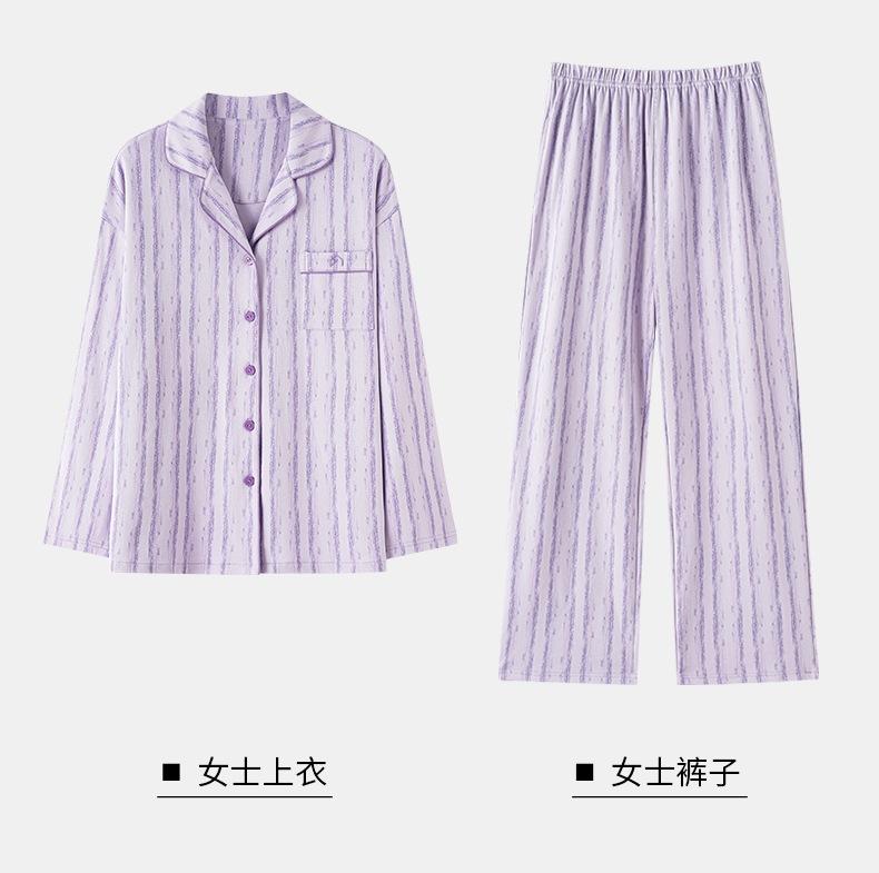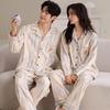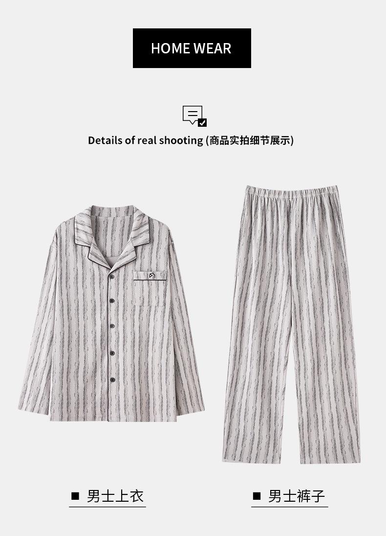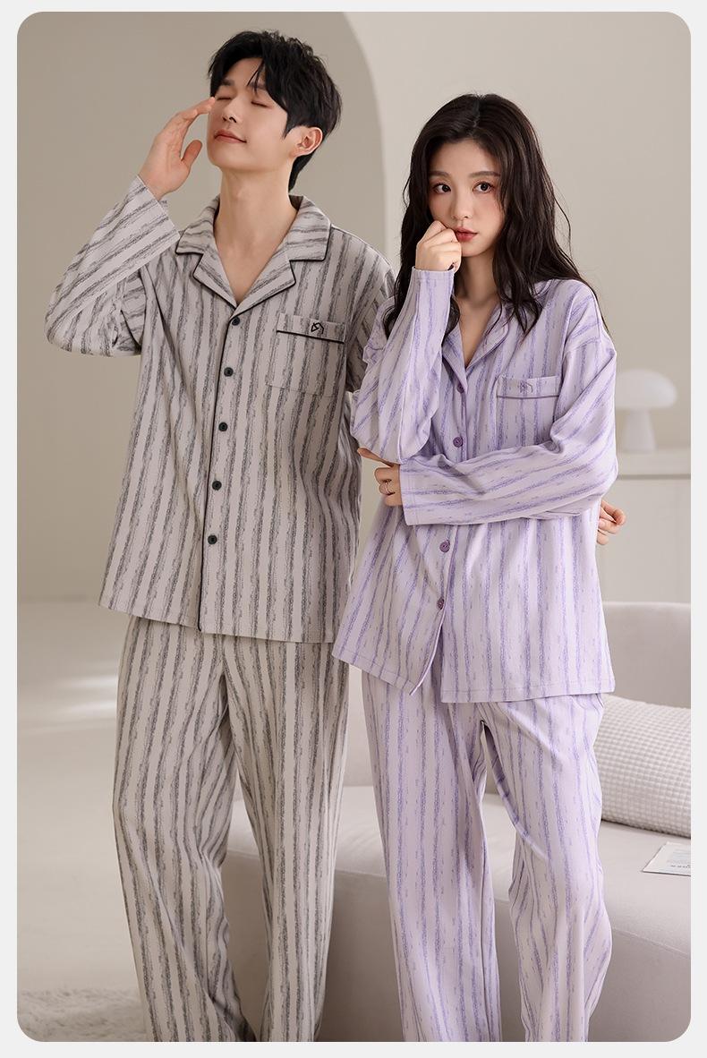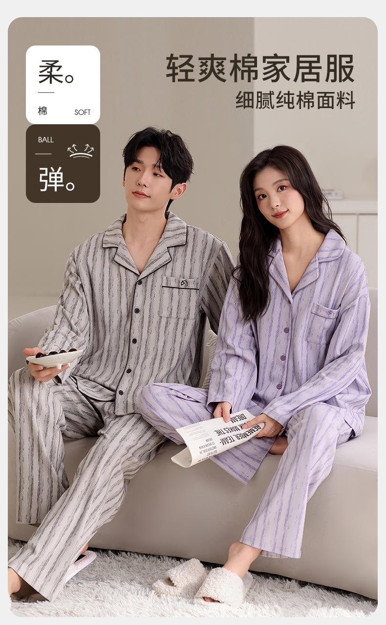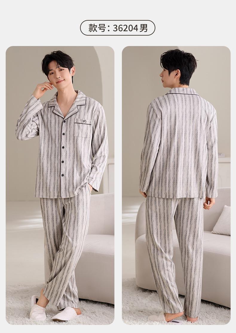 Pijama de Pareja de Estilo Nuevo de Otoño y Primavera al por Mayor Sólido para Mujer 6040 Algodón Cárdigan Solapa Manga Larga para Hombre Xiu
