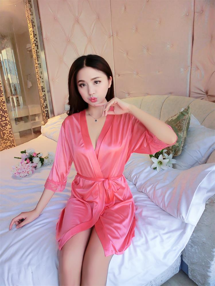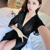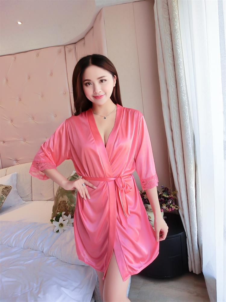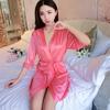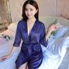 Pijama Sexy de Seda de Simulación de Verano para Mujer, Tentación de Manga Cinco Cuartos, Manga Corta, Seda de Hielo de Una Pieza, Color Sólido, Ropa para el Hogar, Ropa de Dormir, Bata, Multicolor