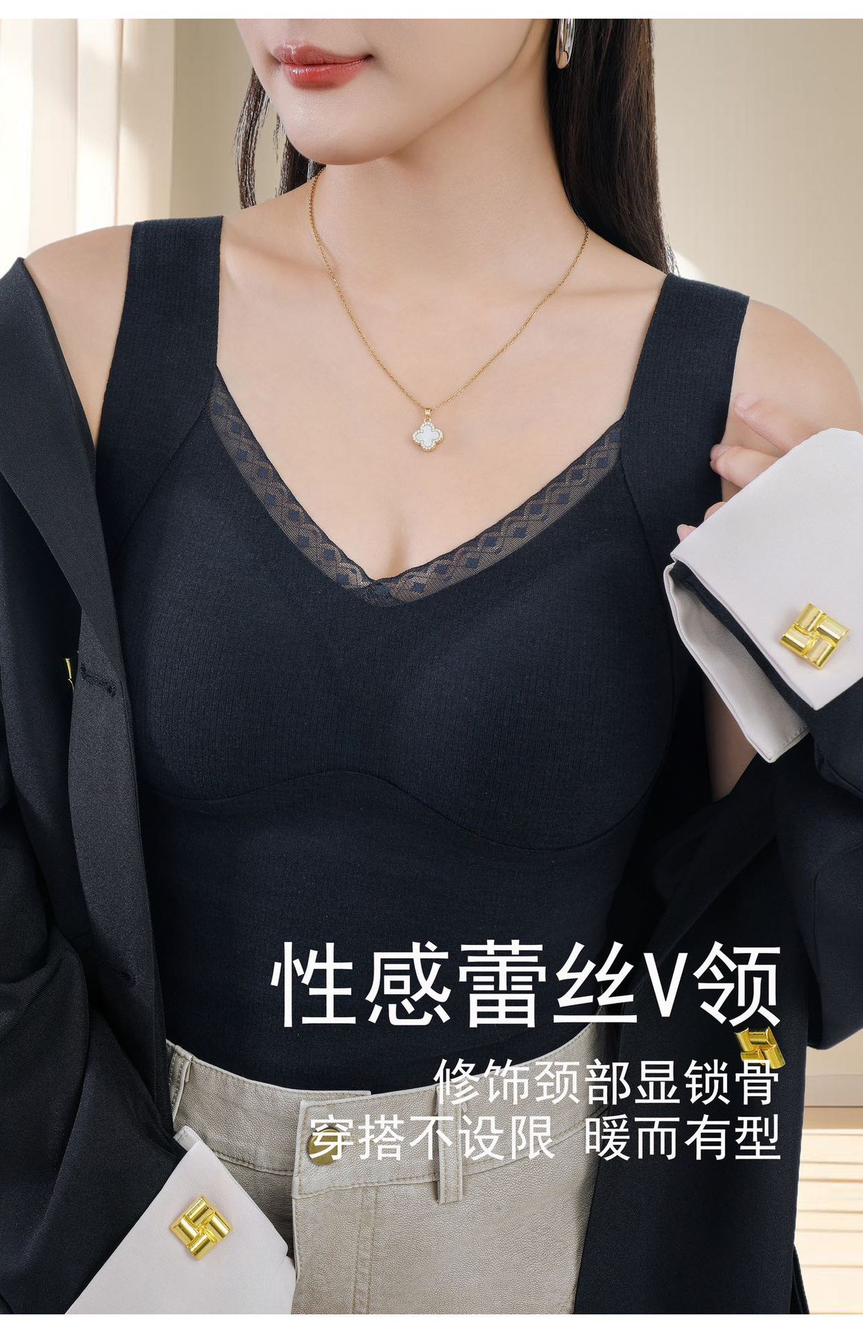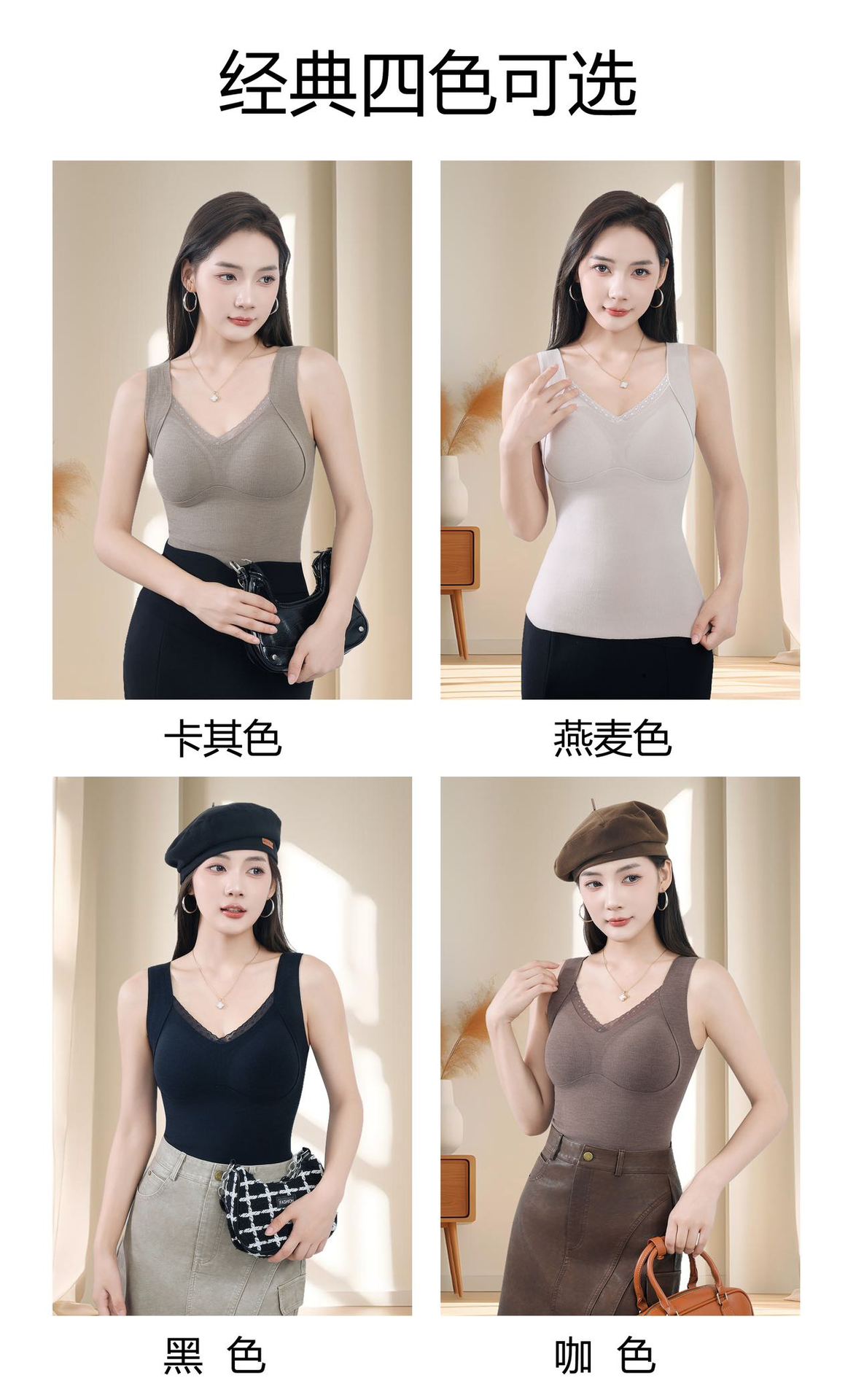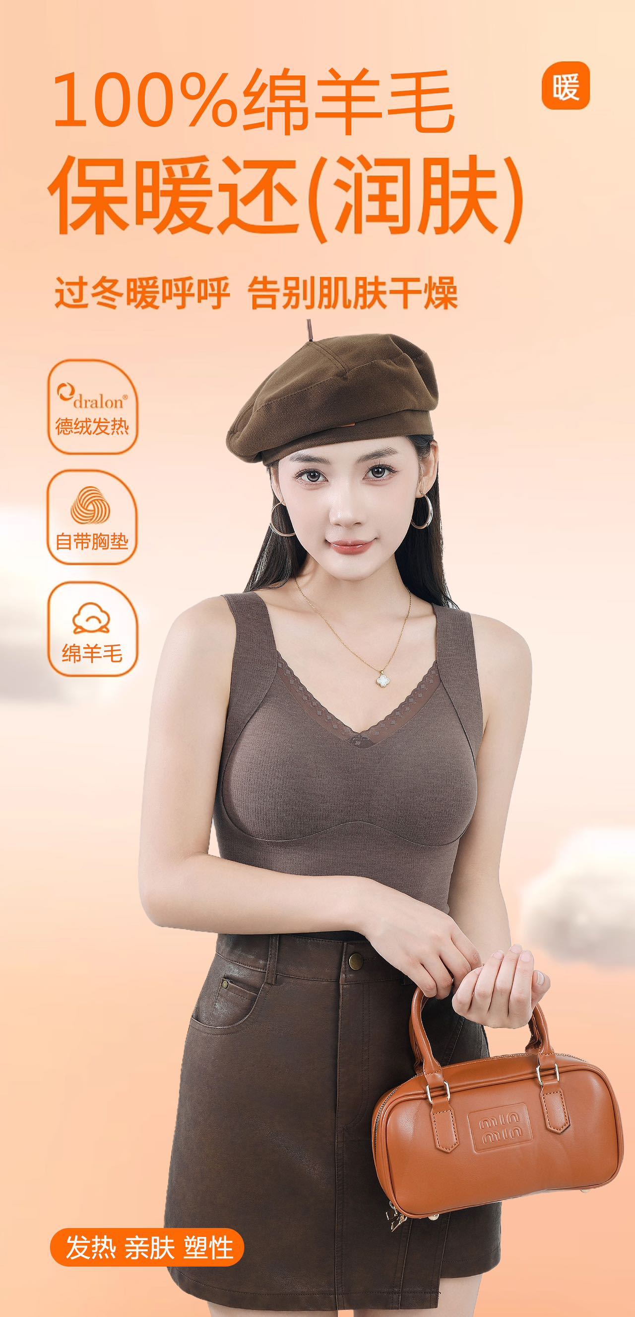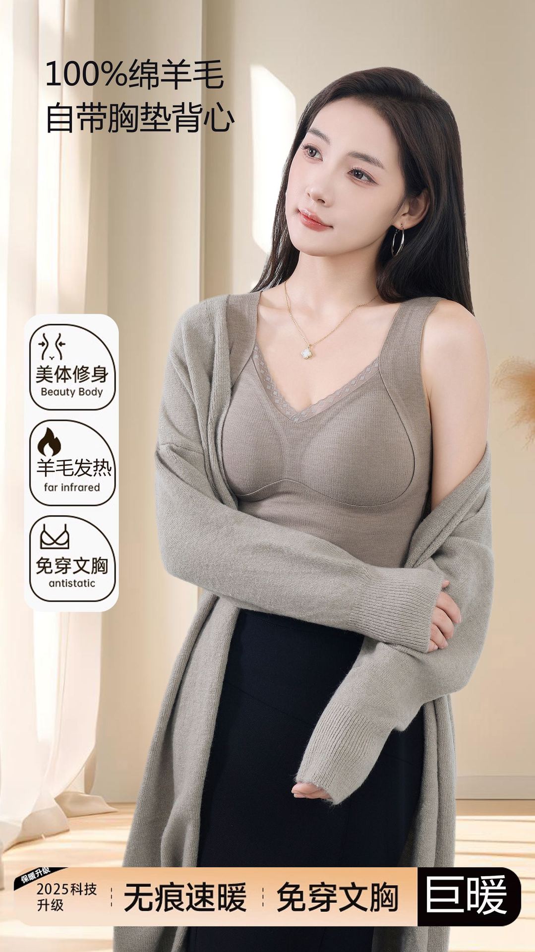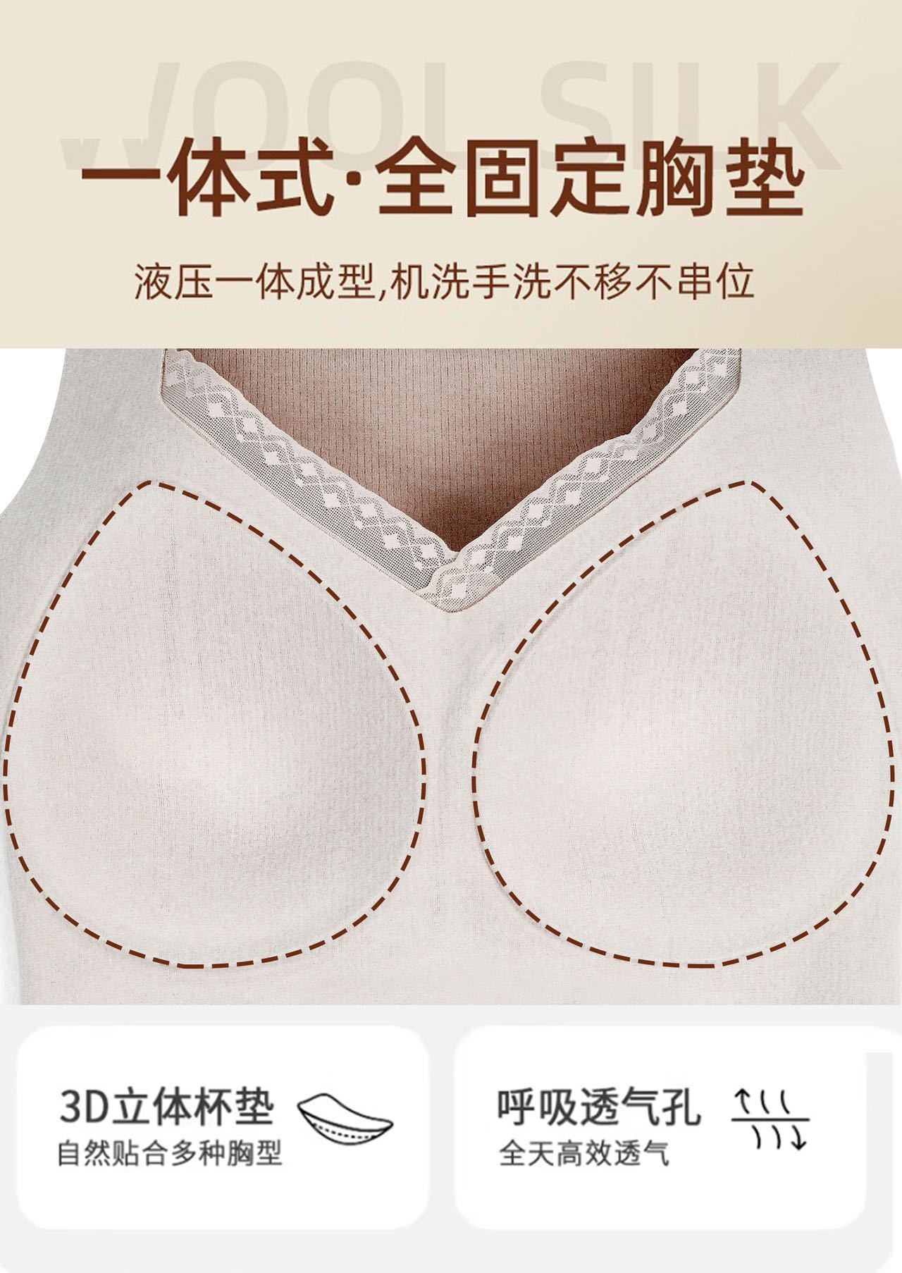 Chaleco Cálido de Lana Merino para Mujer con Sujetador con Almohadilla en el Pecho Todo en Uno Hidratante Lifting Ropa Interior Sin Costuras Capa Base Ropa Interior Otoño Invierno