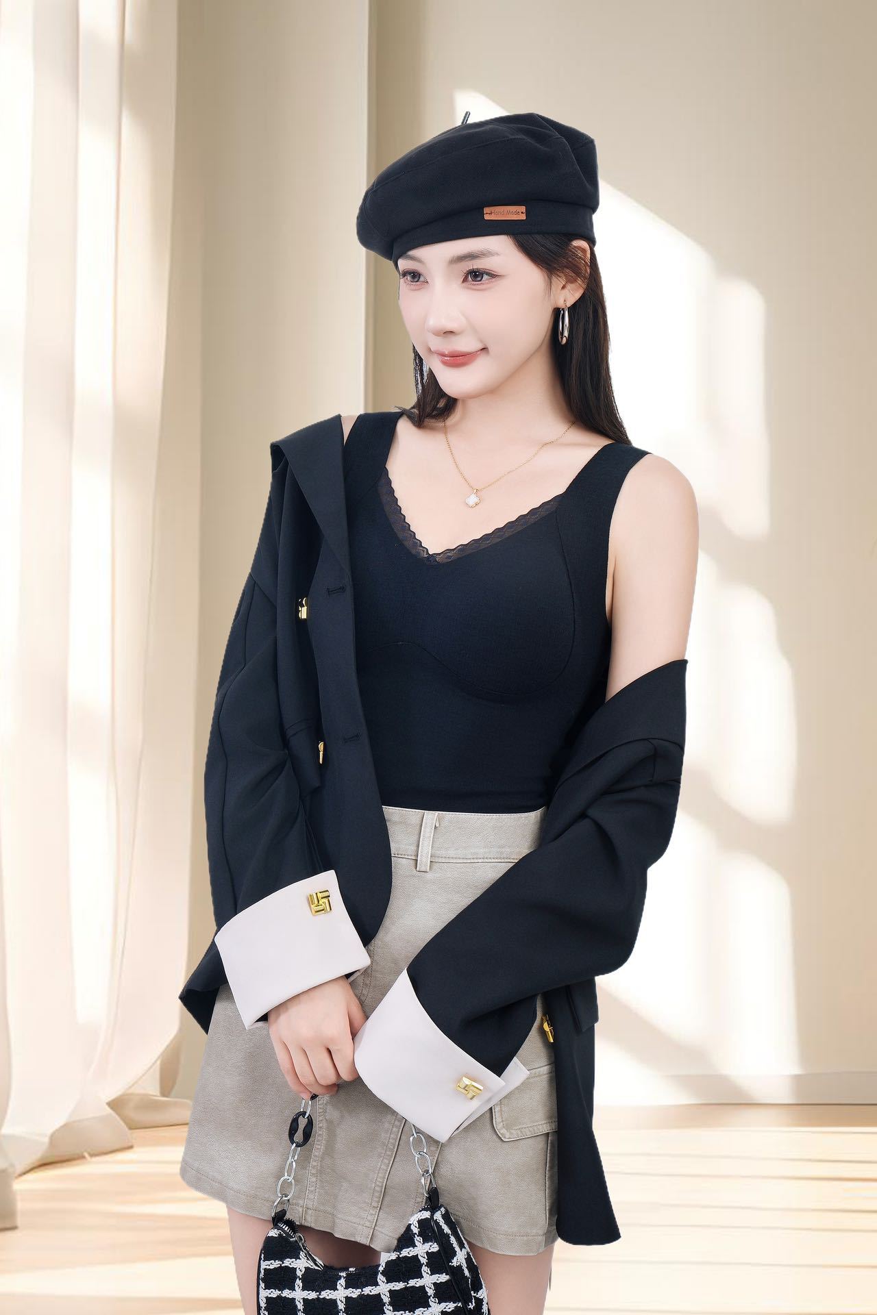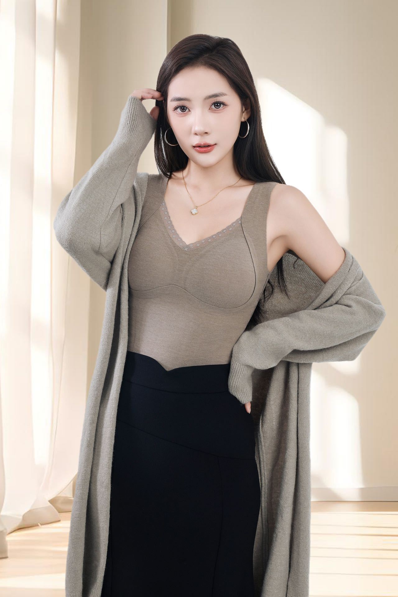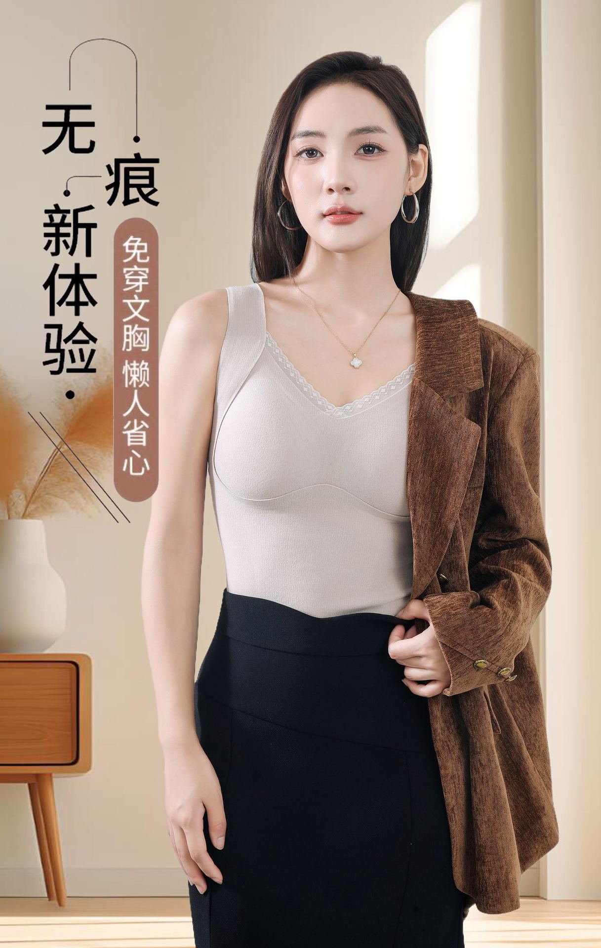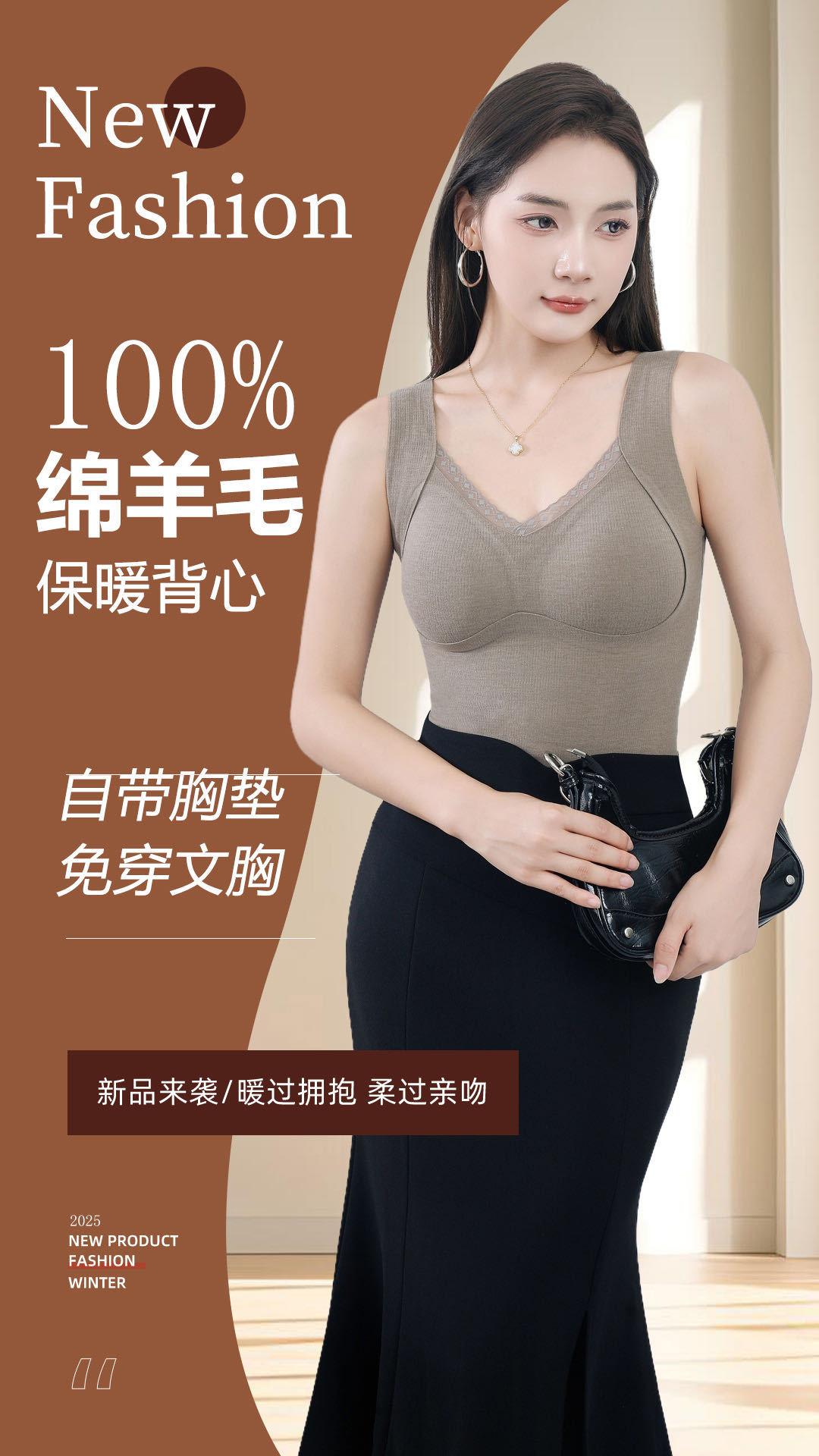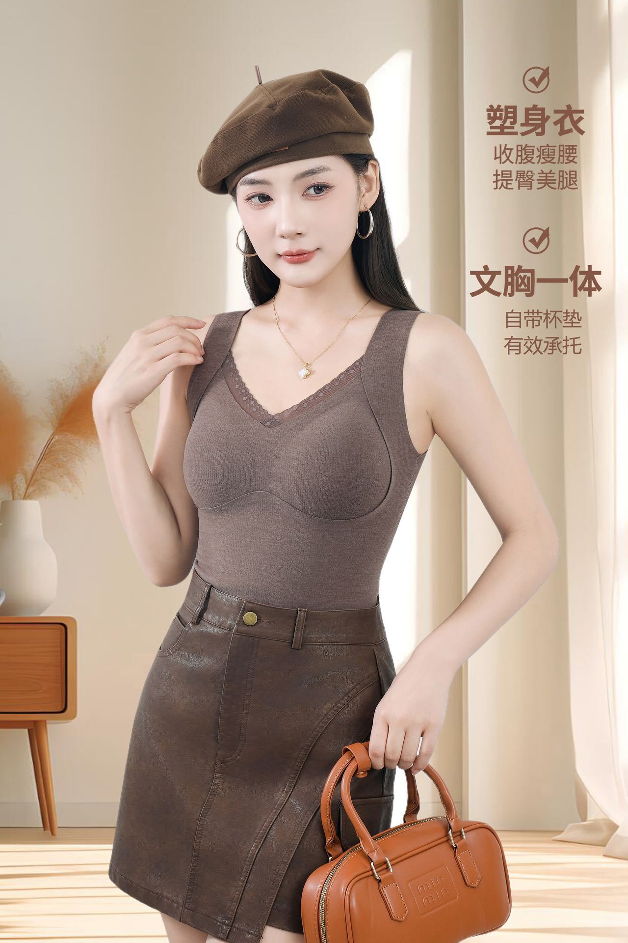Chaleco Cálido de Lana Merino para Mujer con Sujetador con Almohadilla en el Pecho Todo en Uno Hidratante Lifting Ropa Interior Sin Costuras Capa Base Ropa Interior Otoño Invierno