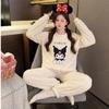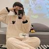 Pijama de Franela de Leopardo Coreano Lindo de Dibujos Animados para Talla Grande para Mujer Estilo Otoño e Invierno Set de Ropa para el Hogar Grueso y Cálido para Mujer a la Moda
