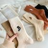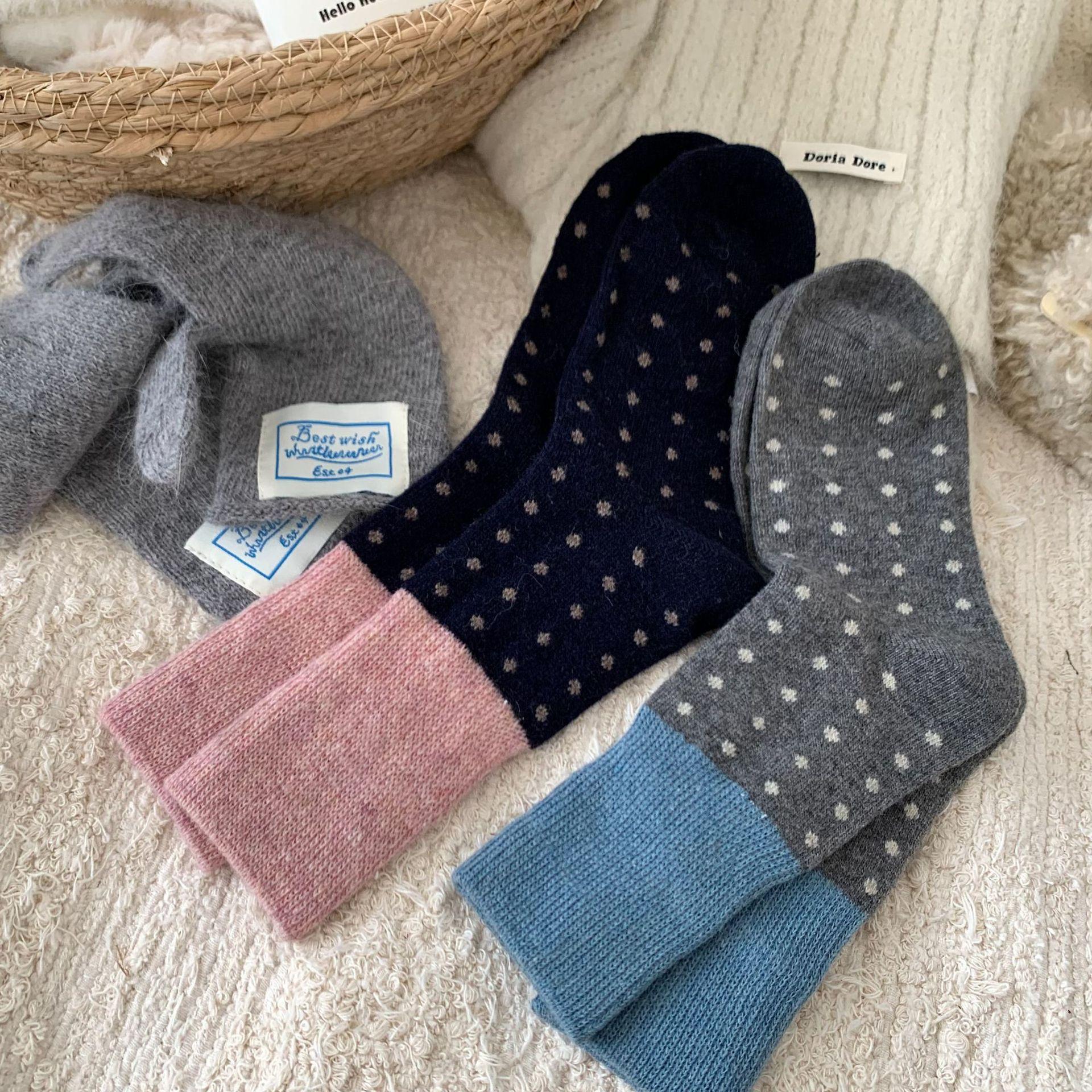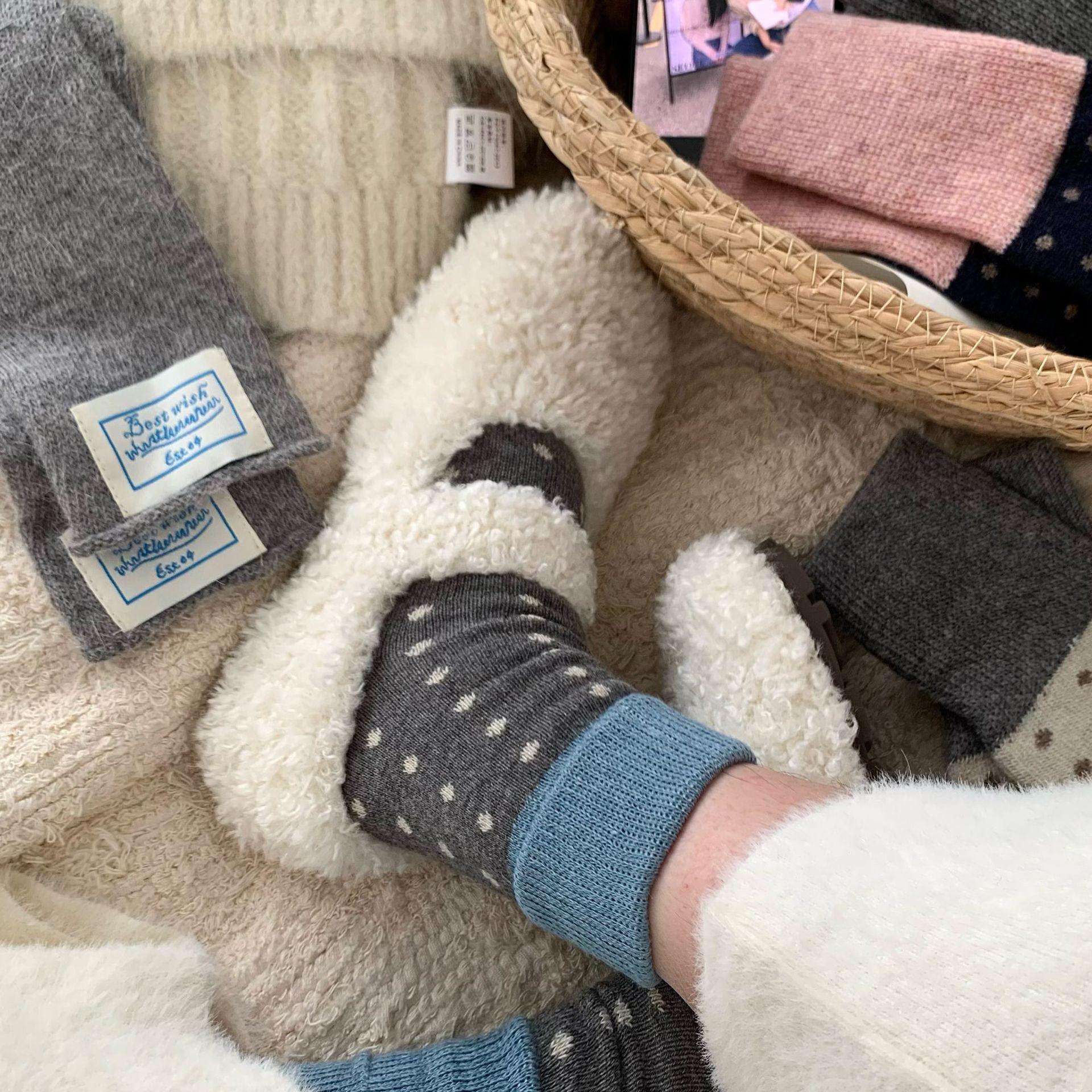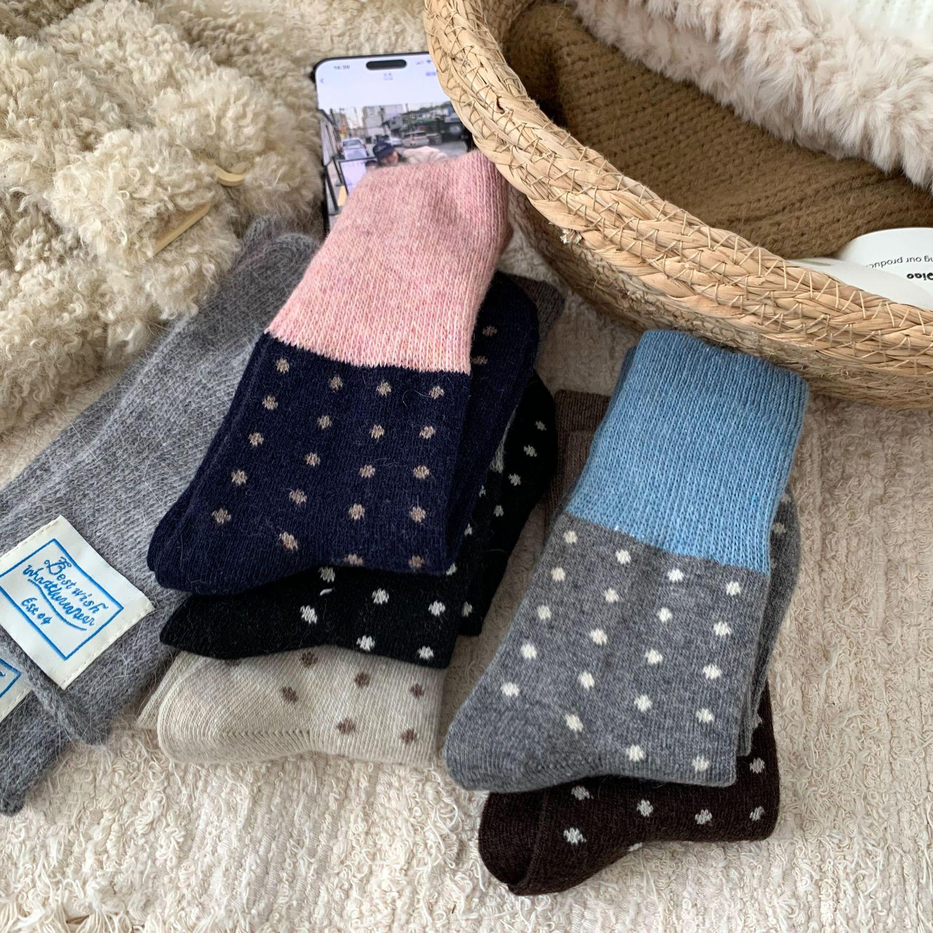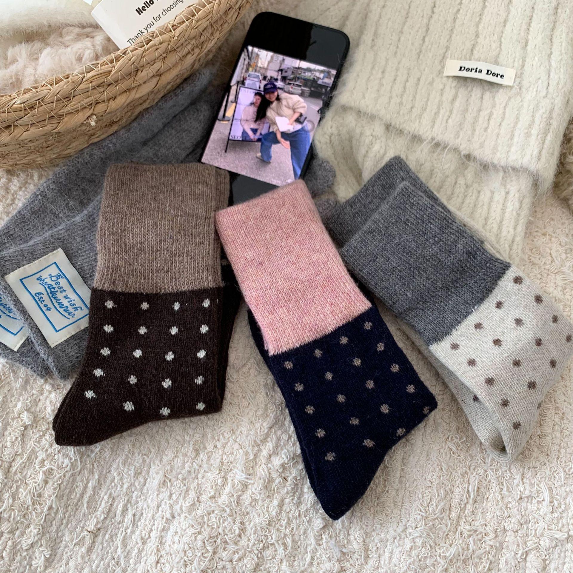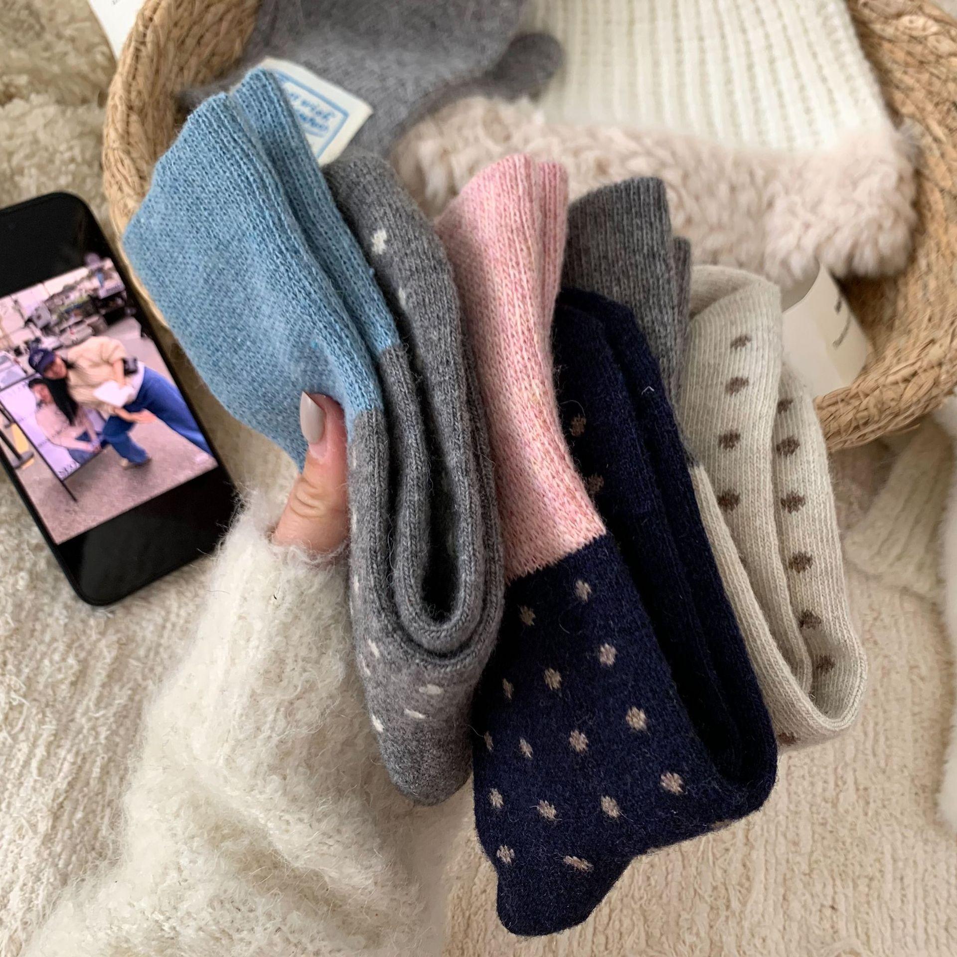Calcetines de Lana Vintage para Mujer Otoño e Invierno Calcetines Gruesos Cálidos de Media Caña Ins Modernos Casuales Lunares Polares Marrón Maillard Medias