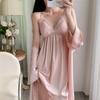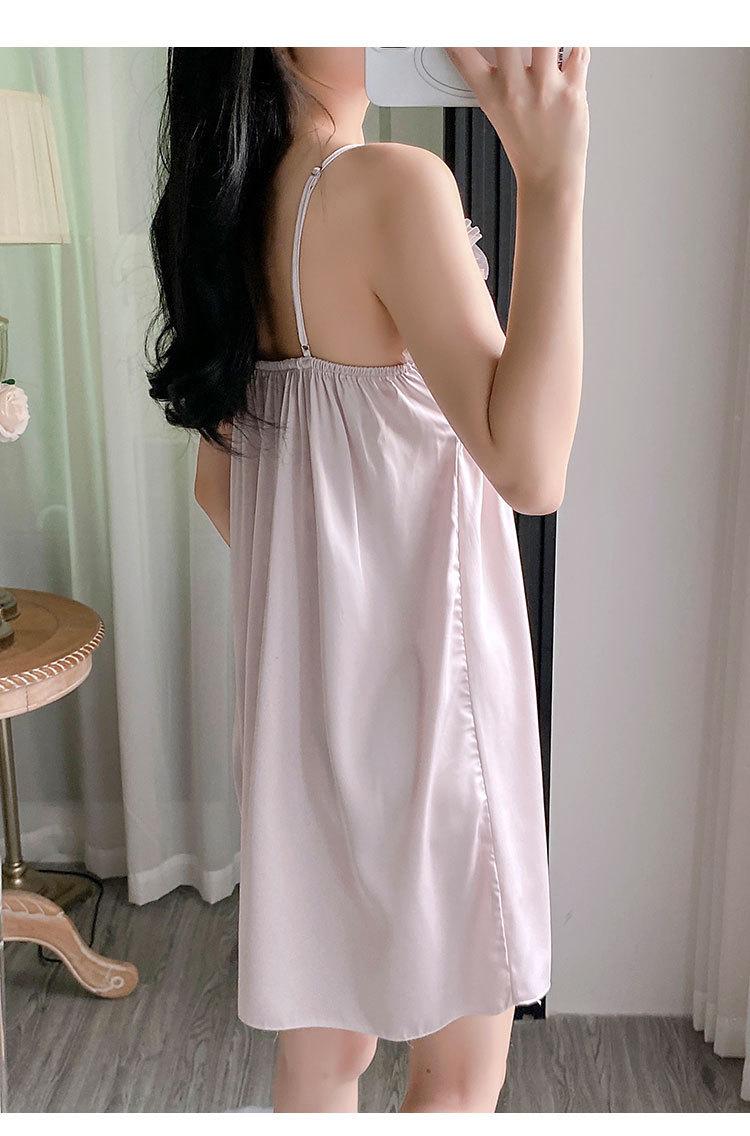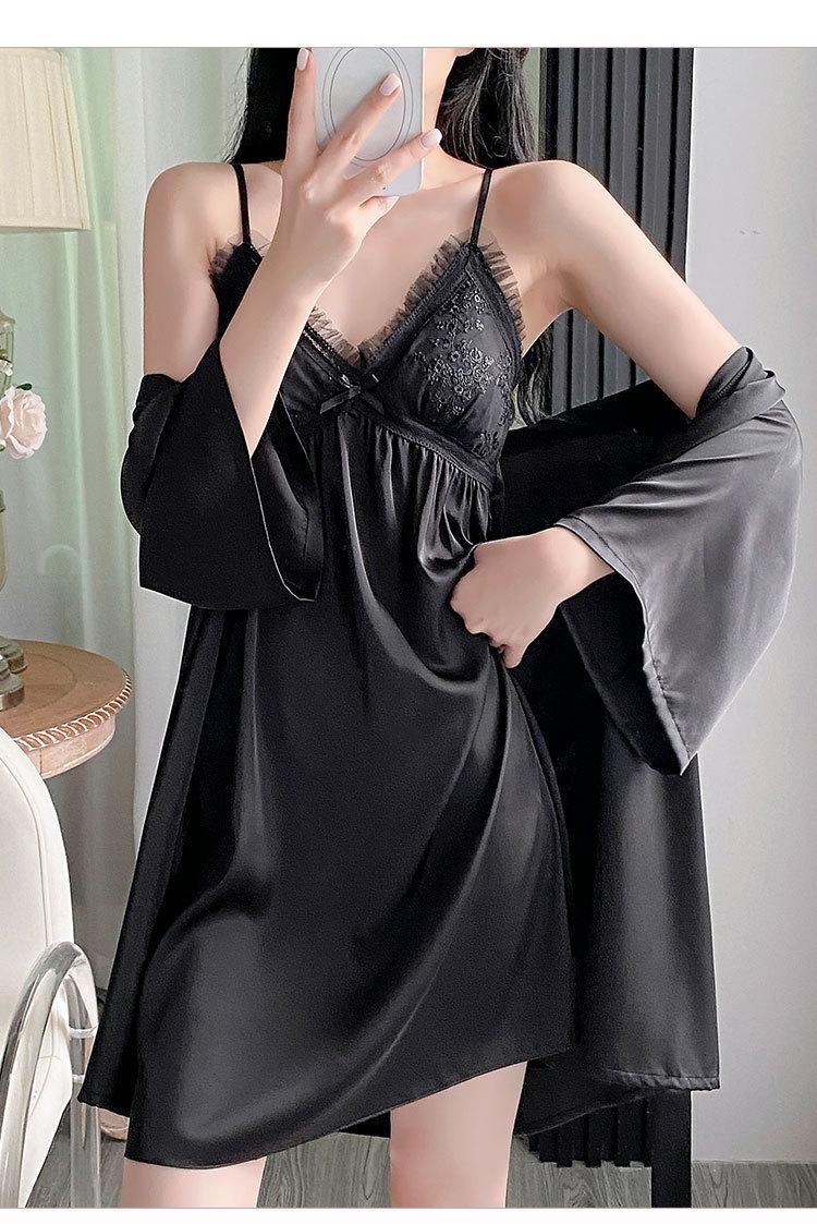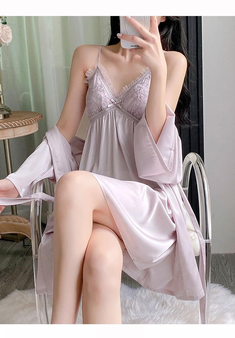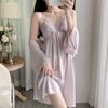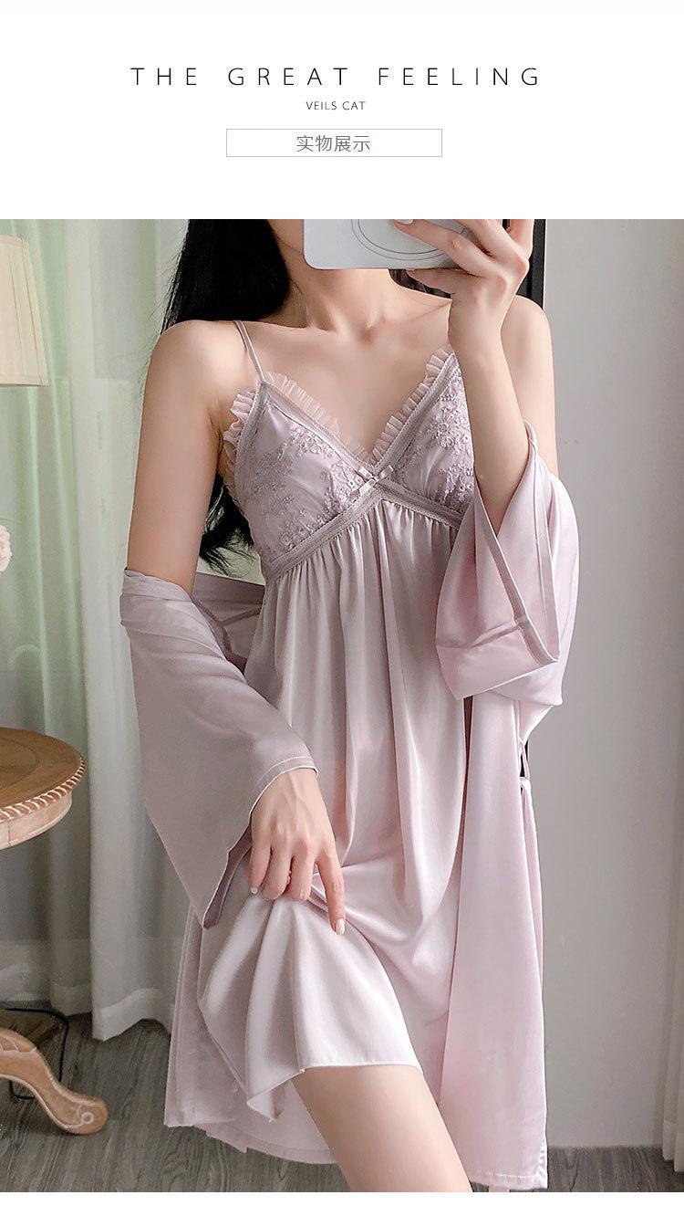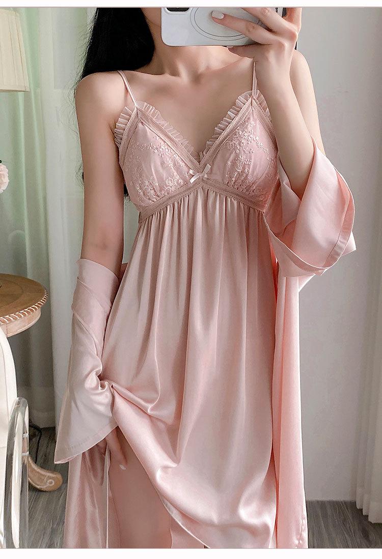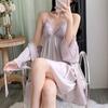 Pijama Sexy de Verano para Mujer Seda de Hielo Primavera Otoño 2025 Nuevo Camisola de Deseo Puro Vestido de Noche con Almohadilla en el Pecho Bata para Estar en Casa