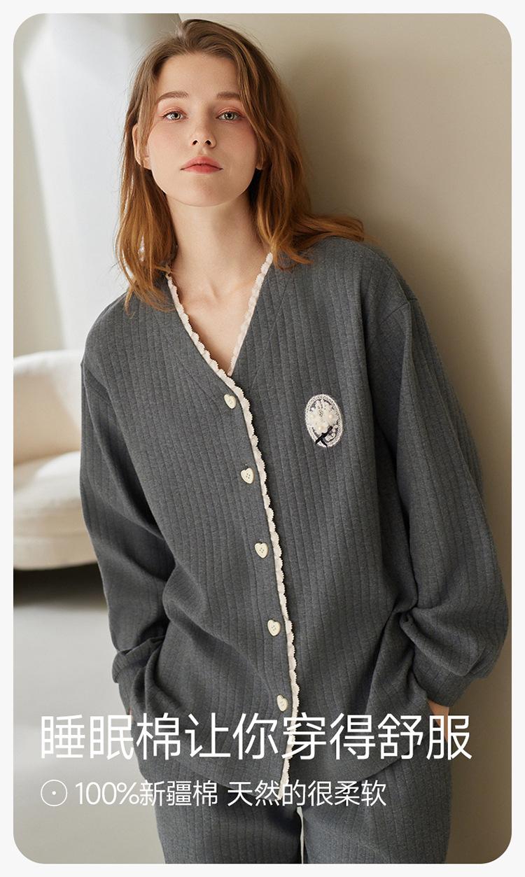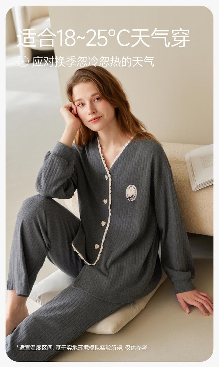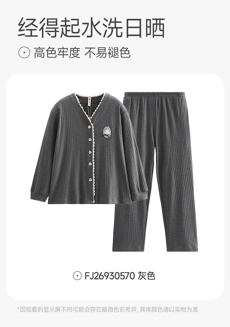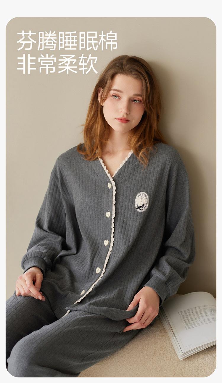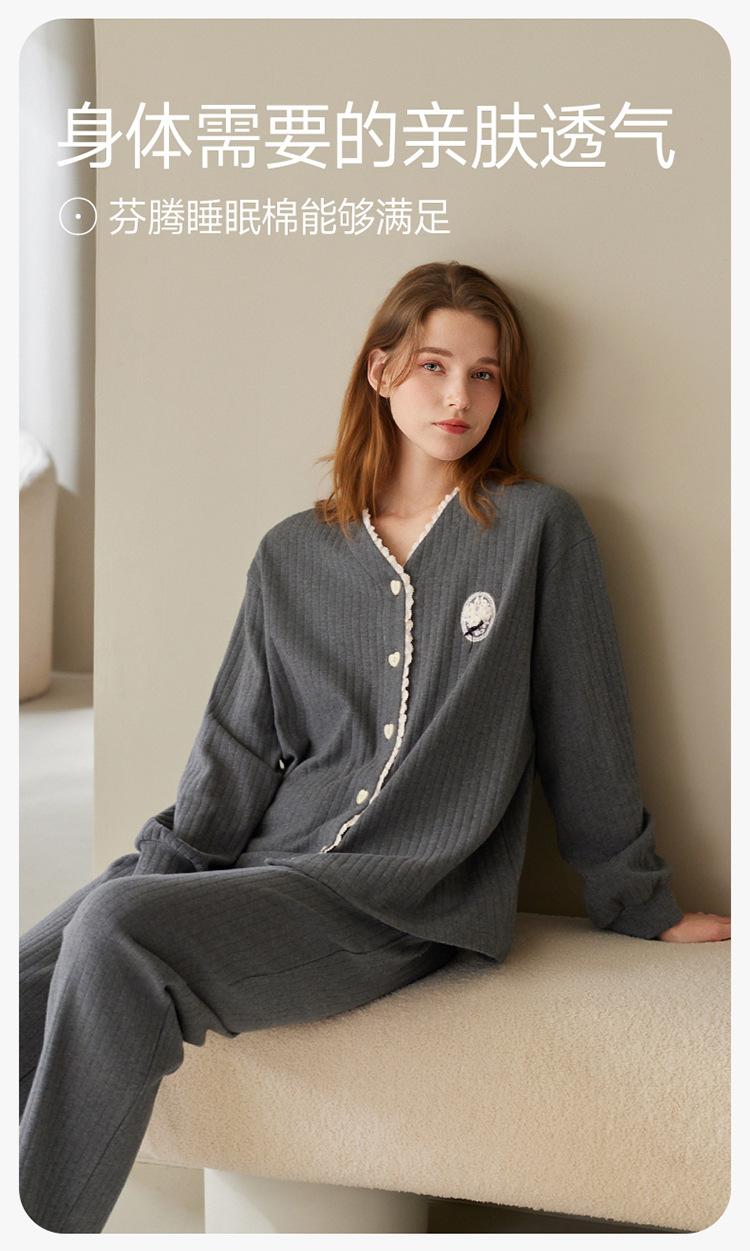 Fenteng [Algodón para Dormir Antiestático] Pijama de Mujer Primavera y Otoño Algodón Puro Manga Larga Antibacteriano Casual Ropa de Exterior Ropa para el Hogar