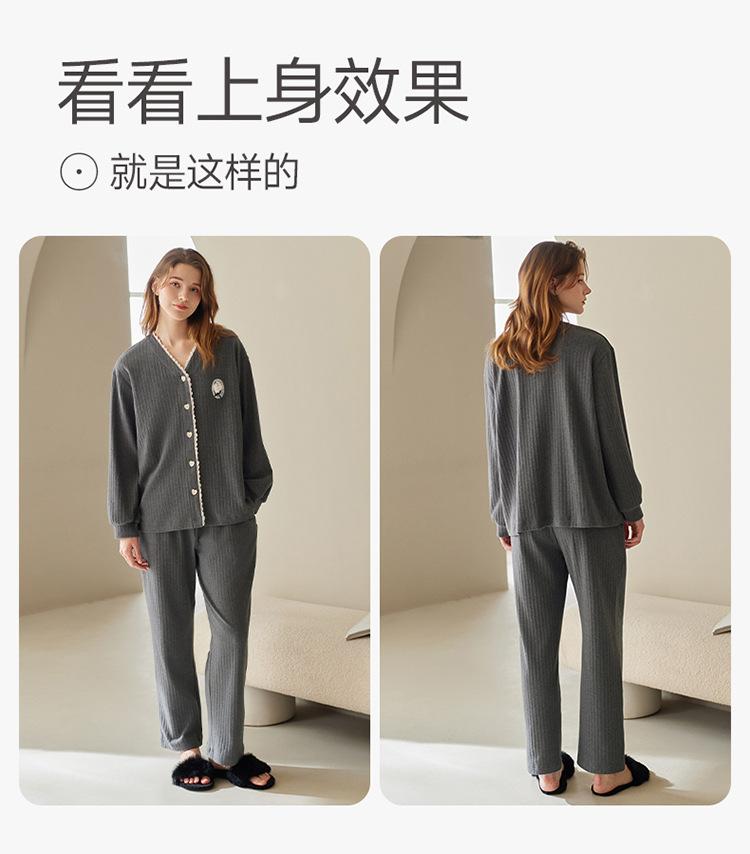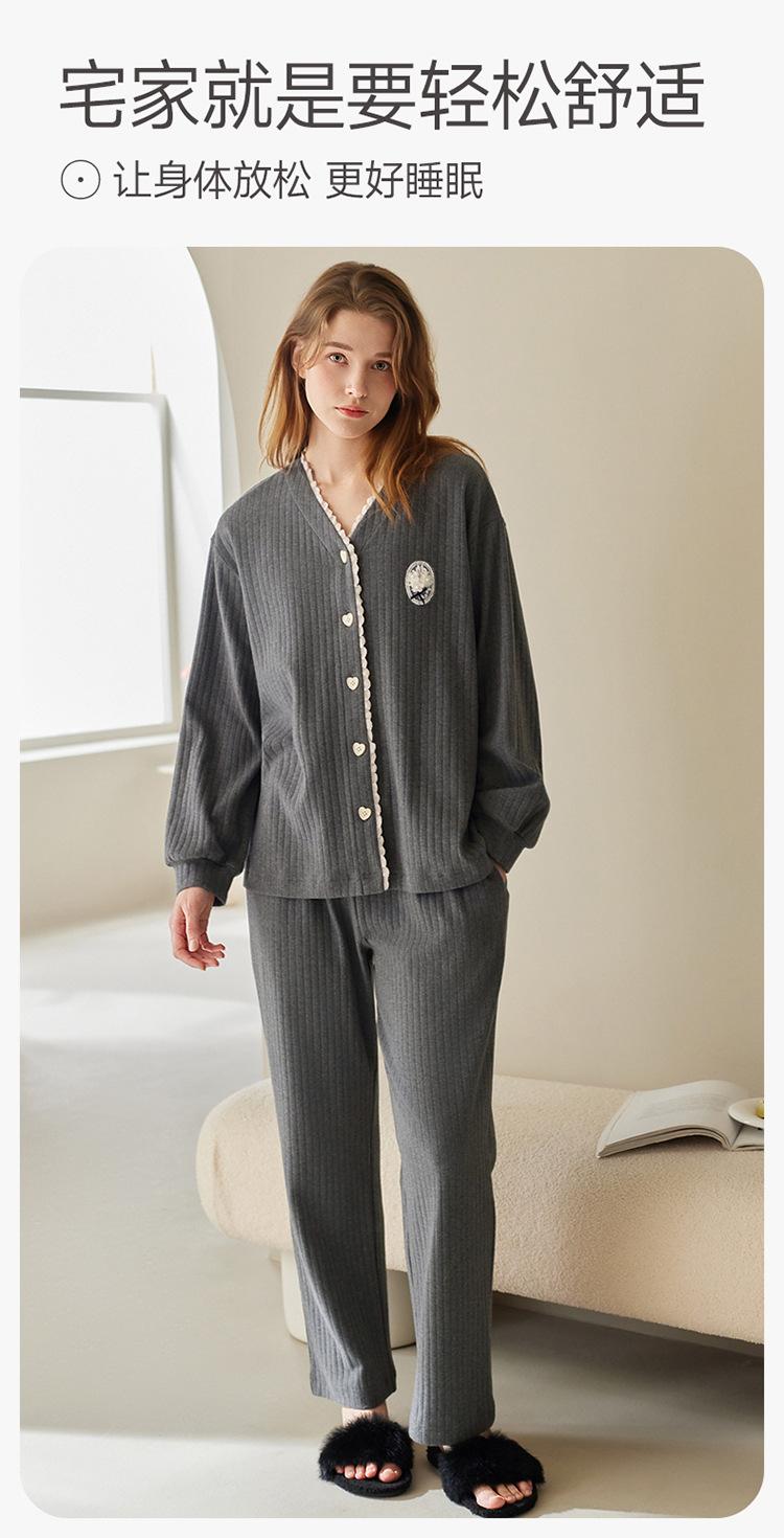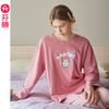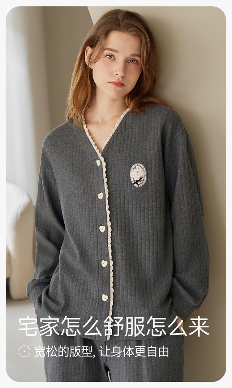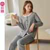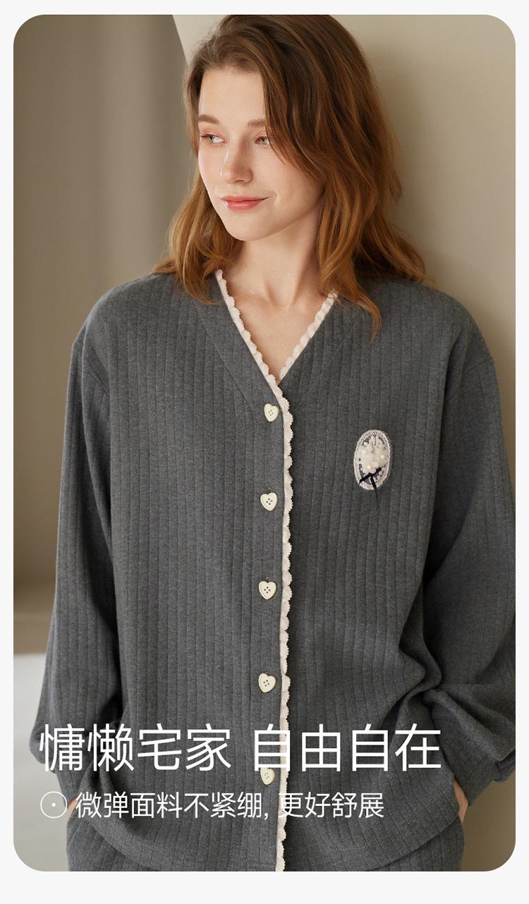 Fenteng [Algodón para Dormir Antiestático] Pijama de Mujer Primavera y Otoño Algodón Puro Manga Larga Antibacteriano Casual Ropa de Exterior Ropa para el Hogar