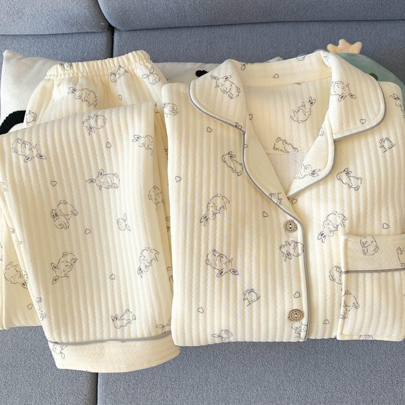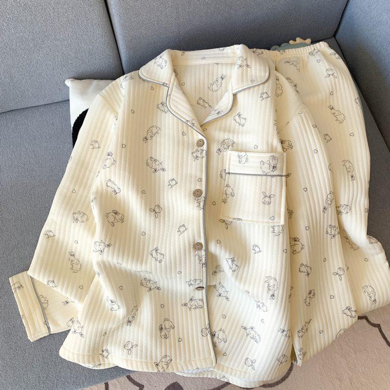 Fábrica en stock Pijama Sándwich para Mujer Otoño e Invierno Engrosado Cálido Lindo Lindo Conejo Estudiante Ropa para el Hogar Traje de Dos Piezas
