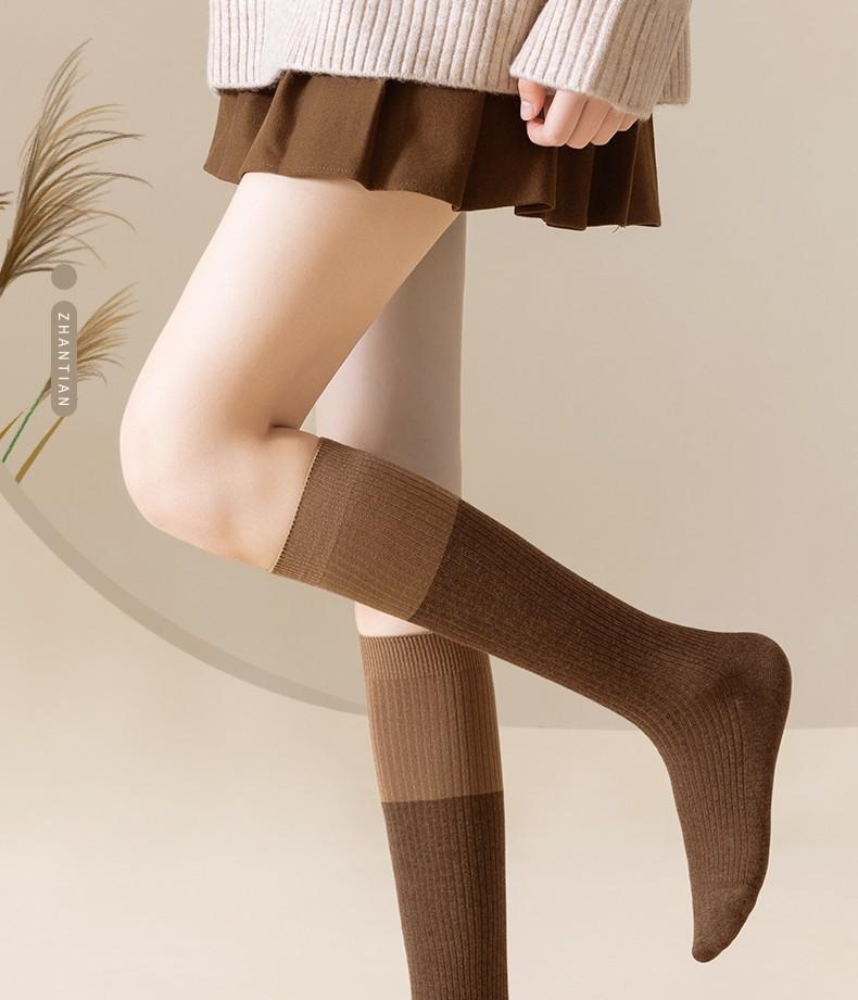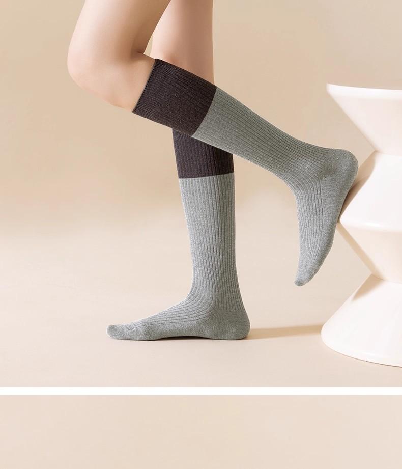 Calcetines de mujer calcetines hasta la pantorrilla temporada de primavera y otoño adelgazantes de tubo medio calcetines largos jk de color sólido tubo largo otoño versátiles adelgazantes para piernas calcetines de algodón con bloques de color