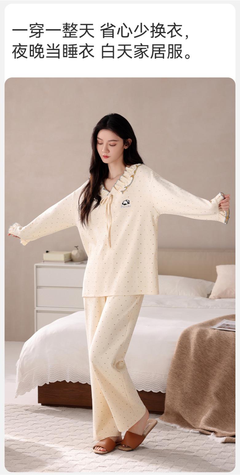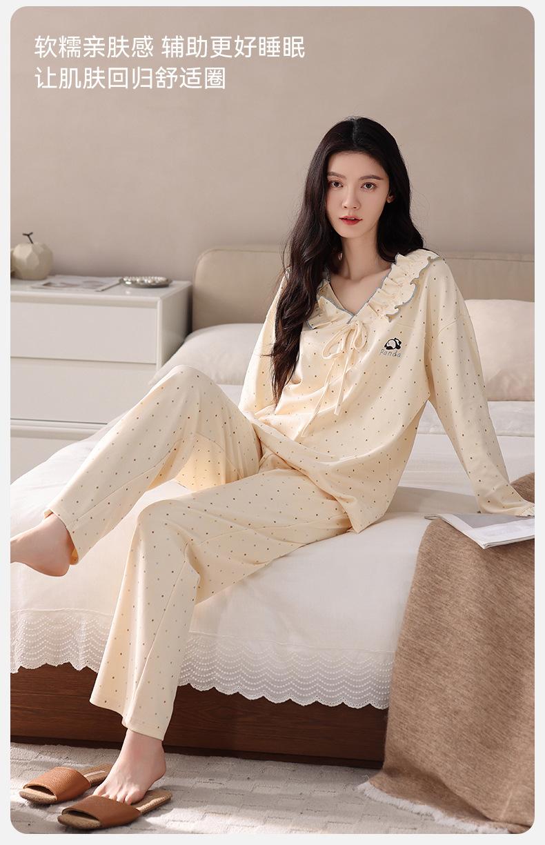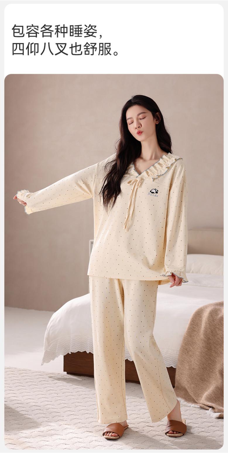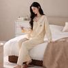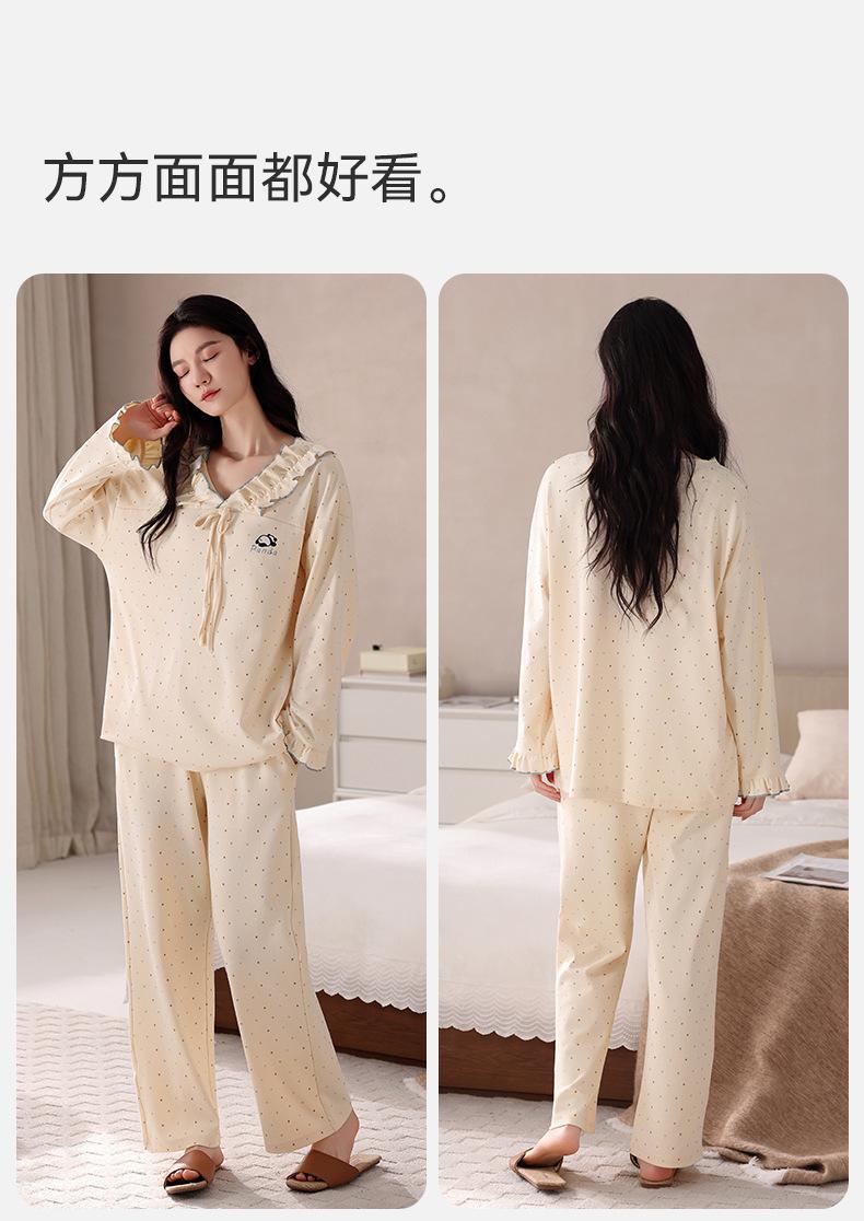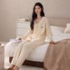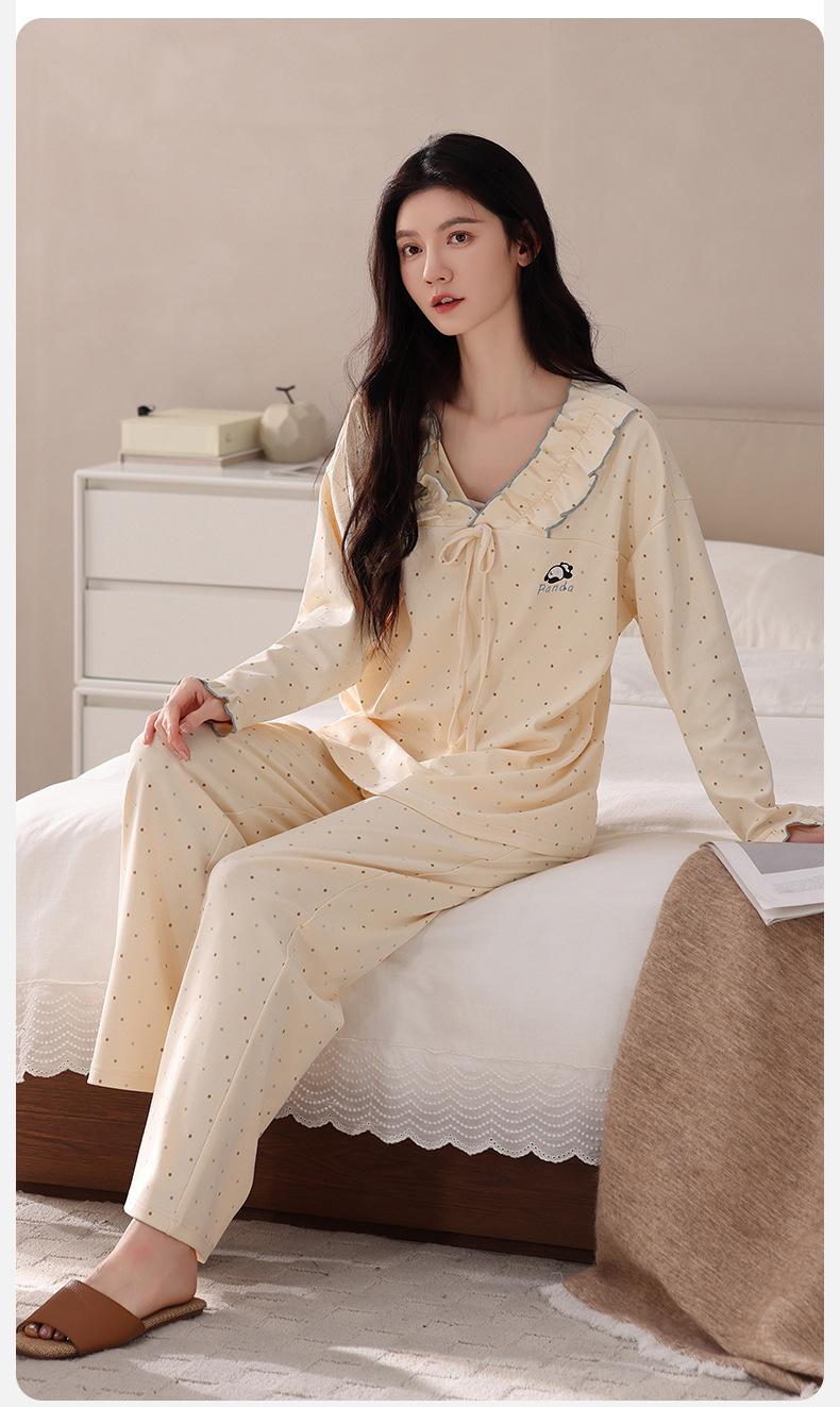 Pijama para Mujer Temporada de Primavera y Otoño Algodón Puro Manga Larga Pantalón Largo Conjunto Cuello Redondo Otoño e Invierno Holgado Casual Algodón con Lycra Ropa para el Hogar
