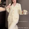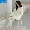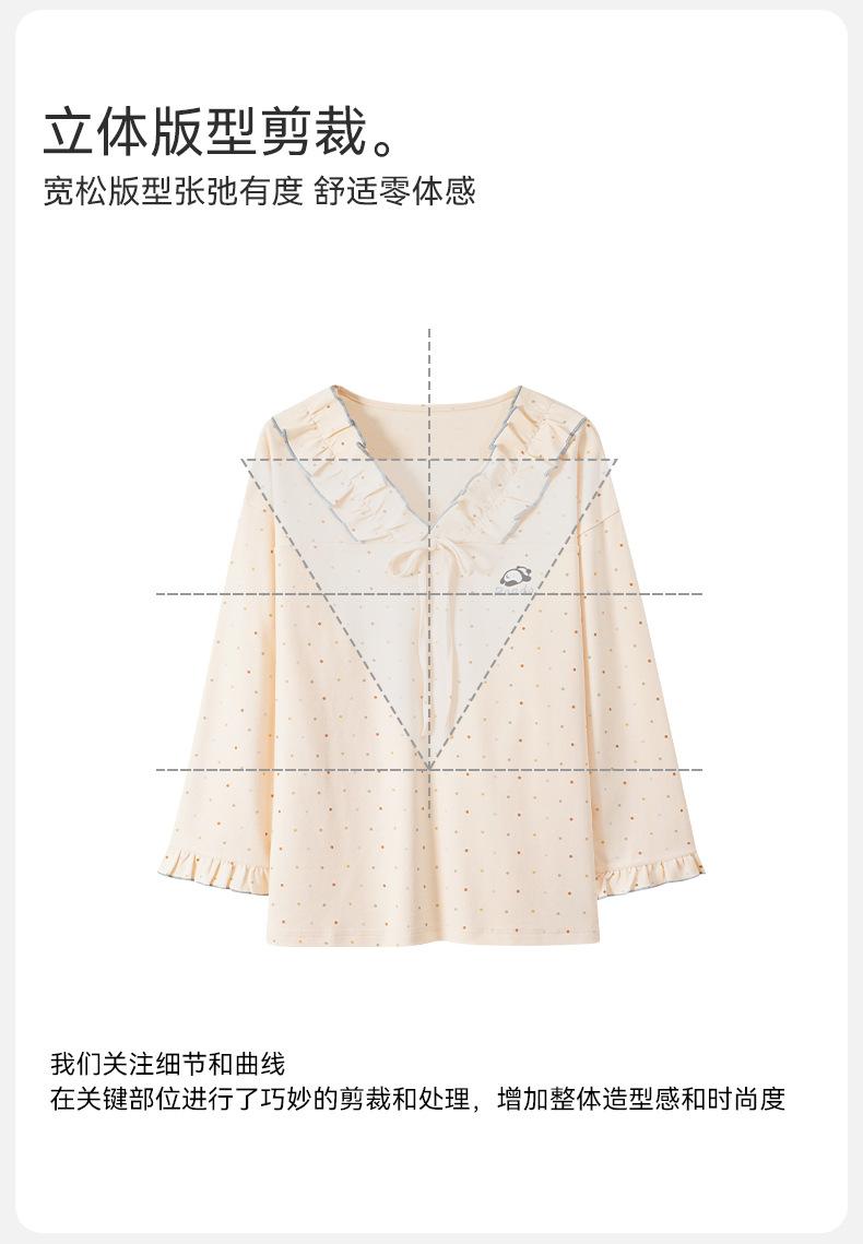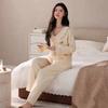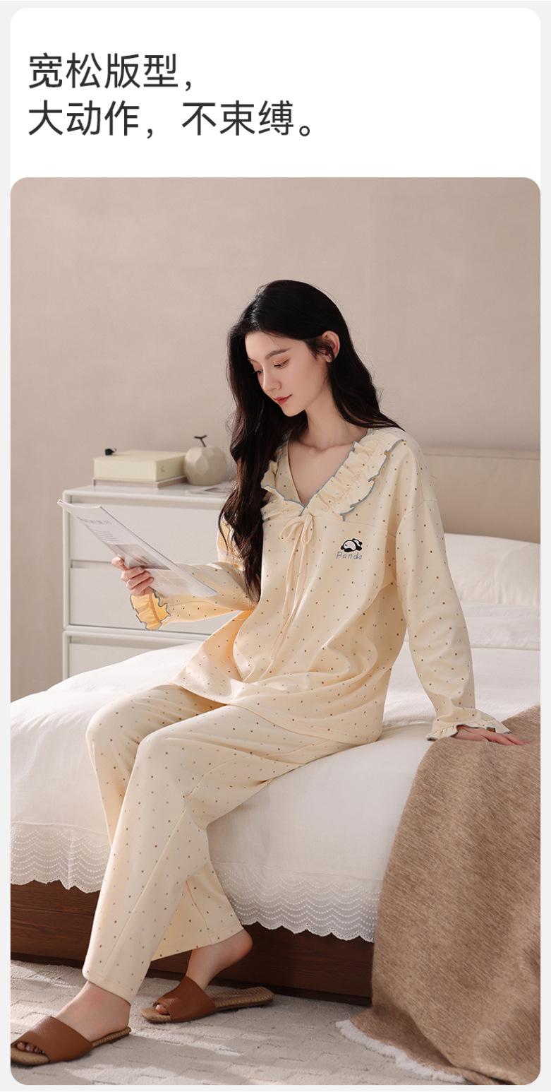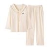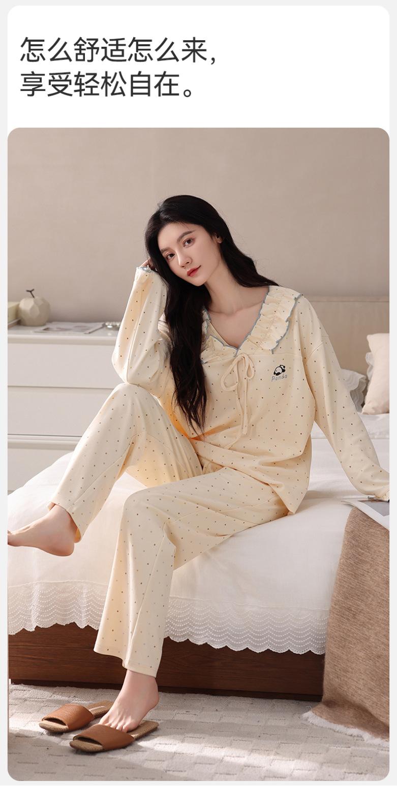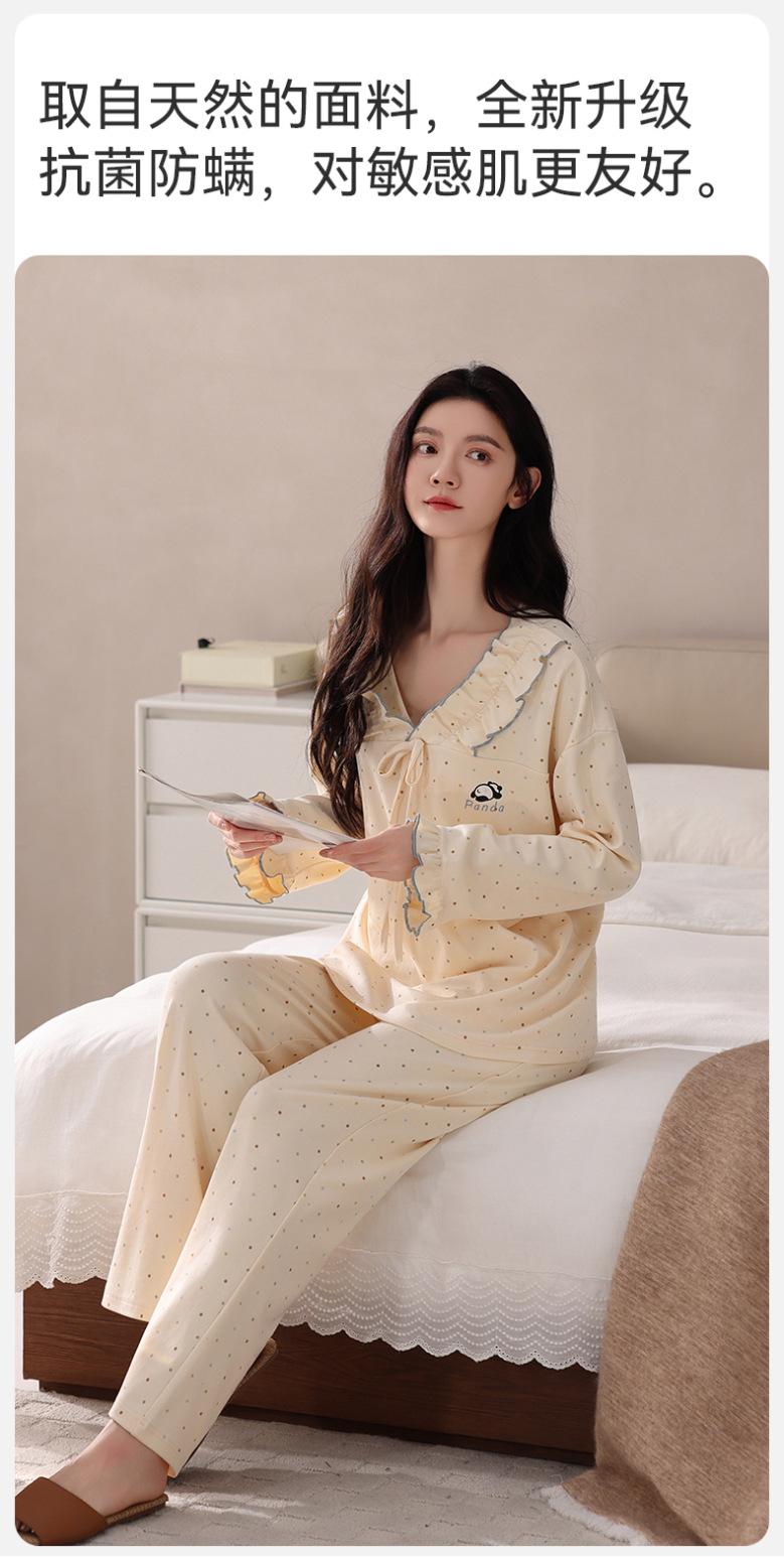 Pijama para Mujer Temporada de Primavera y Otoño Algodón Puro Manga Larga Pantalón Largo Conjunto Cuello Redondo Otoño e Invierno Holgado Casual Algodón con Lycra Ropa para el Hogar