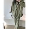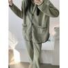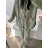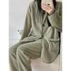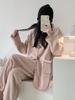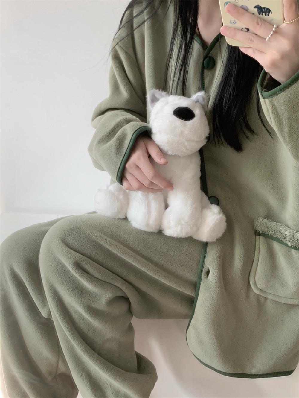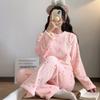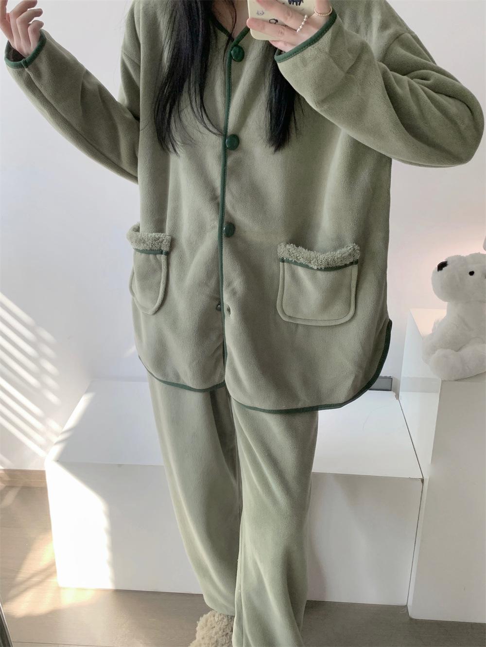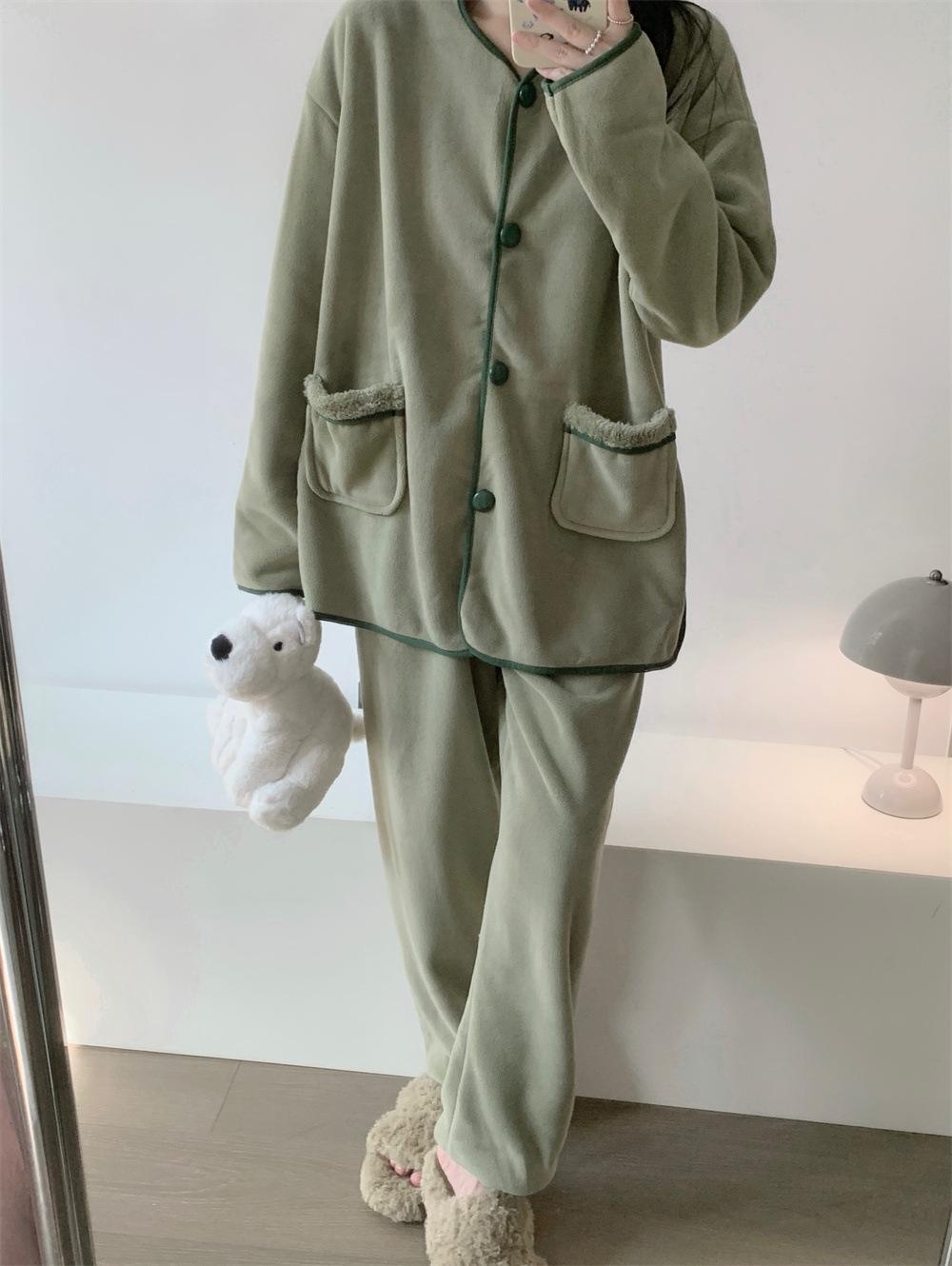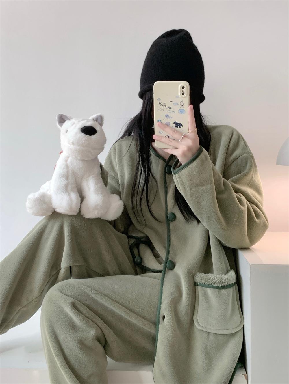 Pijama de Forro Polar Coral de Color Sólido de Alta Gama para Niña de Estilo Coreano para Otoño/Invierno, Conjunto de Ropa de Casa Cálido Grueso con Terciopelo Adicional para Mujer