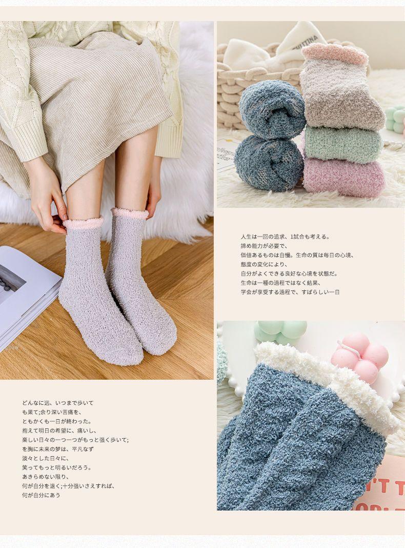 Calcetines de forro polar coral para mujer otoño e invierno más terciopelo más calcetines gruesos hasta la mitad de la pantorrilla cálidos para el hogar para dormir calcetines de piso calcetines largos calcetines postparto