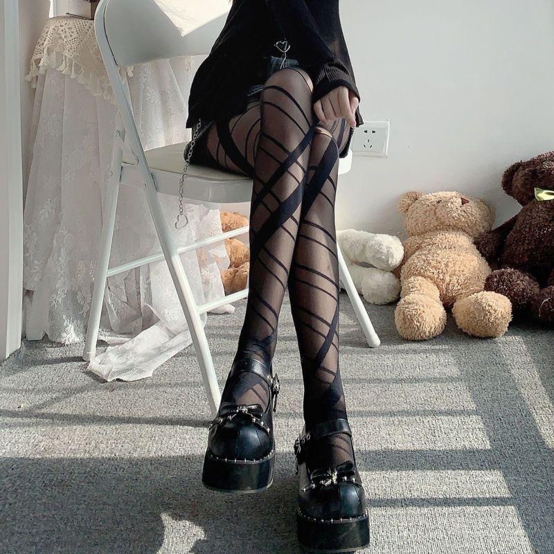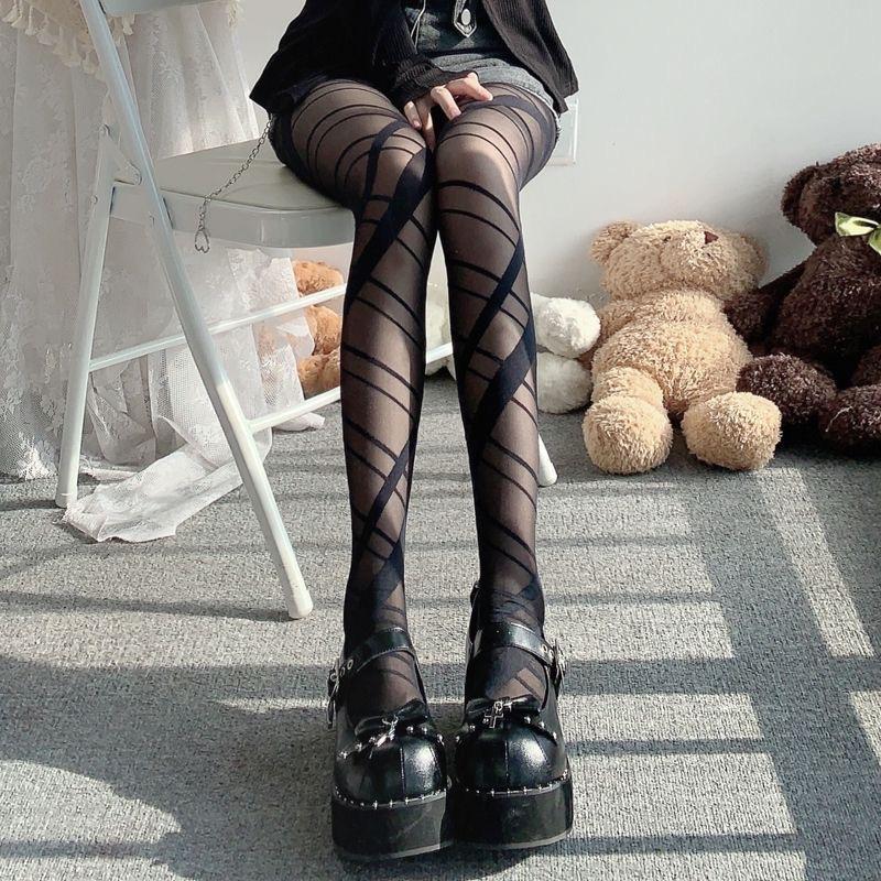 Selección estricta de medias de seda negra con línea cruzada para mujer, delgadas, sexys, de chica guapa, estilo puro, piernas hermosas, pantimedias irregulares para usar debajo