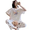 Pijama de verano para mujer estilo coreano cuello redondo manga corta pantalones holgados estudiante talla grande traje de dos piezas ropa exterior ropa de casa