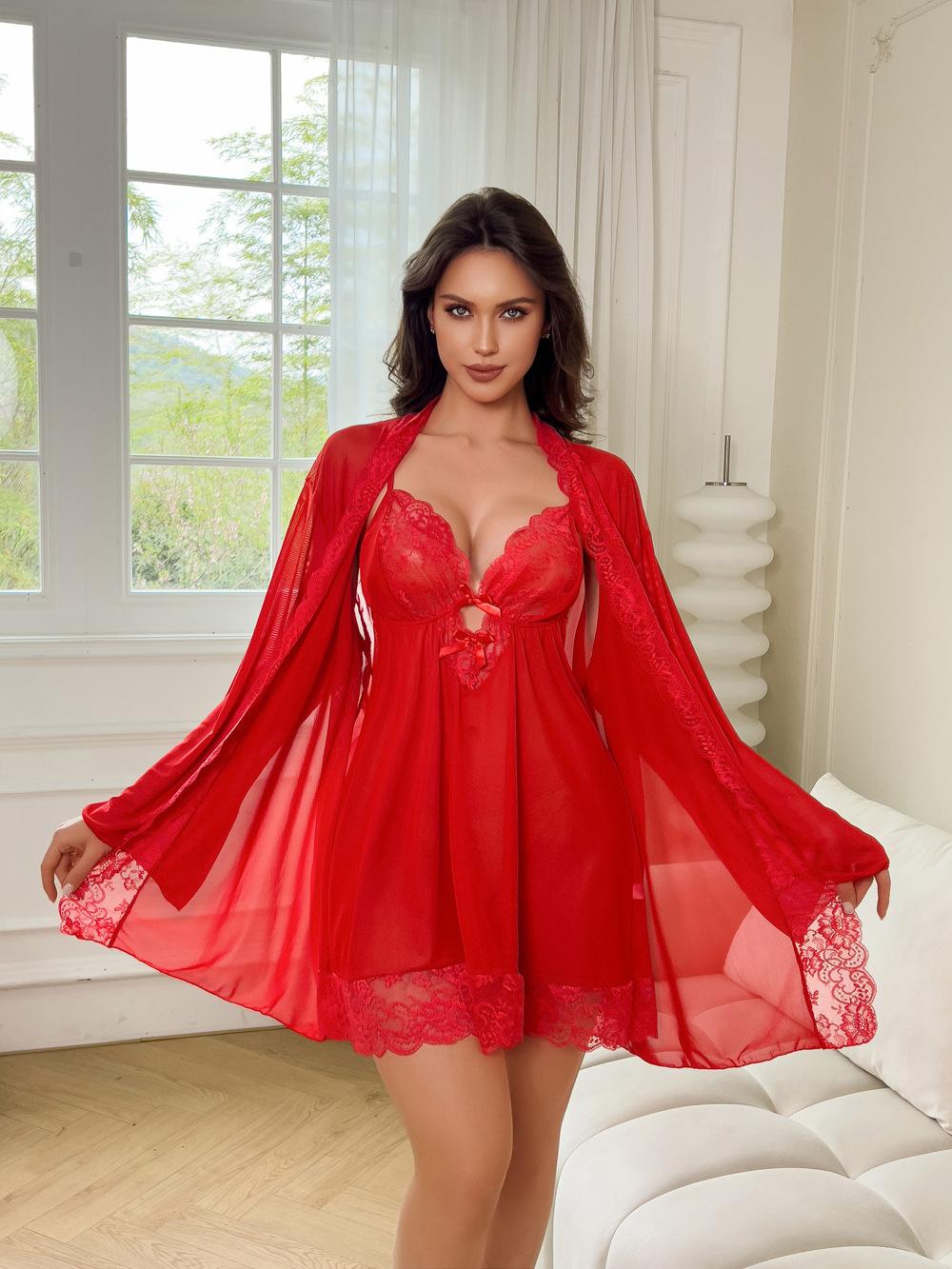 Ropa interior sexy nueva de comercio exterior europea y americana sexy encaje malla lazo falda pijama conjunto divertido