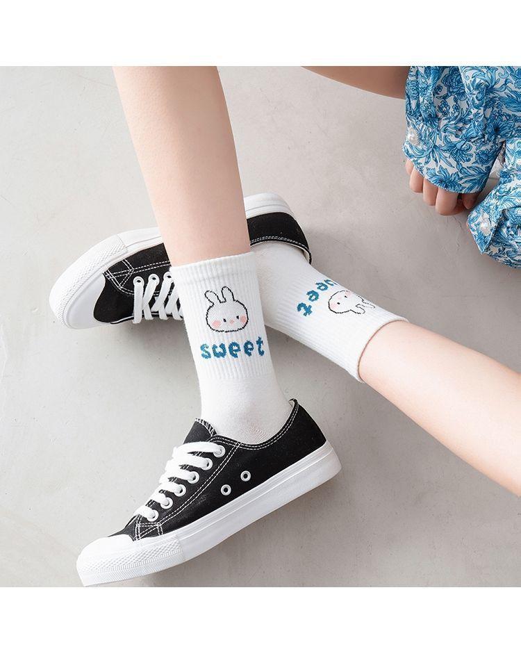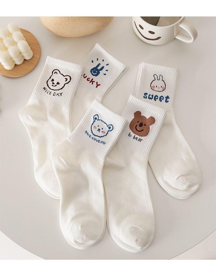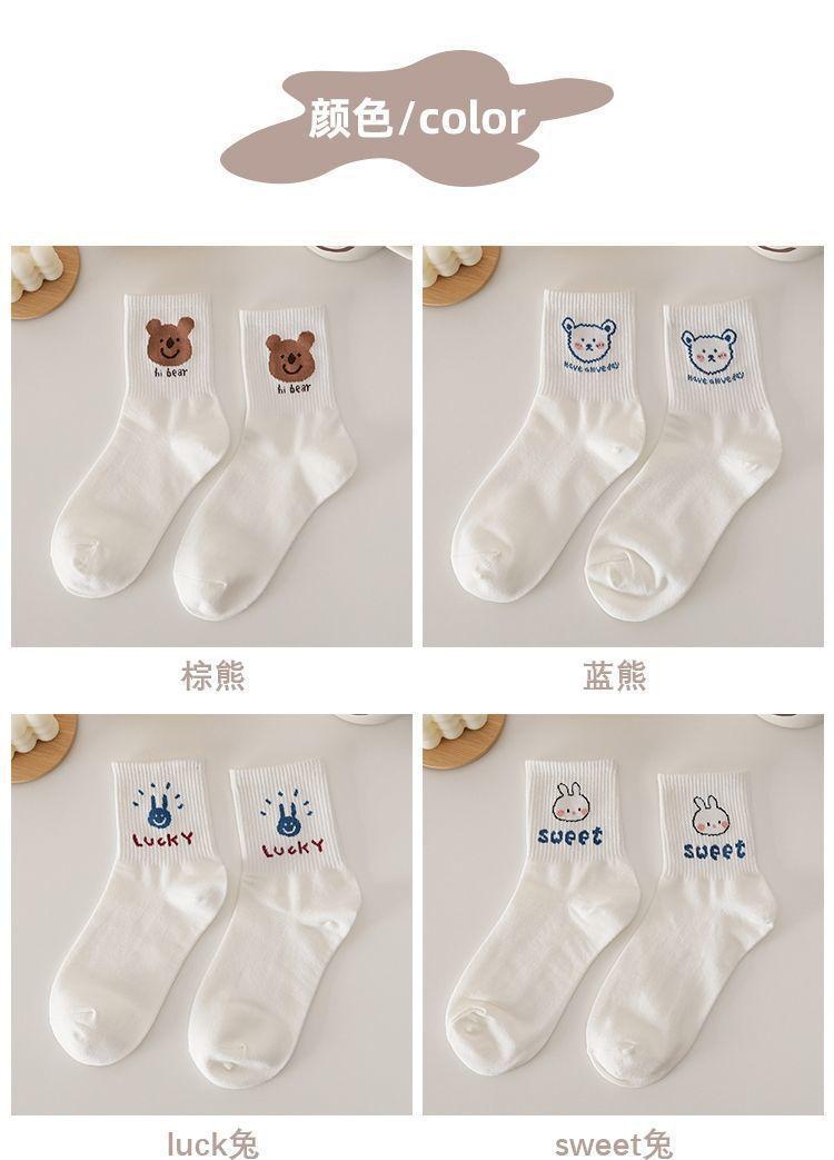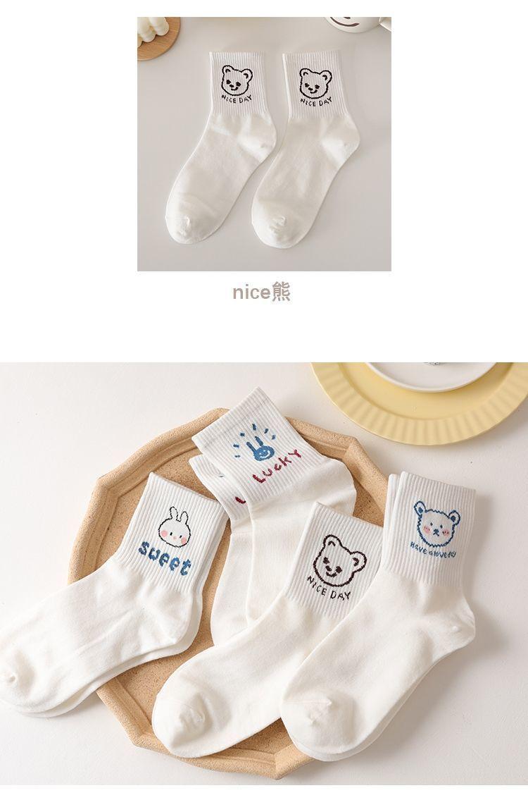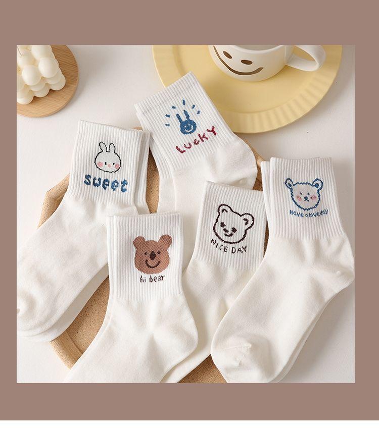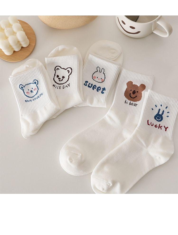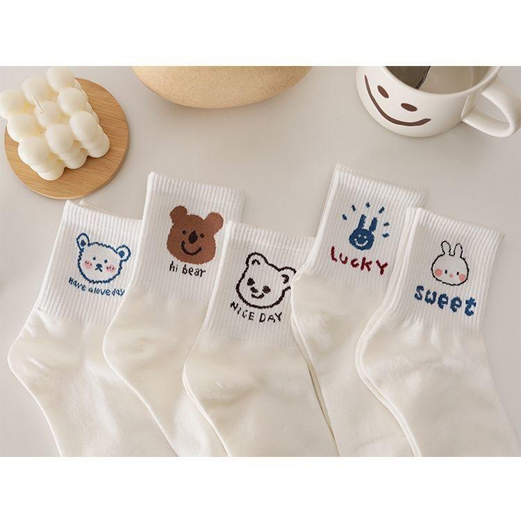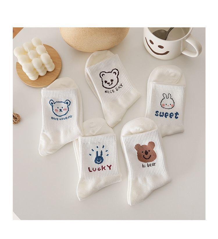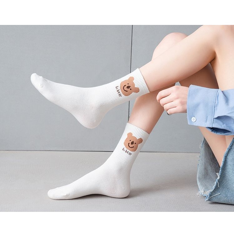 Calcetines Nuevos de Media Caña de Osito para Mujer ins Modernos Japoneses Lindos Celebridad de Internet Algodón Calcetines Largos Coreanos Primavera Verano Delgados Calcetines Blancos