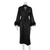 Pijama de Primavera 2025 Mujer Cárdigan Bata de Satén de Plumas Suelto Transfronterizo Largo Bata Europea y Americana Ropa de Casa para Mujer