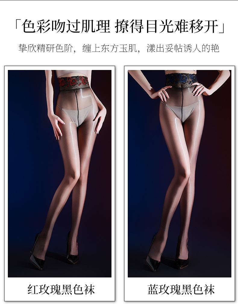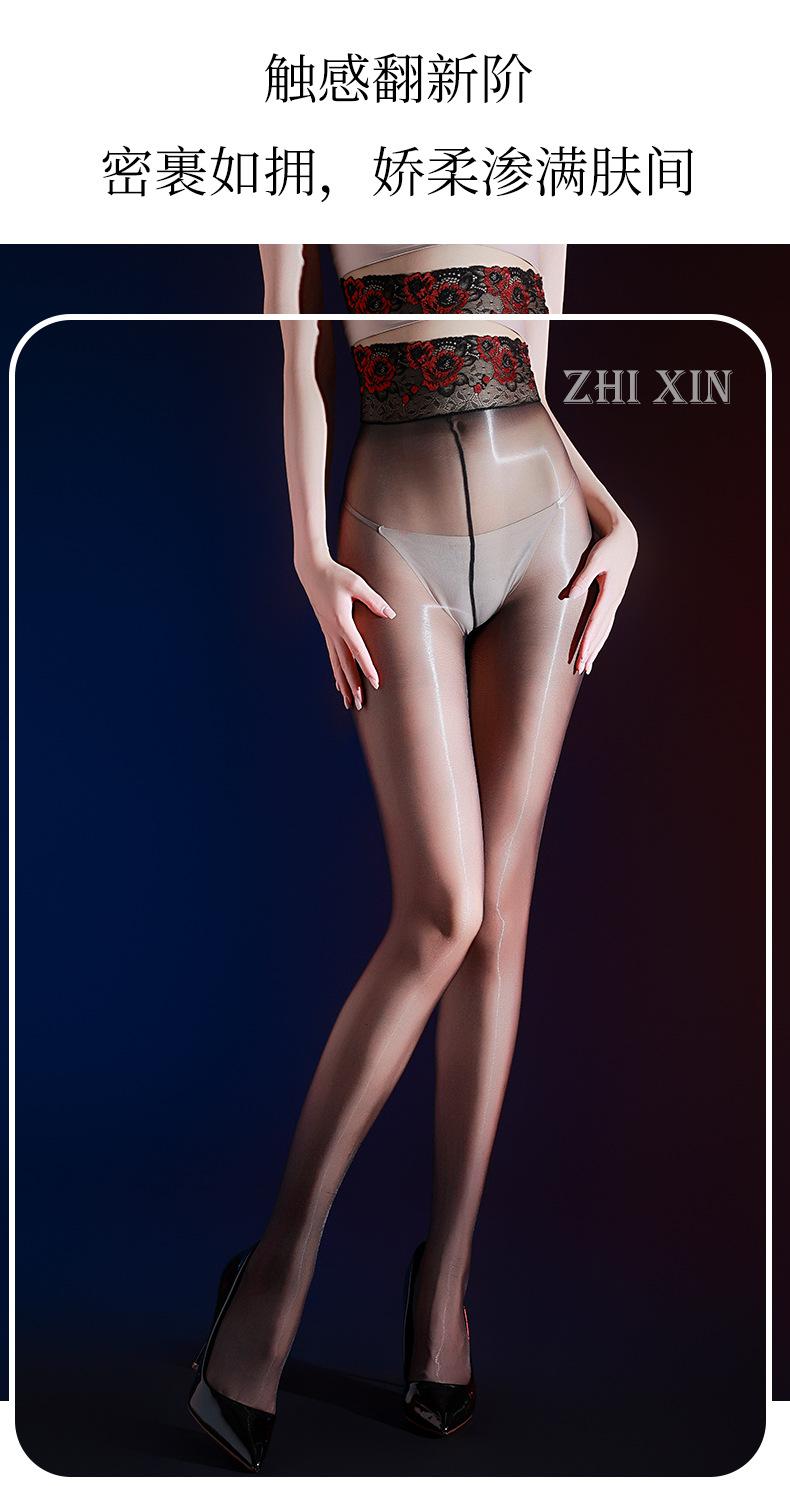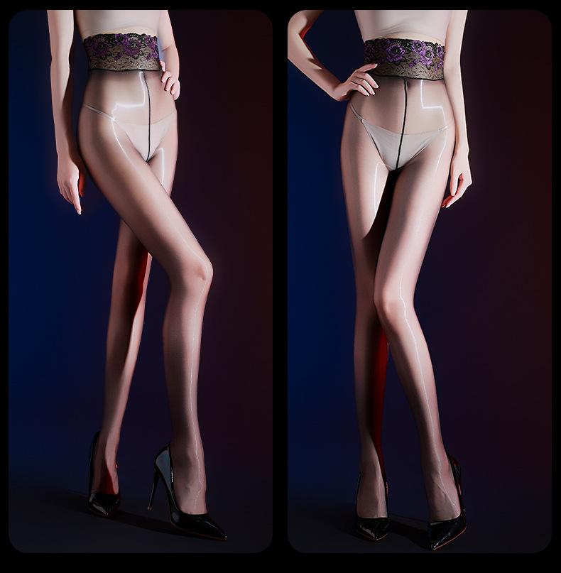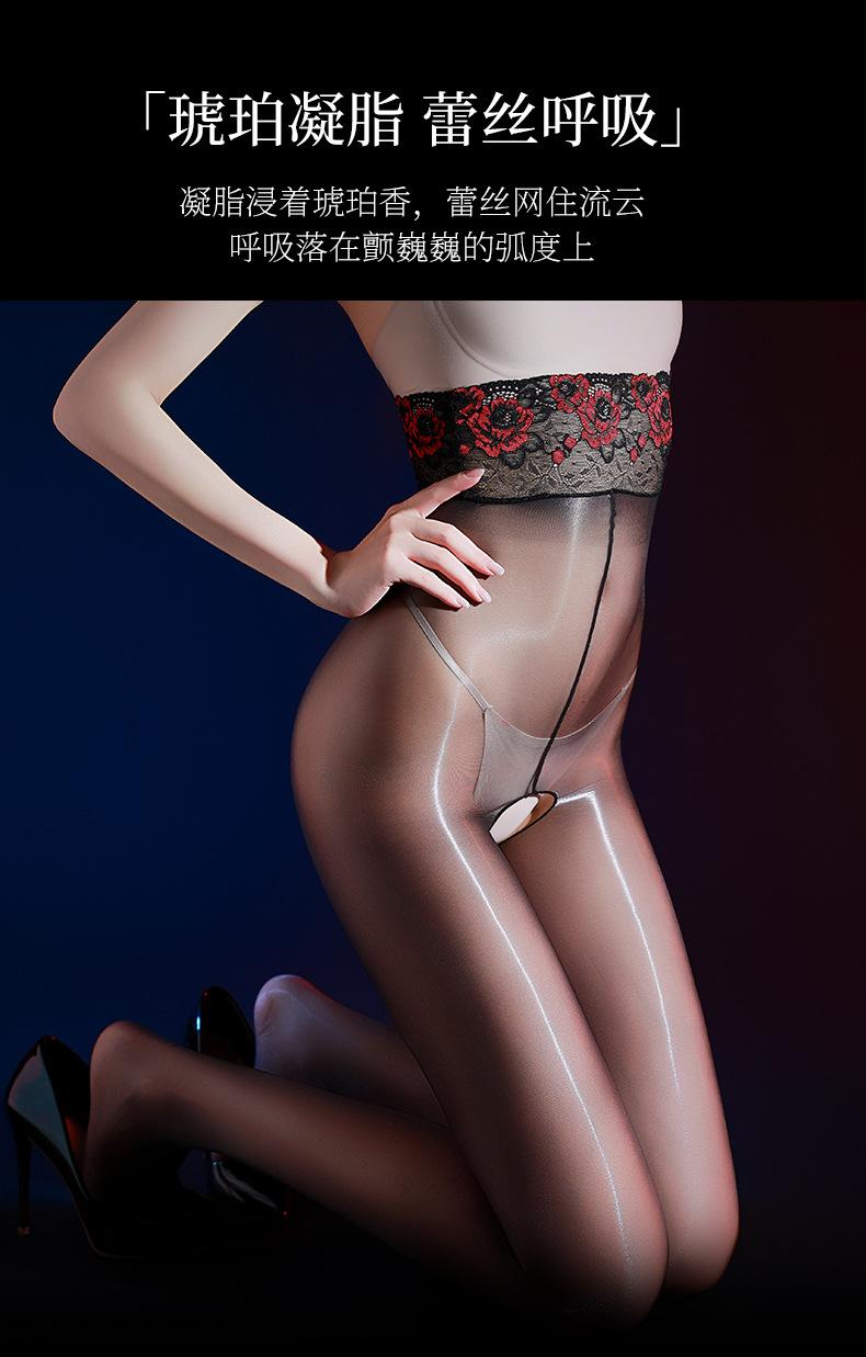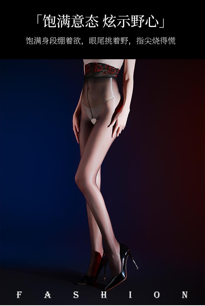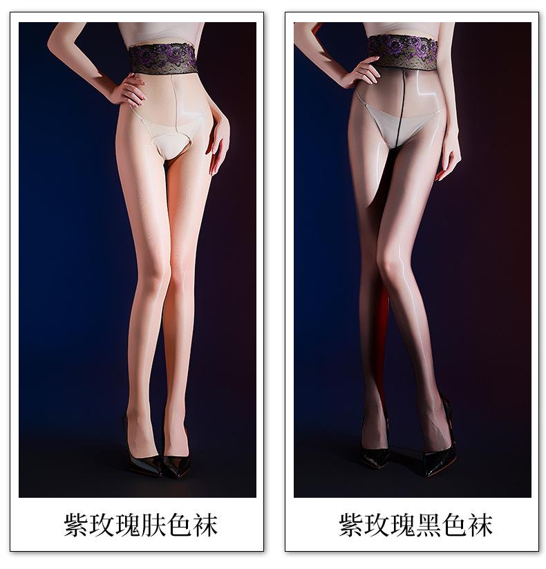 Encaje Cintura Alta Encaje de Rosas Ultradelgadas Aurora Una Línea Entrepierna Pantimedias Sedosas Aceitosas Sexy Entrepierna Abierta Eróticas Medias Negras