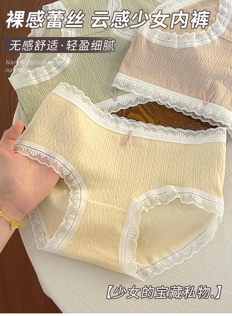 Braguitas de Cintura Media para Estudiante de Oreja de Trigo para Mujer Grado A Antibacterianas Clase A Entrepierna de Algodón 100% Puro Cómodas Transpirables Calzoncillos para Dama