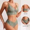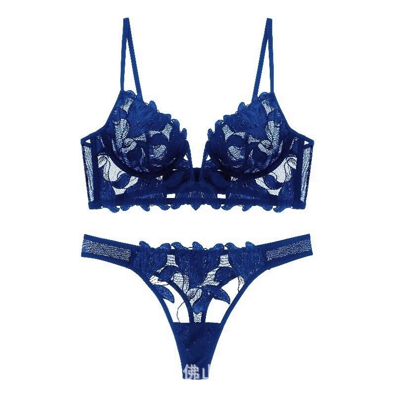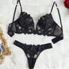 Lencería Sexy Encaje Bordado Escote V Profundo Europeo y Americano para Mujer Ultradelgado Reductor de Busto con Realce Juego de Brasier 23094