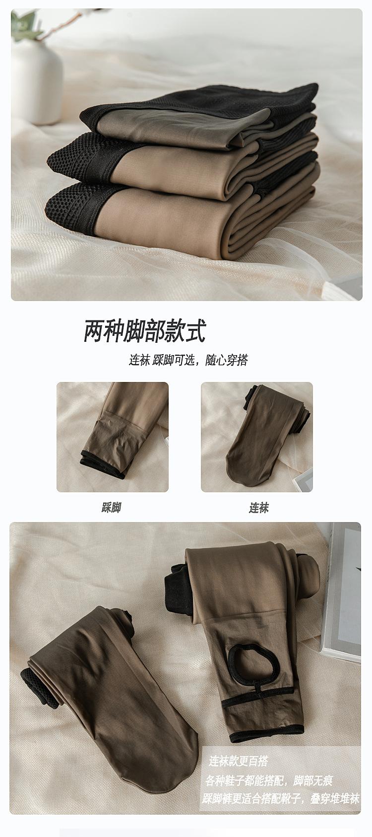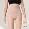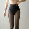 Leggings Super Transparentes Color Piel Negro Primavera/Otoño Sensación Nude Brillo Acuoso Calcetines Integrados Cintura Alta Forrados de Felpa Medias Negras Transparentes Falsas