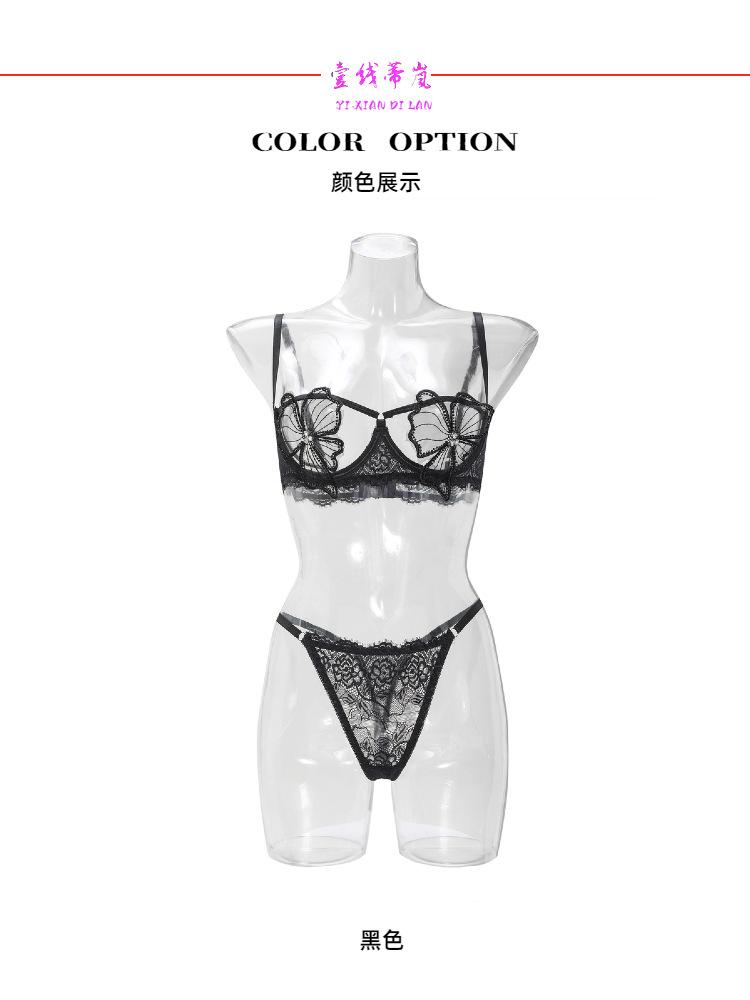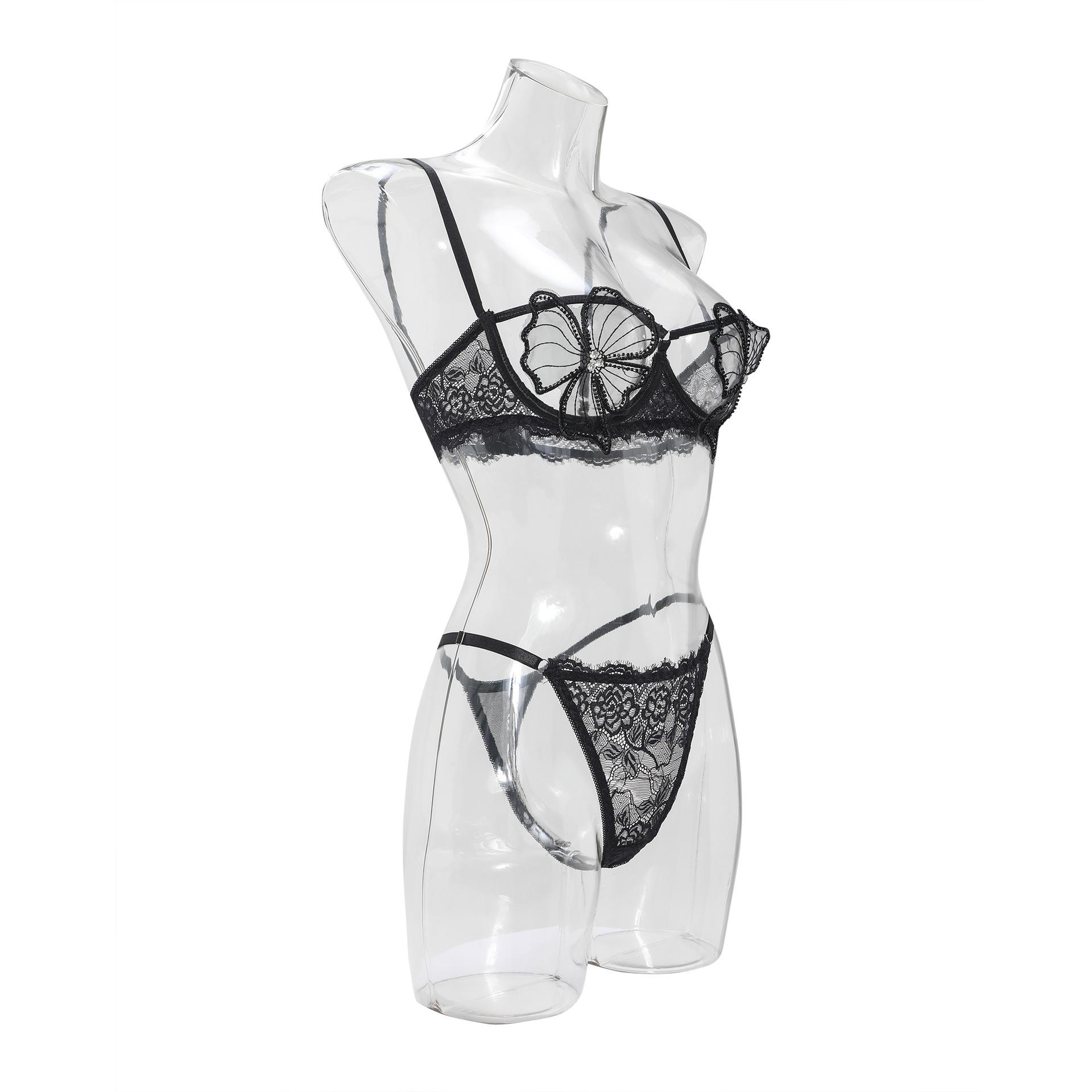 Ropa interior sexy transfronteriza europea y americana personalizada con aros, flores huecas, bikini, sujetador y bragas, conjunto sexy de dos piezas