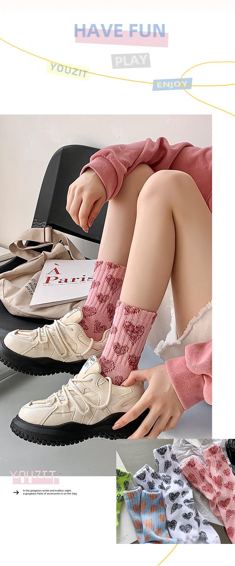 Calcetines de Amor al por Mayor Calcetines de Media Caña para Mujer Calcetines de Moda para Mujer Calcetines de Algodón de Amor Lindos Japoneses Estilo Primavera y Otoño Calcetines Altos