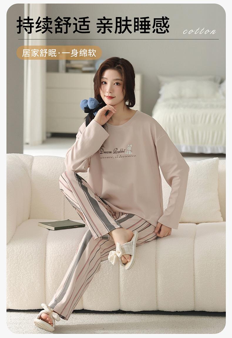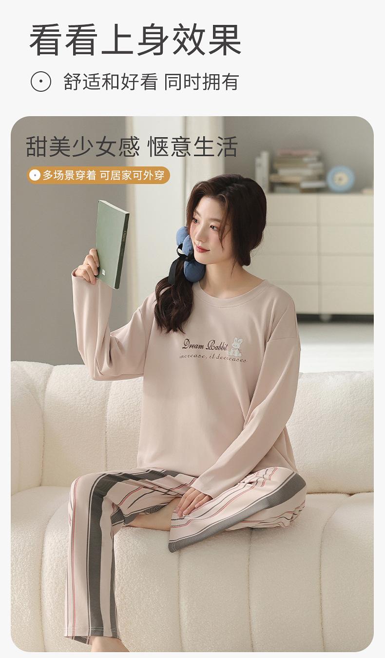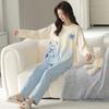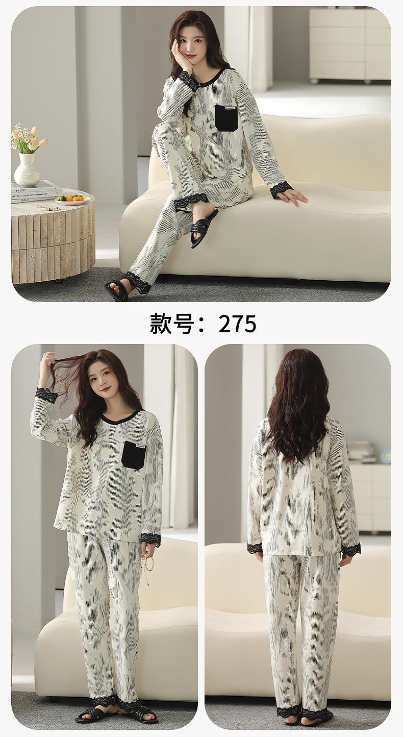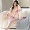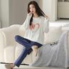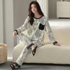 Otoño/Invierno 2025 Nuevo Pijama de Mujer Holgado de Manga Larga y Pantalón Largo de Algodón Puro Cómodo Transpirable Conjunto de Ropa de Casa de Algodón