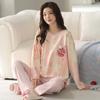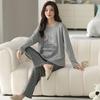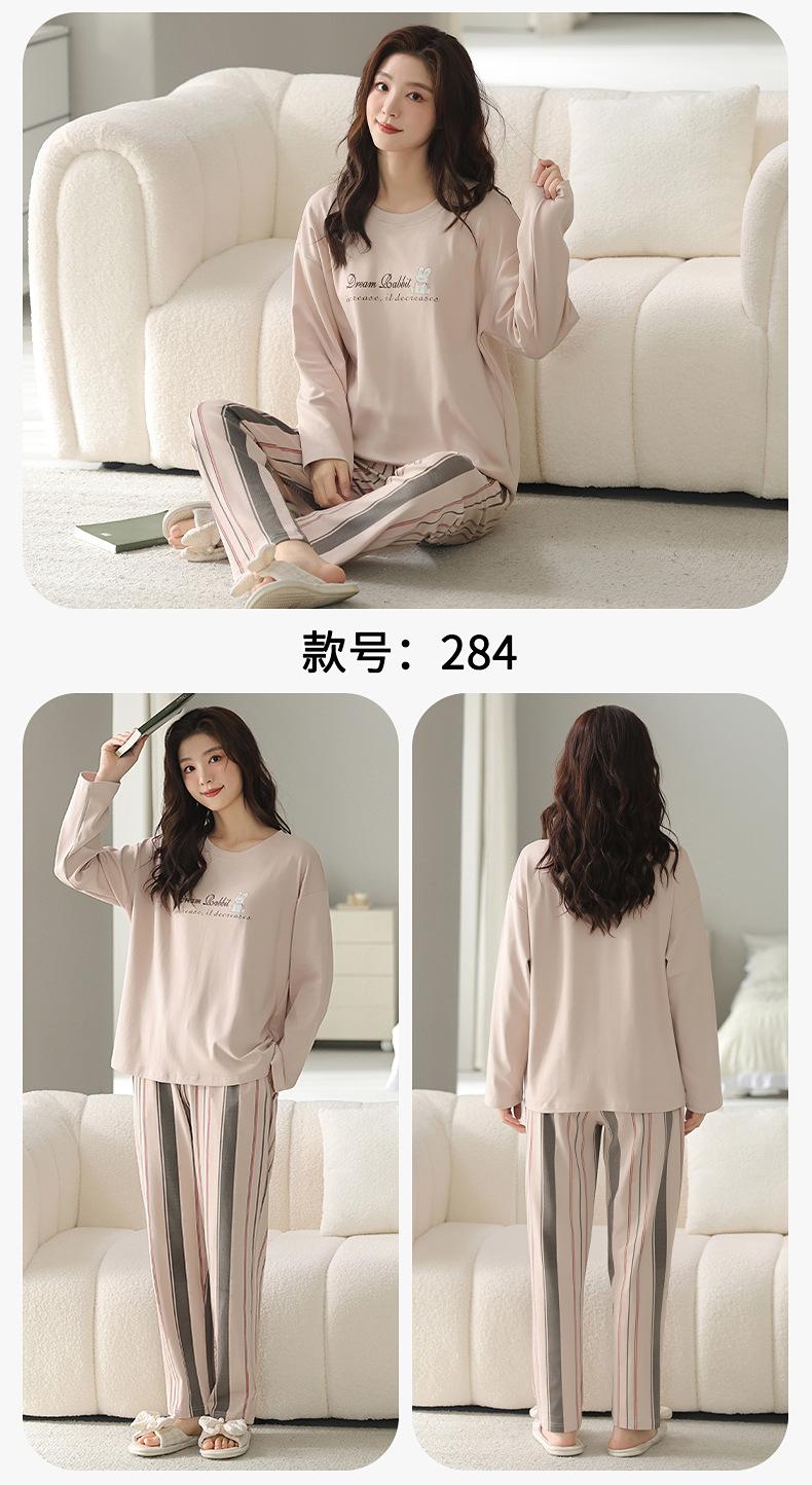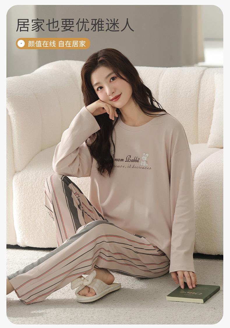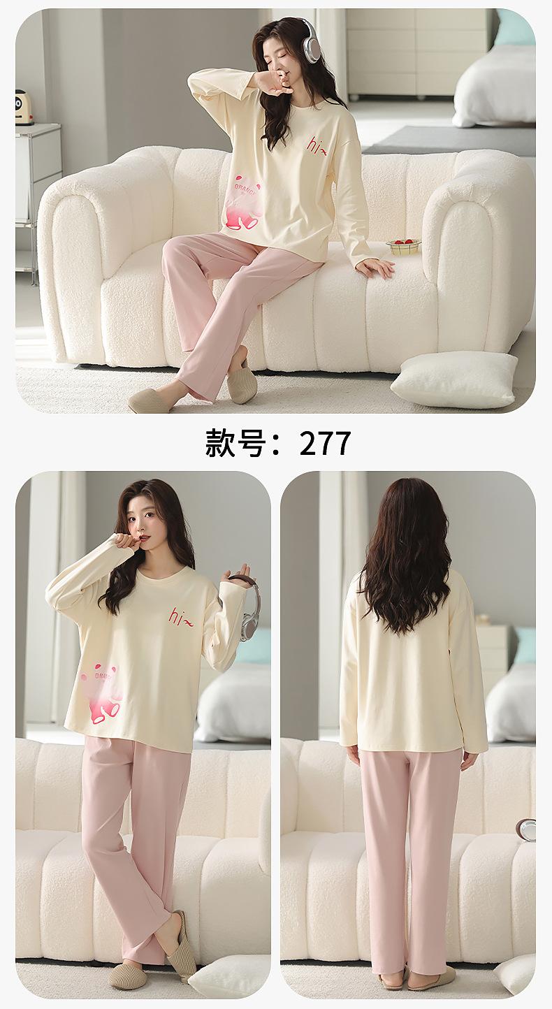 Otoño/Invierno 2025 Nuevo Pijama de Mujer Holgado de Manga Larga y Pantalón Largo de Algodón Puro Cómodo Transpirable Conjunto de Ropa de Casa de Algodón