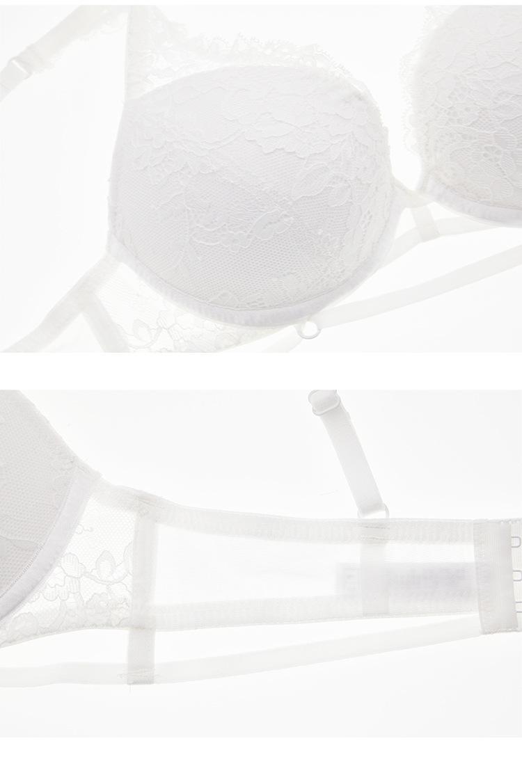 Lencería sexy transfronteriza pecho pequeño aparece más grande copa con realce soporte lateral sujetador anti-flacidez talla grande encaje conjunto de lencería francesa