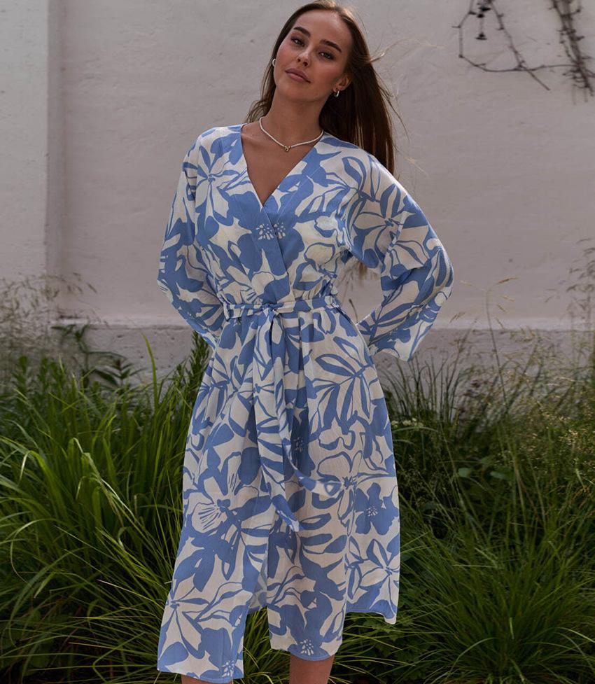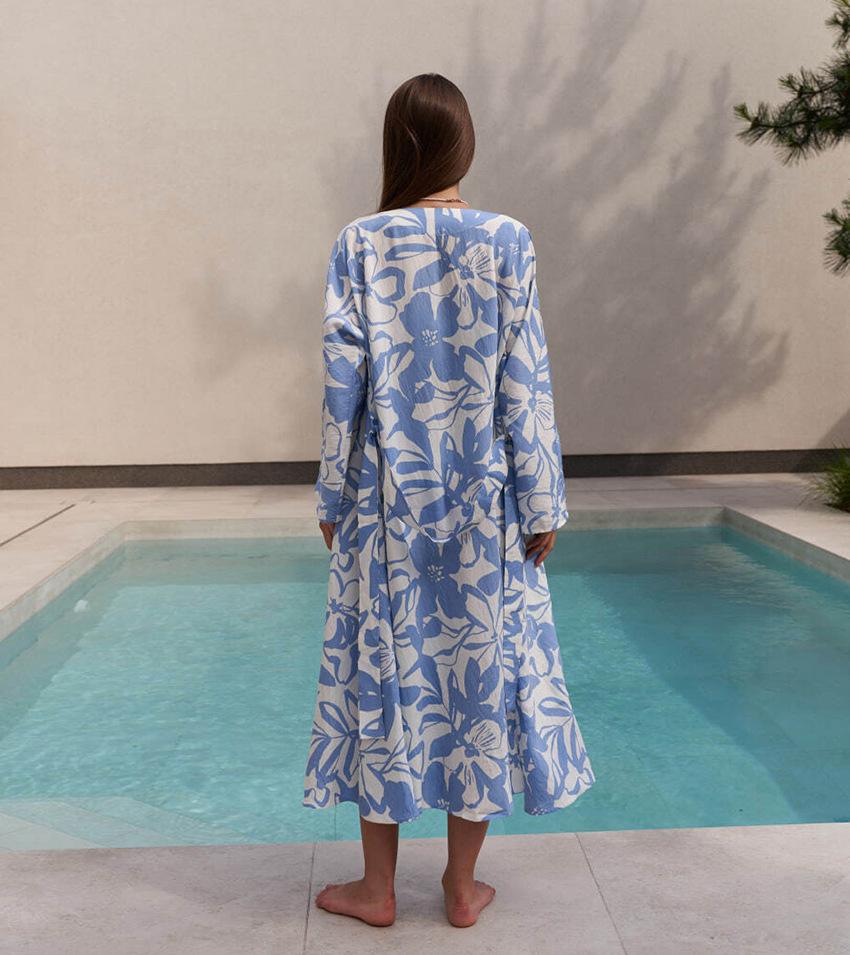 2025 Otoño Europeo y Americano Nuevo Estampado Festivo Holgado Cómodo Ropa de Dormir Bata Transfronteriza Ropa de Casa para Mujer Venta al por Mayor